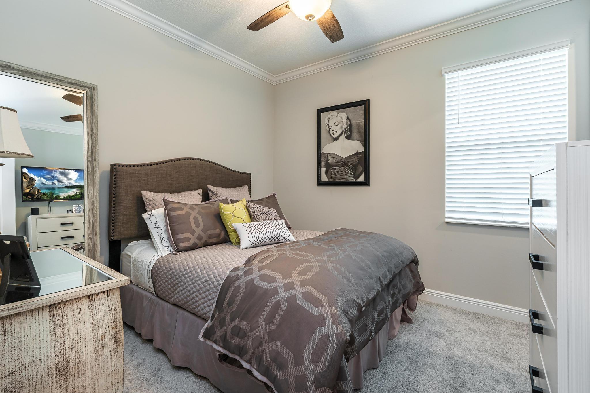 Rare WATERFRONT Pitoresco Model w/Craftsman Elevation in Sought-After Gated VELEIROS! 2/2+Bonus Rm (Convertible to 3rd Bdrm) & 2-Car Garage. Lushly Landscaped Front Porch (Perfect for Stargazing on a Balmy Evening) Opens to Foyer & Den. Ahead, Spacious Living Area w/Plank Tile, Hi-Hat Lights, Open Kitchen, GE Stainless Suite w/Wall Oven & Hood, Quartz Counters & Island, Pantry, Wood Cabinets. Sun-Soaked Great Room Overlooks Fenced Waterfront Yard w/Covered Paver Patio & Room for Pool. Owner Suite is a Hushed Sanctuary w/Ensuite Bath, Walk-in Closet. Barn Doors Open to Guest Quarters & Laundry Rm. Hurricane Impact Windows & Doors. Pets Welcome. Gym, Clubhouse, Pool, Playground, Onsite Mgmt. No worry of storm outages, same electrical grid as firehouse! Close to Beach, Supermarkets, Casino.