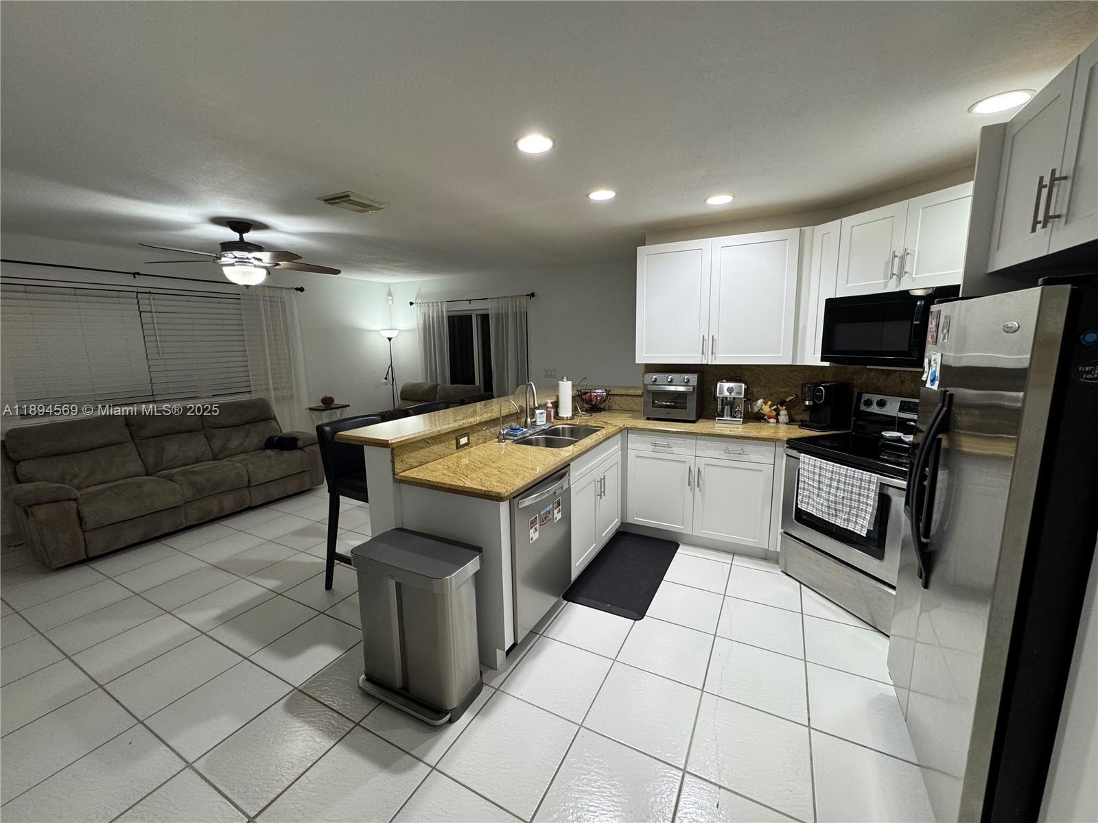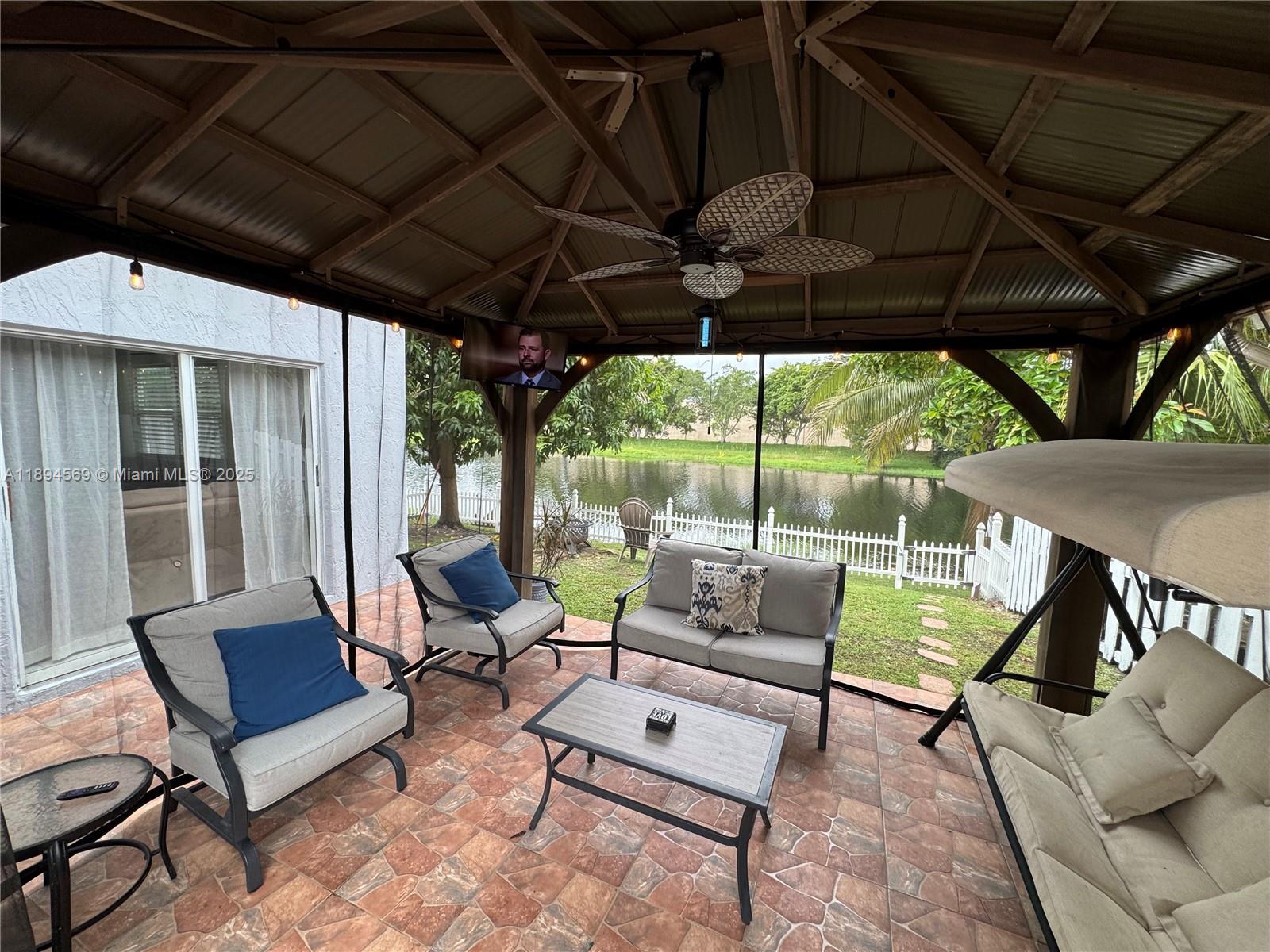 This Move in ready, 4-bedroom 2.5 bath home offers Bright and Airy floor plan with waterfront views from Florida Room, kitchen and master bedroom. Located in sought out Huntington area, surrounded by A+ rated schools with easy access to I-75 and Turnpike. Near great shopping malls like the Pembroke Gardens Open Mall and others. Lots of Parks, Lakes and walking paths. Situated on a private street with no back yard neighbors. Enjoy your time with family & friends at rear Gazebo which includes a bubbling Hot Tub! Open kitchen features granite counter tops, new cabinets & stainless-steel appliances. Fully remodeled baths! No Flood zone X, no flood insurance required. Easy to show.