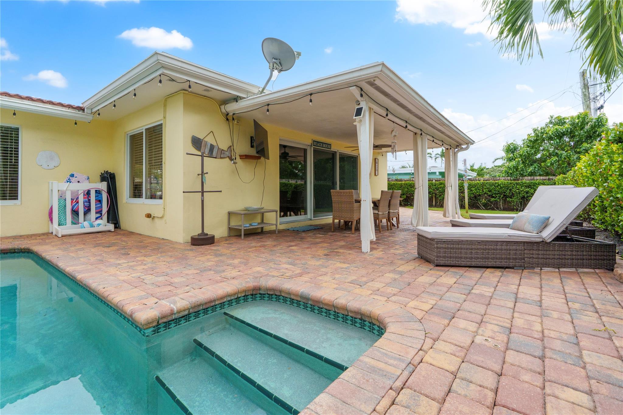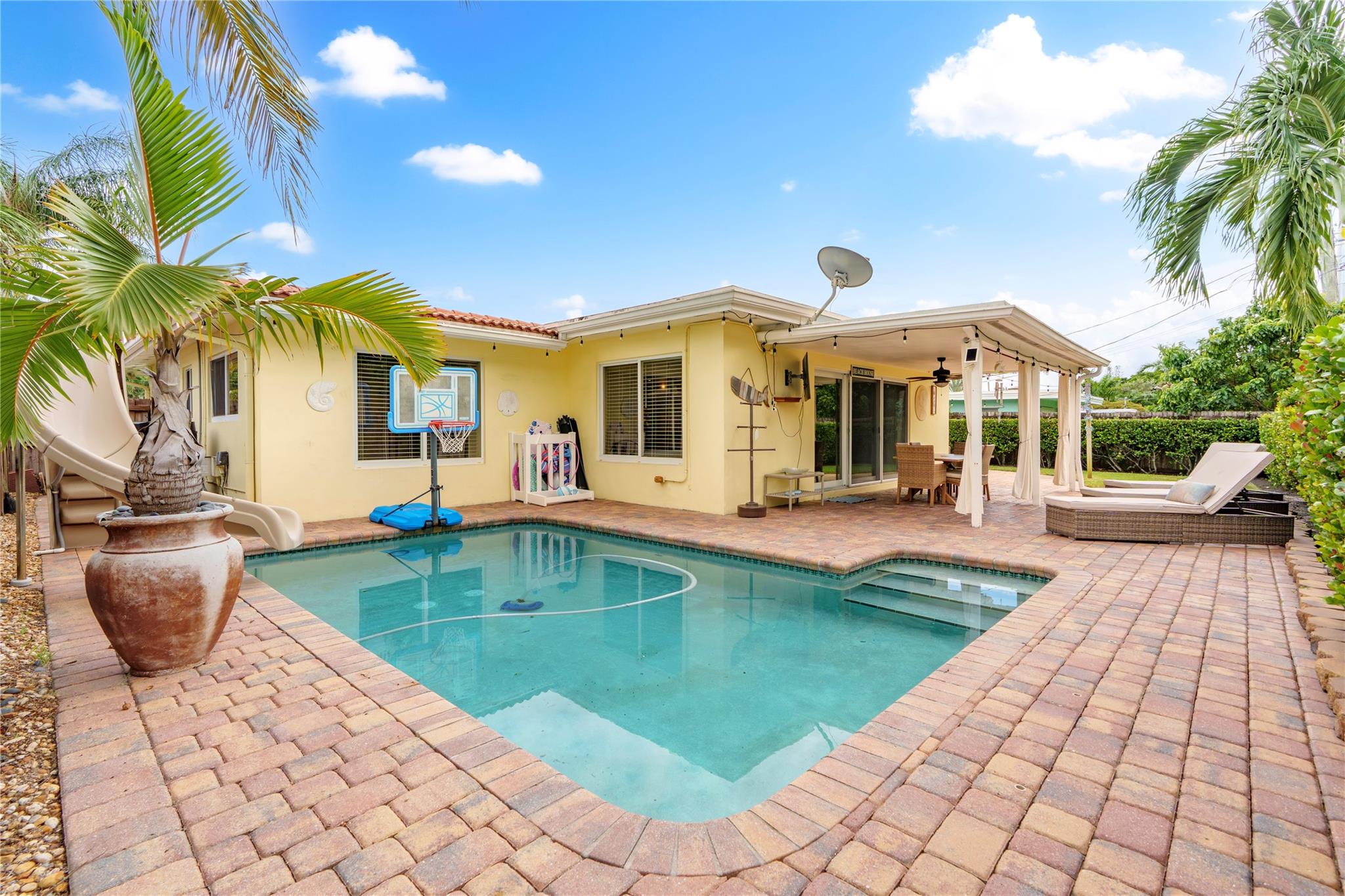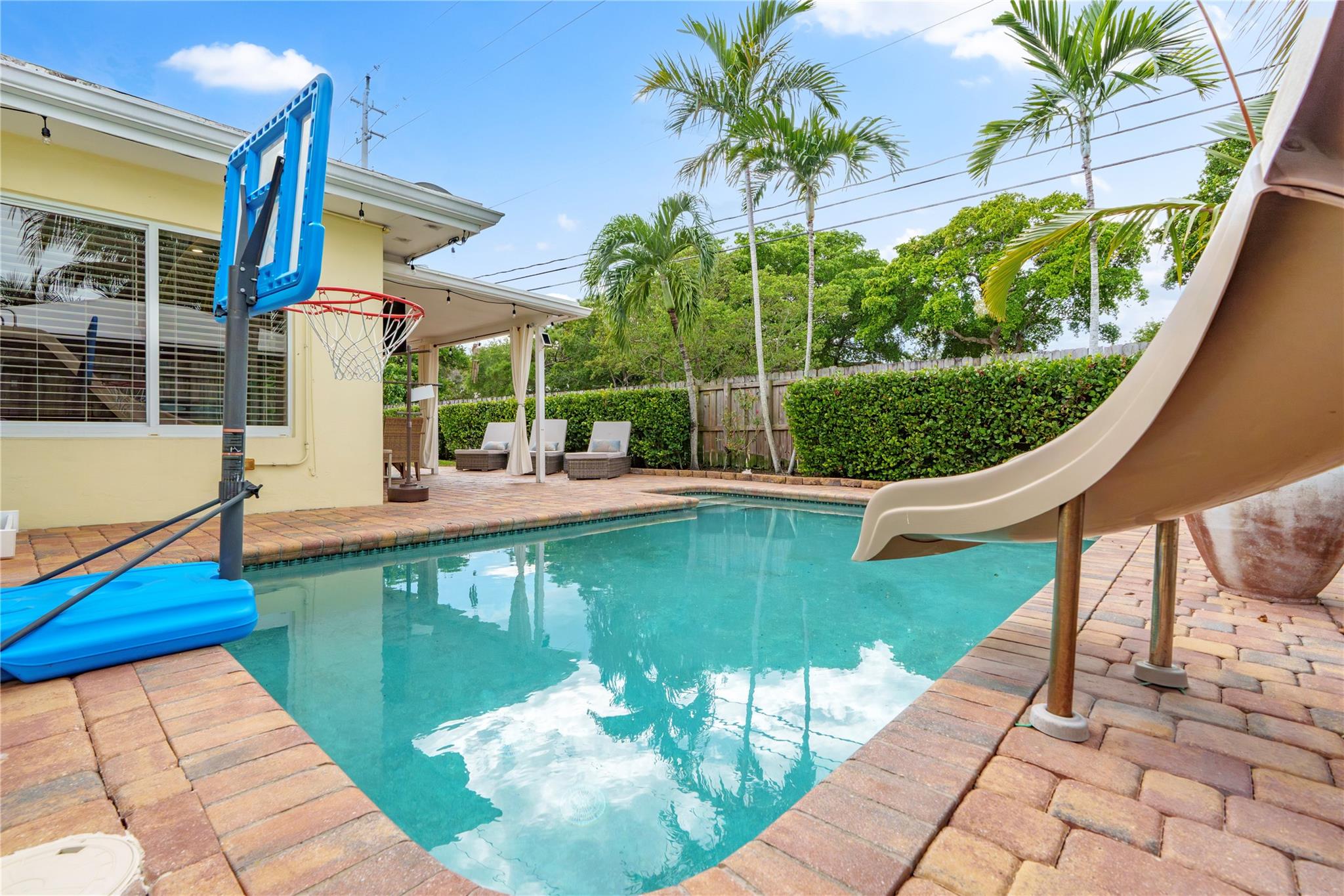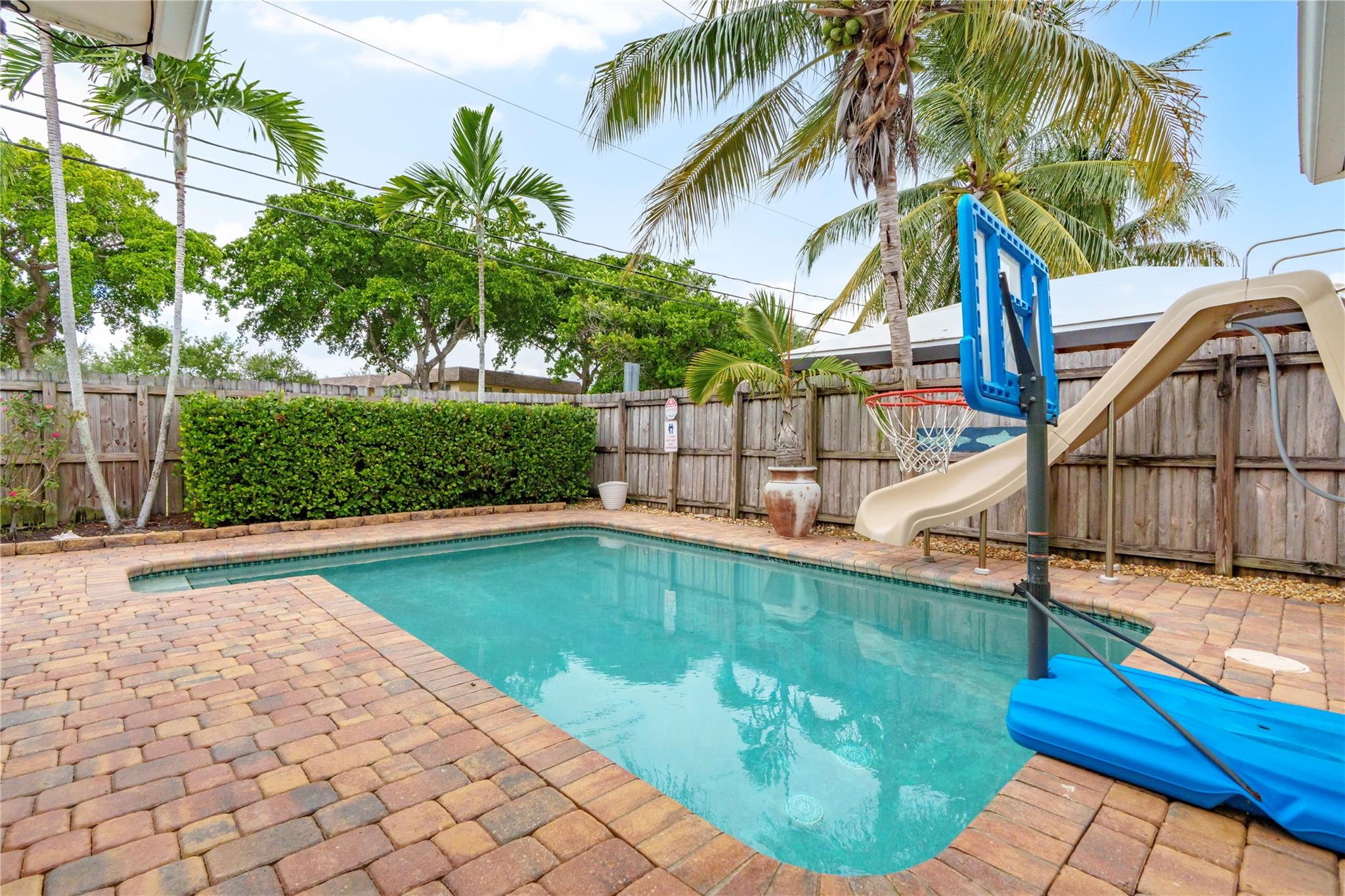 This home checks all the boxes! Stylishly updated, impeccably maintained 3/2 split plan, light open design, 2-car garage with EV Charger, indoor laundry with folding counter & built-in cabinets, sizable kitchen with a snack bar, remodeled baths (Jacuzzi tub in primary), backyard retreat with heated AND chilled pool, child safety fence, & wraparound paver patio perfect for relaxing or entertaining! Slide is secured, but can be removed. AC 2018, water heater 2016, 2010 S-tile roof, 2025 pool pump, natural gas dryer, relined pipes, termite warranty. Prime location near all major highways, only 4 mi. to our new, vibrant oceanfront Pompano Beach Fishing Village; complete with a new fishing pier, restaurants, nightlife and only 3.8 mi. south to charming Lauderdale-by-the-Sea! You'll love it!