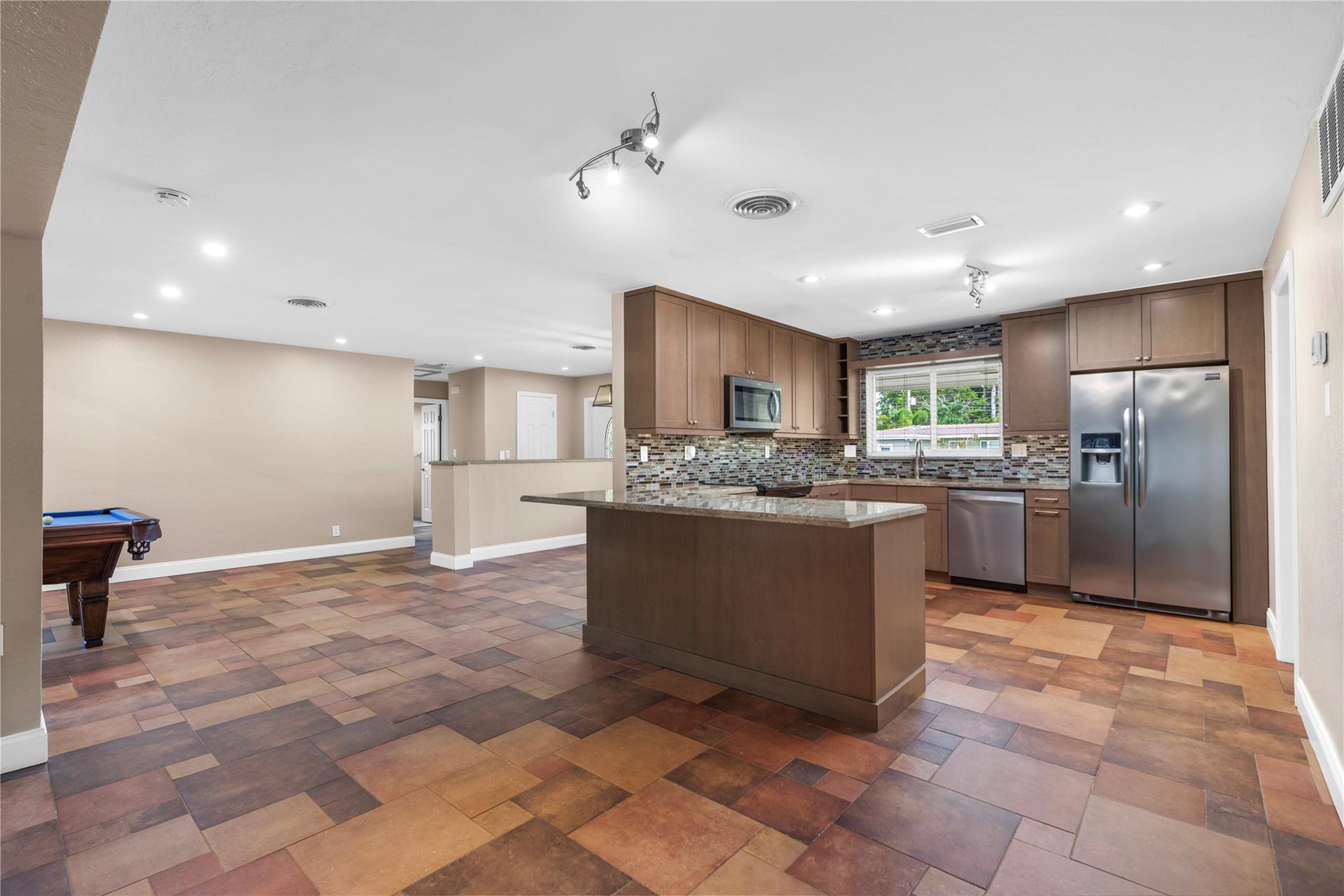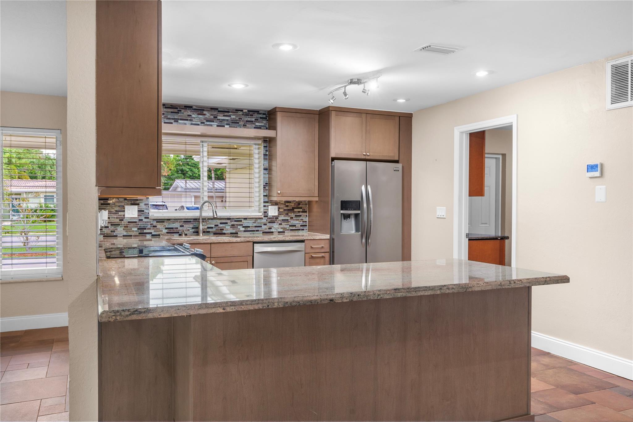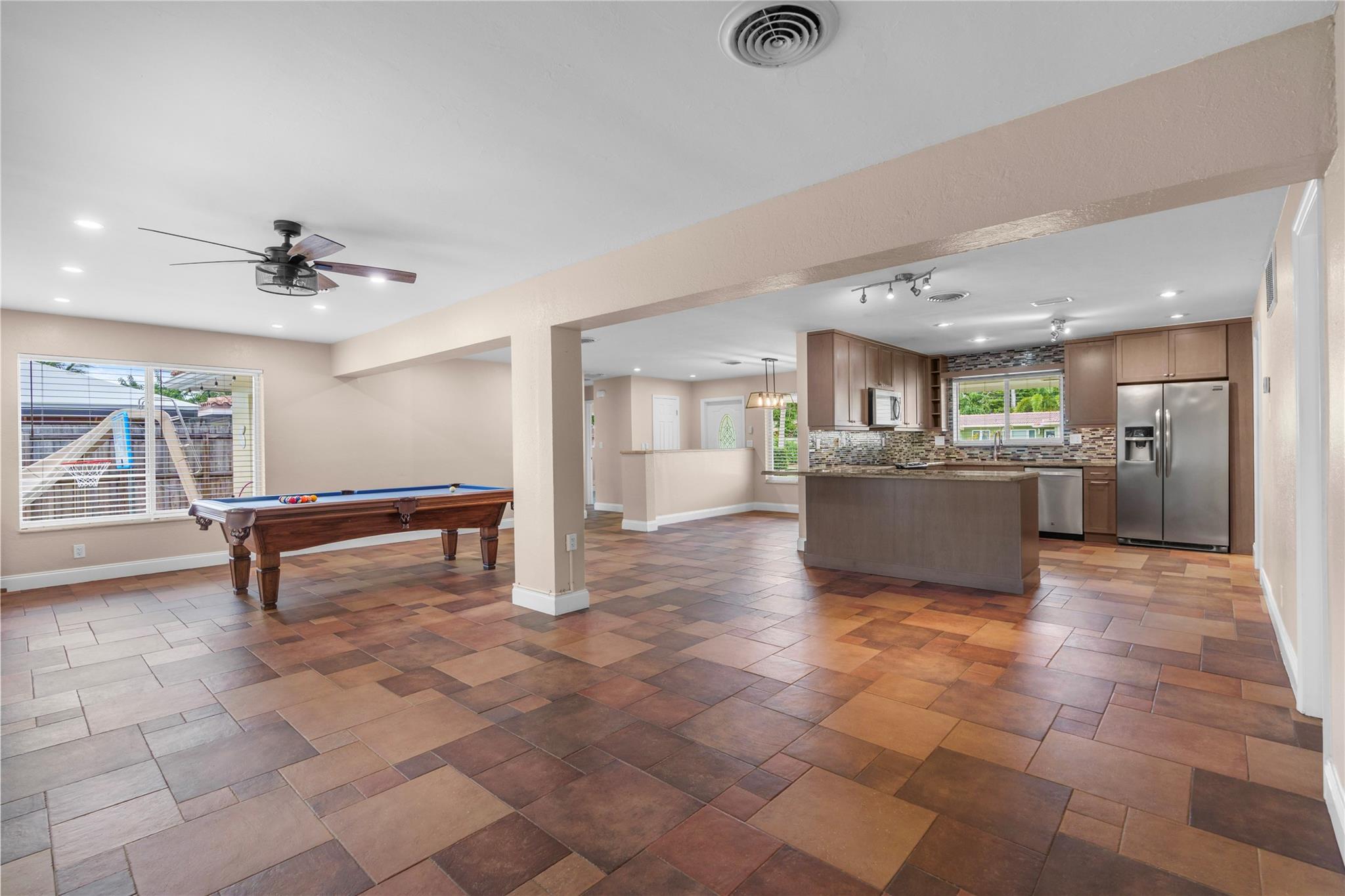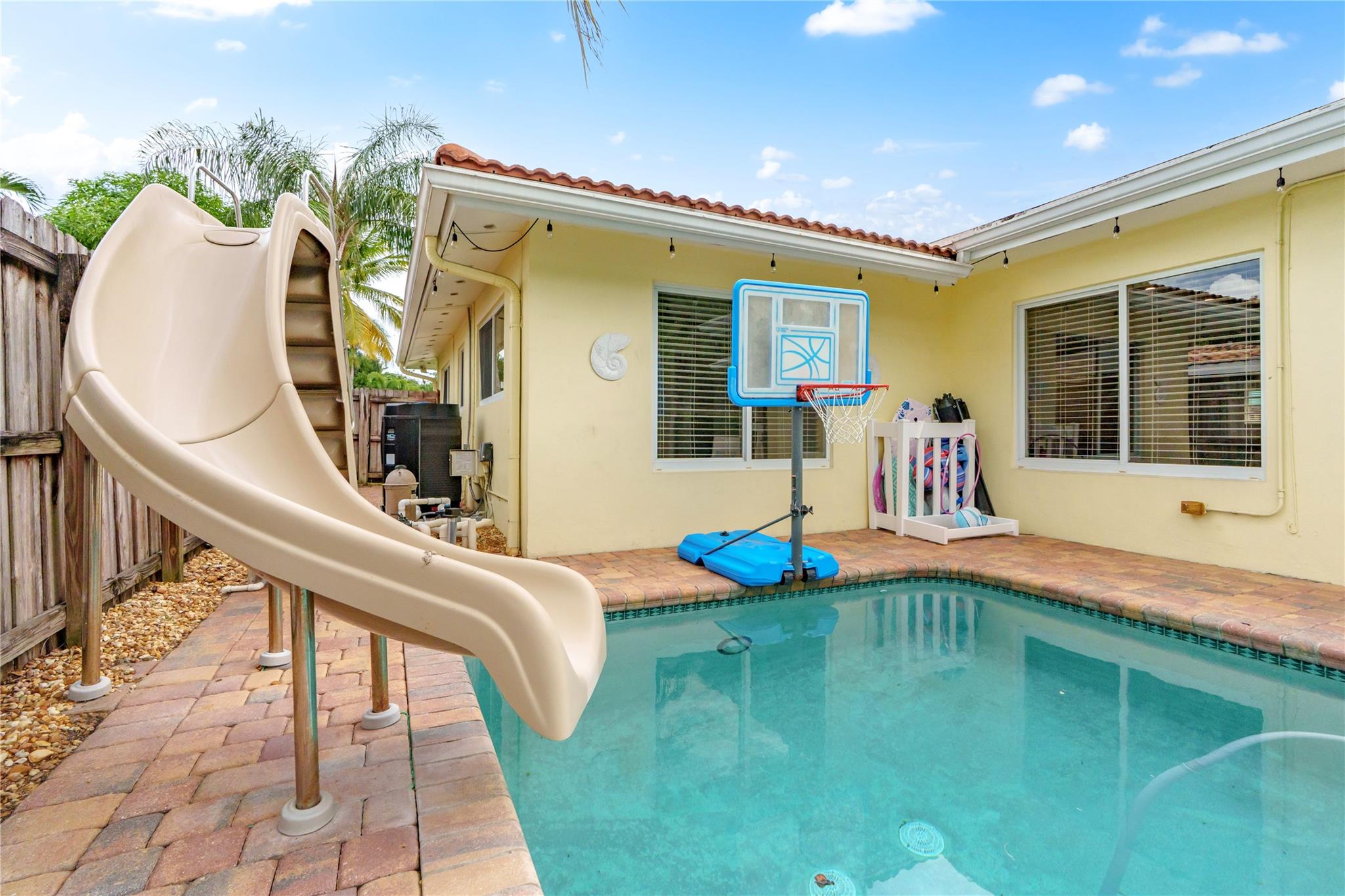 This home checks all the boxes! Stylishly updated, impeccably maintained 3/2 split plan, light open design, 2-car garage with EV Charger, indoor laundry with folding counter & built-in cabinets, sizable kitchen with a snack bar, remodeled baths (Jacuzzi tub in primary), backyard retreat with heated AND chilled pool, child safety fence, & wraparound paver patio perfect for relaxing or entertaining! Slide is secured, but can be removed. AC 2018, water heater 2016, 2010 S-tile roof, 2025 pool pump, natural gas dryer, relined pipes, termite warranty. Prime location near all major highways, only 4 mi. to our new, vibrant oceanfront Pompano Beach Fishing Village; complete with a new fishing pier, restaurants, nightlife and only 3.8 mi. south to charming Lauderdale-by-the-Sea! You'll love it!