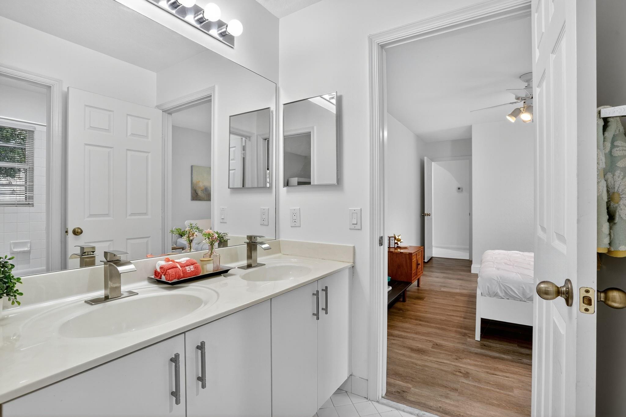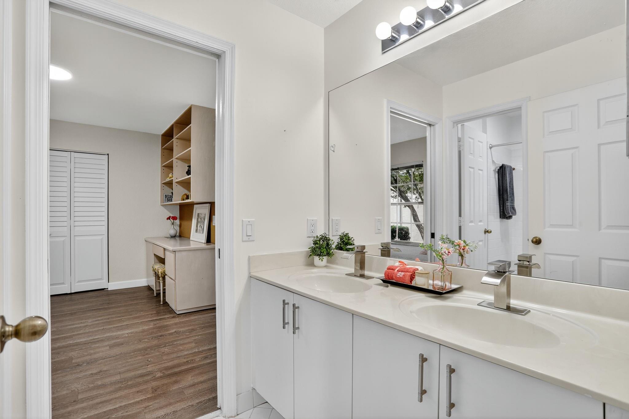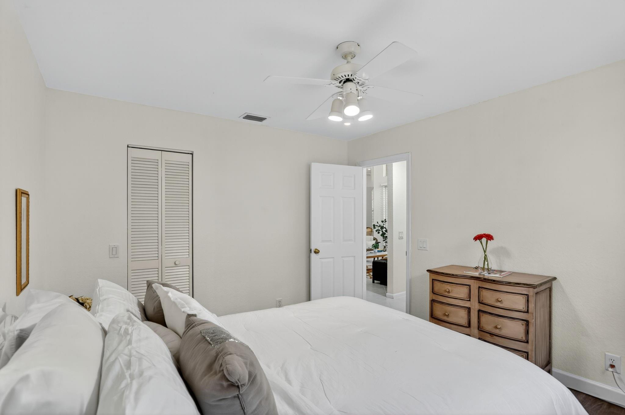 WOW! Lowest price 5BD home in Weston Hills! Shows like a model! Light, bright & airy, beautiful single-story, almost 3000sf/ac, situated on a picturesque tree-lined street. French doors with impact glass open to a crisp, freshly painted interior bathed in warm natural light, with high ceilings, brand-new LED lights & new modern chandeliers (Oct 2025). The expansive 3-split floor plan features a primary suite w/generous sitting room, great as exercise area. The large den with custom built-ins is perfect as home office. White/granite kitchen w/stainless appliances, stone backsplash, new modern hardware. Tile in all liv areas, newer luxury vinyl in bedrooms. Generous covered patio & charming private garden provides a peaceful backyard oasis. Around the corner from the comm park & golf course.