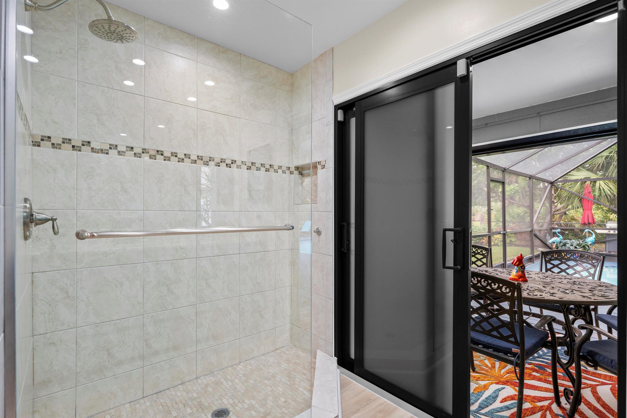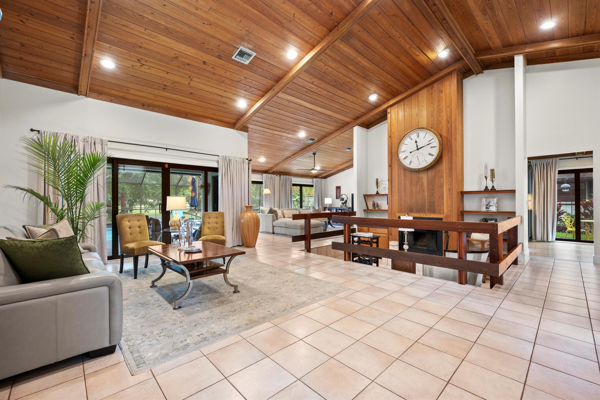 Step into a one-of-a-kind California contemporary masterpiece tucked away in the coveted Gardens Glen community of Palm Beach Gardens. This striking home blends timeless 1980s character with fresh, modern upgrades. Vaulted wood ceilings, dramatic exposed beams & walls of sliding glass that flood the space w/ light & open seamlessly to a private screened pool & covered porch. No rear neighbors, no HOA! Enjoy peace of mind with impact glass throughout, refreshed siding, new interior & exterior paint, 2 brand new A/C units, tankless water heater, new kitchen appliances, new washer/dryer, new pool equipment & attic insulation. Termite bond in place. The oversized garage features epoxy flooring & fresh paint perfect for storage, hobbies, or a sleek home gym.