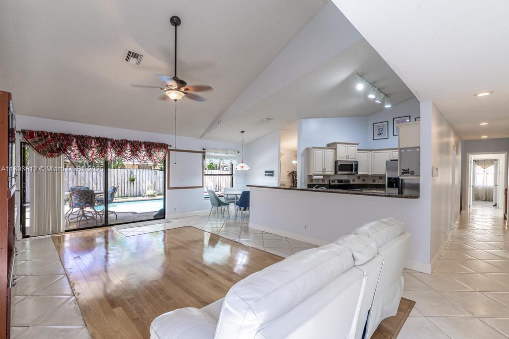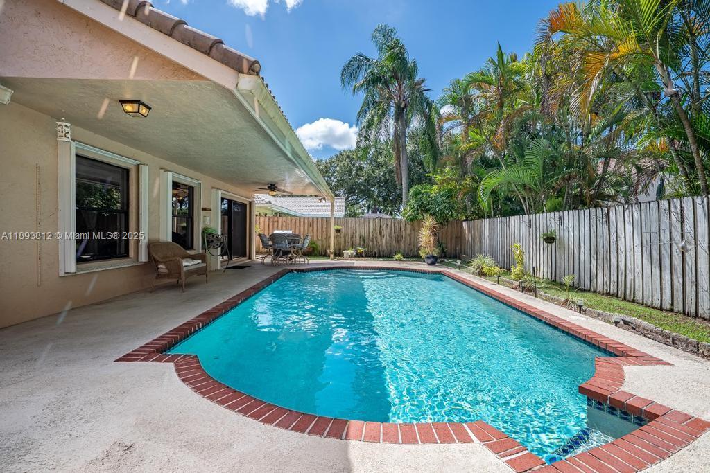 Lovely 4/3.5 Pool home in the heart of Plantation, French doors open in to the grand formal living & dining room areas. Chef's Kitchen offering lots of cabinets, granite counters & stainless steel appliances. Enormous room with breakfast area & a separate bar adjacent to the kitchen. Separate Laundry room with storage space. Primary suite complete with his & her closets, spa like bathroom & sliding doors over looking the pool area. Spacious secondary bedrooms with ample storage & closet spaces. It has several cameras for a surveillance system. Mango, avocado and papaya fruit trees. Excellent location close to shopping. Restaurants, supermarkets, hospital, Sawgrass Mills Mall, Panther's Arena & Highways.