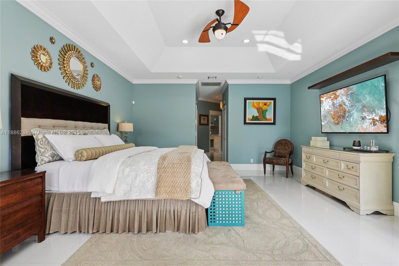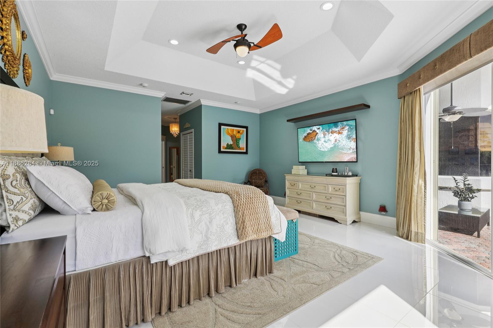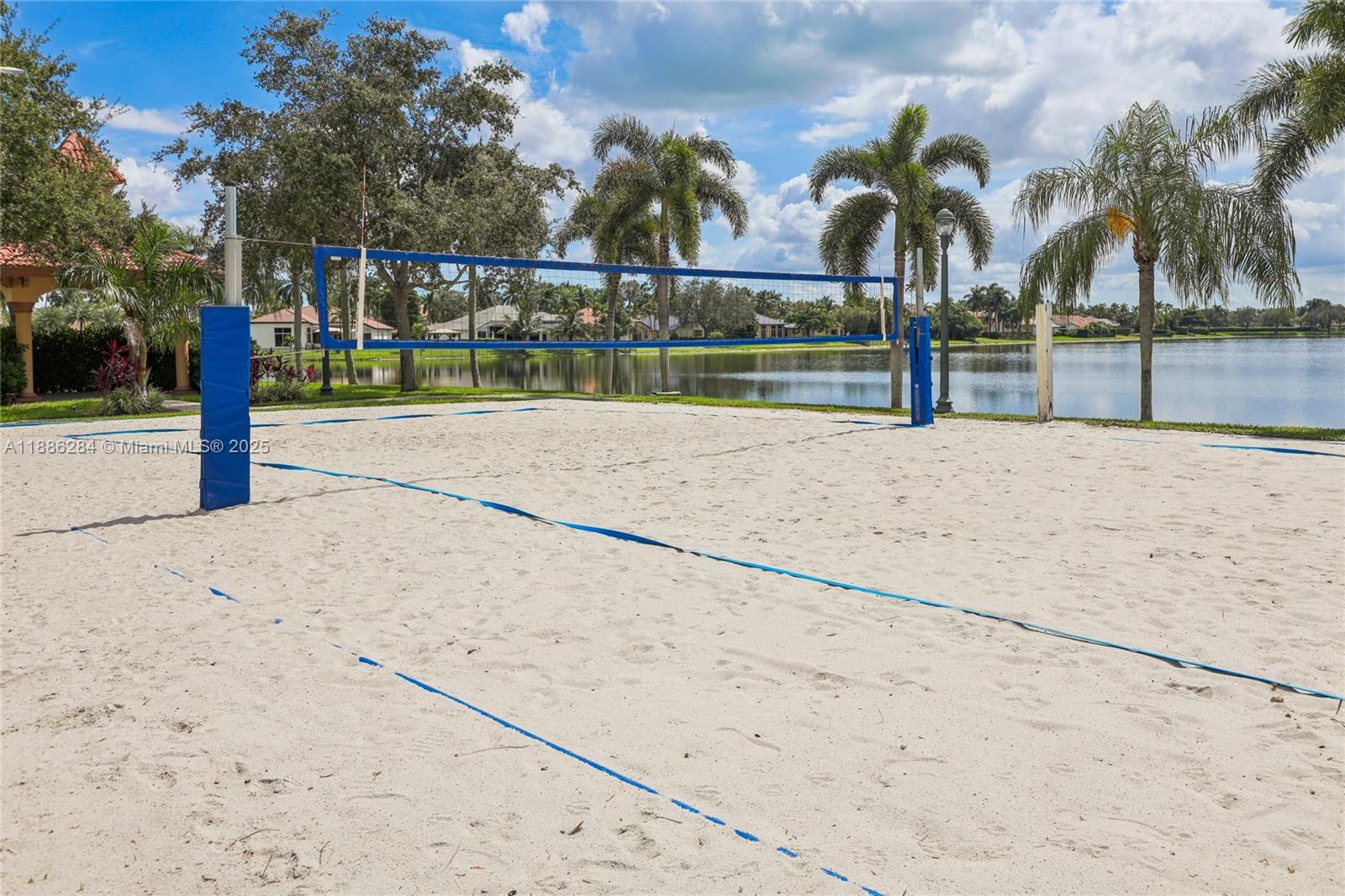 Beautiful 6-bed, 3.5-bath home with an office and a 3-car garage in the exclusive Sunset Lake community. Features dramatic volume ceilings, elegant porcelain tile floors, and a seamless indoor-outdoor flow. The spacious patio and beautiful pool create the perfect backyard retreat. Inside, the open-concept design welcomes abundant natural light. The open kitchen offers granite countertops, wood cabinetry, and a sun-drenched breakfast nook adjoining the expansive family room. The huge primary suite includes a sitting area, walk-in closets, and a spacious bath. Accordion shutters throughout provide peace of mind. Conveniently located near A-rated schools, shops, and dining. The resort-style clubhouse offers a pool, tennis courts, playgrounds, and a gym. Low HOA fee includes Internet and cable