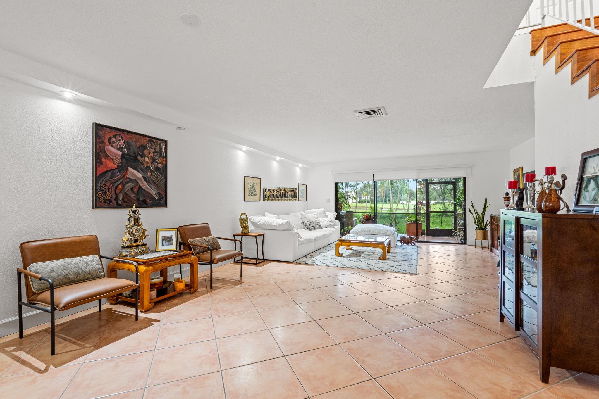 Stunning lake & golf views with expansive green backyard! Modern updates throughout—tiled floors, granite kitchen with updated cabinets, recessed lighting, knockdown walls & ceilings, and renovated bathrooms. Upstairs atrium and master suite offer breathtaking sunrise & sunset views. Ample parking for 2 cars plus guests. Costa del Sol amenities include clubhouse, 18-hole golf course, lakeside restaurant, tennis, basketball, pool, and jogging path—ideal for an active lifestyle. On-site management, 24-hr security & guardhouse for peace of mind. Maintenance covers water, HD cable, internet, exterior & roof insurance, driveway, paint, trash, landscaping & common areas.