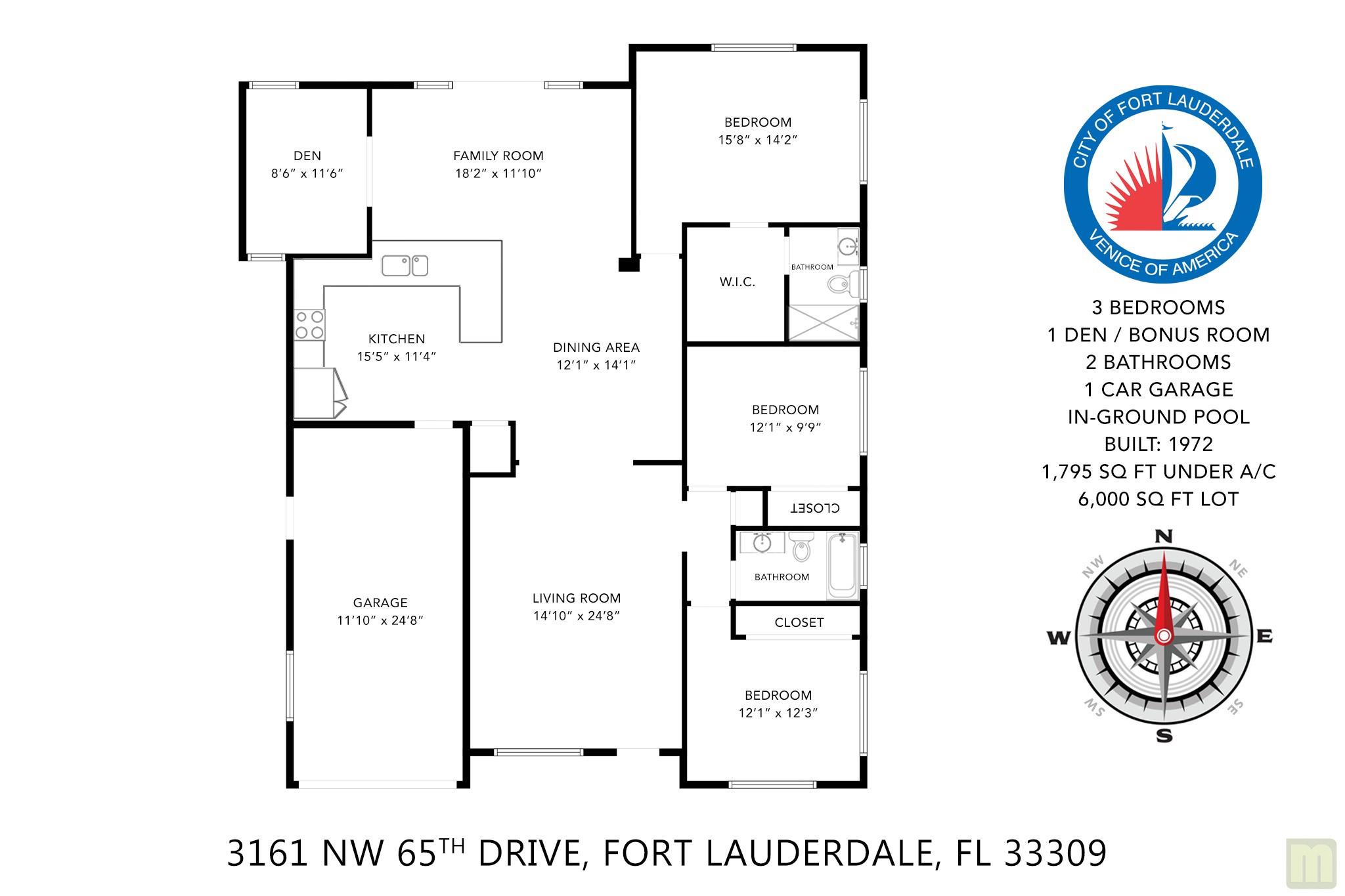 Beautifully updated, move-in ready pool home in the popular neighborhood of Palm Aire Village West. You'll feel a wam welcome from the minute you walk in the front door. Bright, open floor plan with white Oak LVP flooring throughout, gorgeous open kitchen with white shaker cabinetry, quartz countertops, stainless steel appliances and enough bar seating for a small Realtor convention! Primary bedroom has HUGE walk-in closet & en-suite bathroom. Two additional sun-filled bedrooms, main bathroom with shower & tub, large family / Florida room overlooking the newly updated pool and travertine patio. There's also a fantastic den / office that is currently being used as a 4th bedroom. No worries about FL storms with full impact windows and doors. No HOA - one of the best central Broward locations