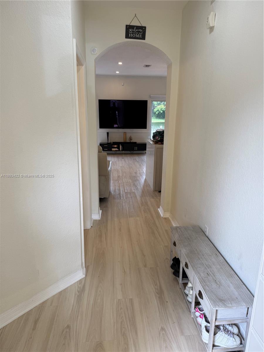 Discover this one-of-a-kind, fully renovated lakefront home in one of Miramar’s most desirable communities! This 3-bed, 2.5-bath residence offers breathtaking water views, a bright open layout, and NEW stainless-steel appliances. The designer kitchen features quartz countertops, custom cabinetry, and flows into sunlit living areas. Enjoy luxury vinyl flooring, modern bathrooms, and smart-home upgrades including an updated garage door control system. The garage has been converted into a stylish office or flex space, perfect for remote work or creative use. Step outside to a private patio overlooking the tranquil lake—ideal for entertaining or relaxing. Conveniently located near top schools, highways, and shopping. No neighbors in the front or back for privacy. Move-in ready!