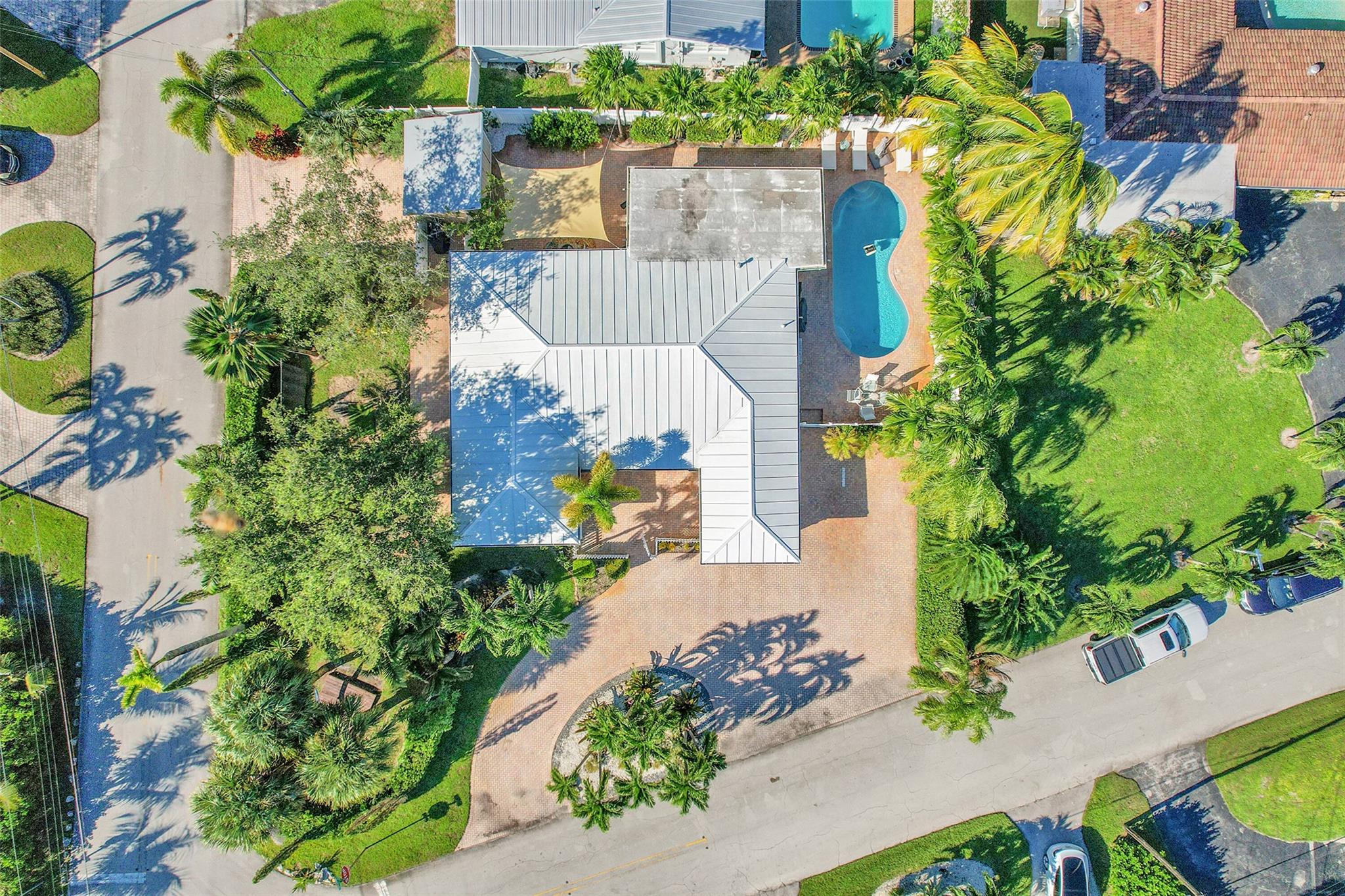 Move-in ready Key West–style 3BR/2BA home on an oversized corner lot near beaches and the intracoastal. Bright interiors showcase impact windows/doors, tile floors, recessed LED lighting, crown molding, custom closets, and a granite kitchen with brand-new LG stainless appliances (2025). New central AC, mini split, and energy-efficient washer/dryer. Outdoor paradise with resurfaced saltwater pool, nearly 5,000 sq ft of pavers, lush tropical landscaping, and RV/boat parking. Metal roof, upgraded electrical, and 100 gallon propane gas tank. Oversized 1 car garage with extra storage space. Minutes to Pompano Beach and 14th St Causeway boat launch.