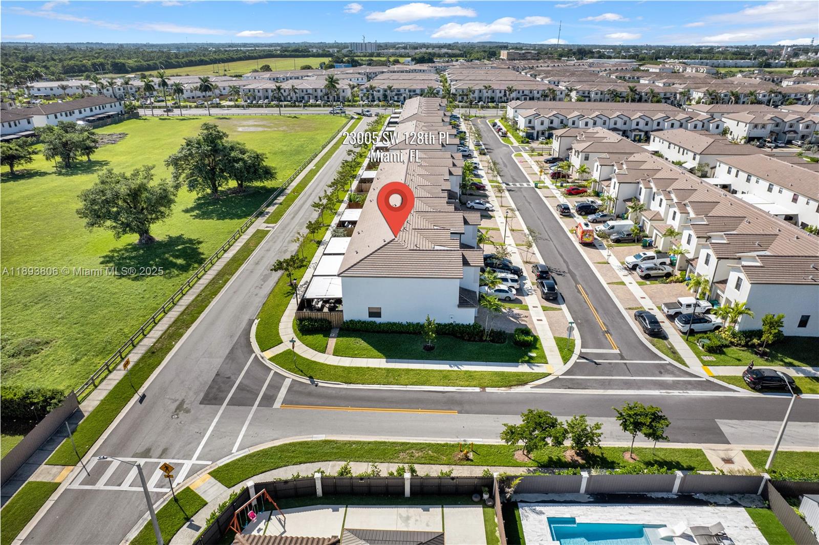 ASSUME SELLER'S 4.99% MORTGAGE****** Rare end-unit 2-story townhome with garage in Southwest Miami showcasing high-end upgrades throughout. This sought-after Lennar model now sells from $569K with no upgrades, making this $519K resale an exceptional value. Enjoy open living spaces, a soaring 20’ foyer, and a designer kitchen flowing into a private backyard oasis with pergola, dual fans, turf, and concrete flooring. Full hurricane-impact windows and doors provide safety, efficiency, and peace of mind. Upstairs, the deluxe primary suite overlooks a lush 5-acre park with spa shower and walk-in closet. Modern finishes include quartz counters, stainless appliances, tankless water heater, remote blinds, and marble sills. Clubhouse open—featuring resort-style pool, gym, hot tub, and playground.