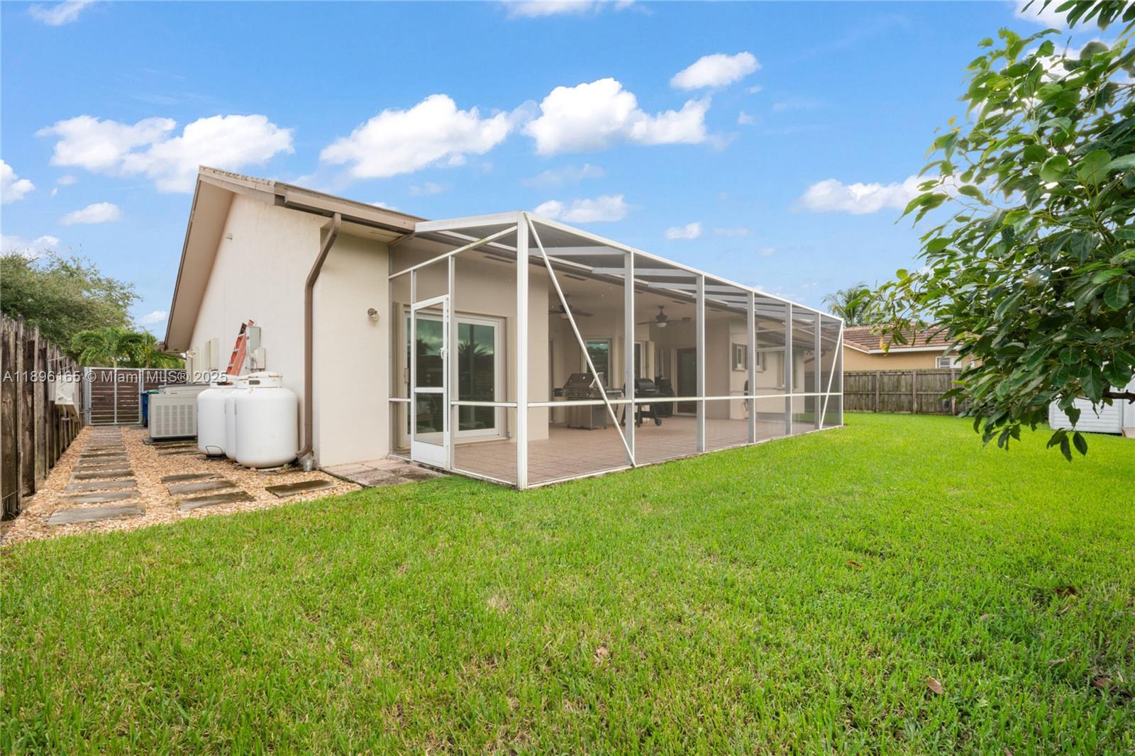 Beautifully maintained 4-bedroom, 2.5-bath home with brand-new tile roof and all impact windows and doors. Original owner, pride of ownership throughout. Features include a custom kitchen with granite countertops, solid wood cabinetry, and rollout drawers. Newly renovated bathroom with rain shower. Whole-house 27,000-watt generator with three 100-gallon propane tanks provides full power backup. Oversized lot with 10' x 12' storage shed and irrigated plant/orchid house. Located in a quiet neighborhood with top-rated schools.