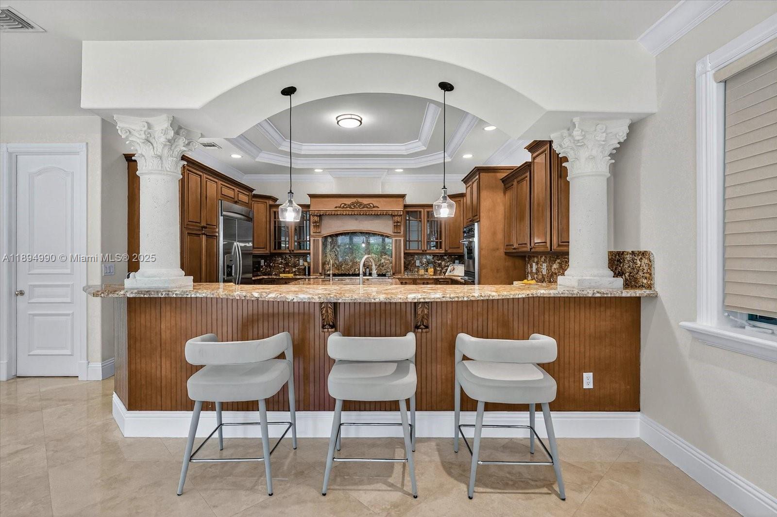 Nestled in High Pines, this privately gated two-story home offers 6 bedrooms, 6.5 baths, an elevator, 3 car garage on a desirable corner lot. As you enter, vaulted ceilings welcome you into a grand living room featuring a cozy fireplace and a bar area that opens to captivating views of pristine landscaping, complemented by a sparkling pool and spa. The first floor includes two private en suite bedrooms, a dedicated dining room, and a kitchen area. Upstairs, 3 additional en suite bedrooms and a spacious primary suite with balcony access overlook the tranquil backyard. Don’t miss the opportunity to make this elegant retreat your own—schedule your private tour today!