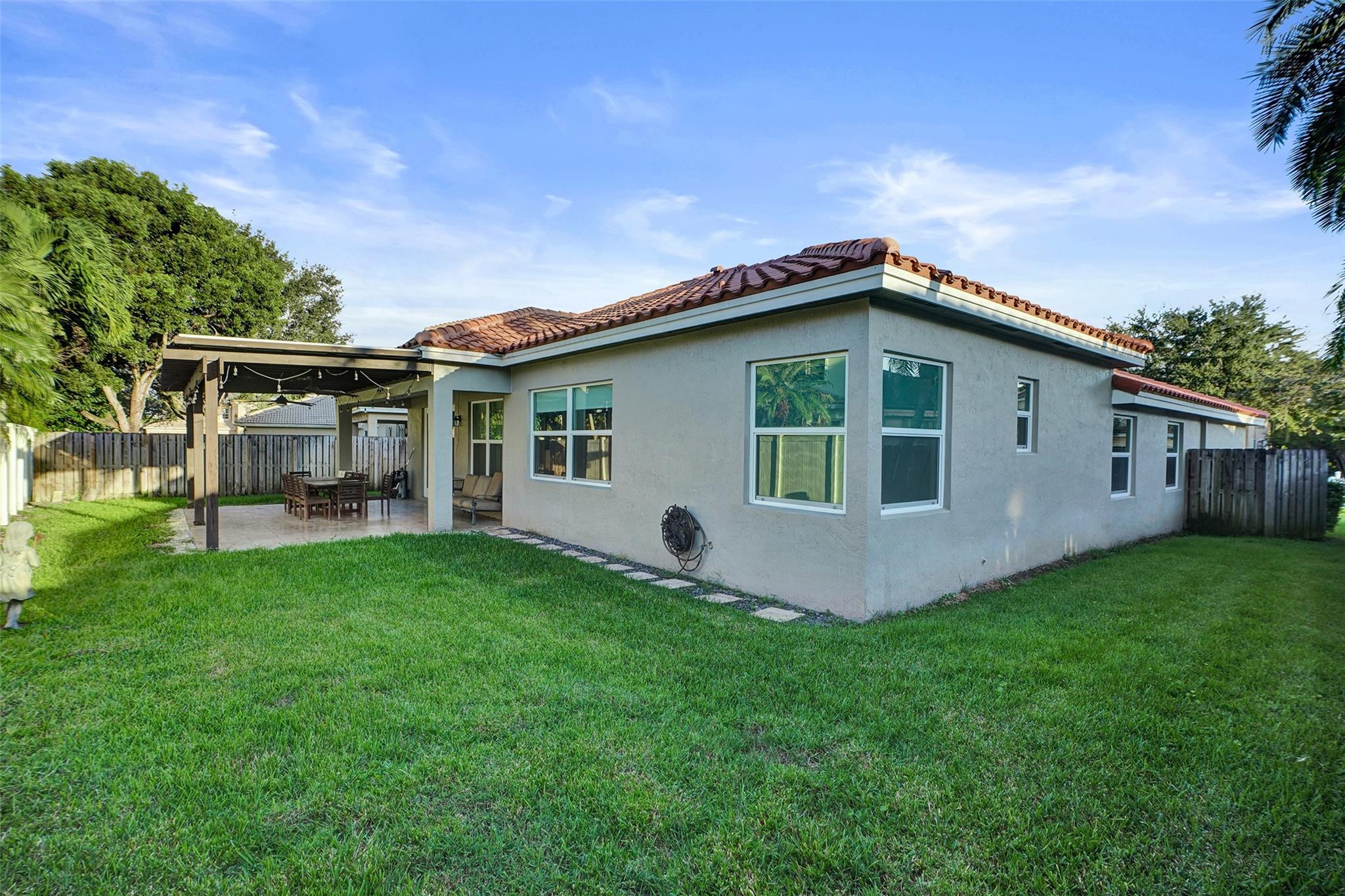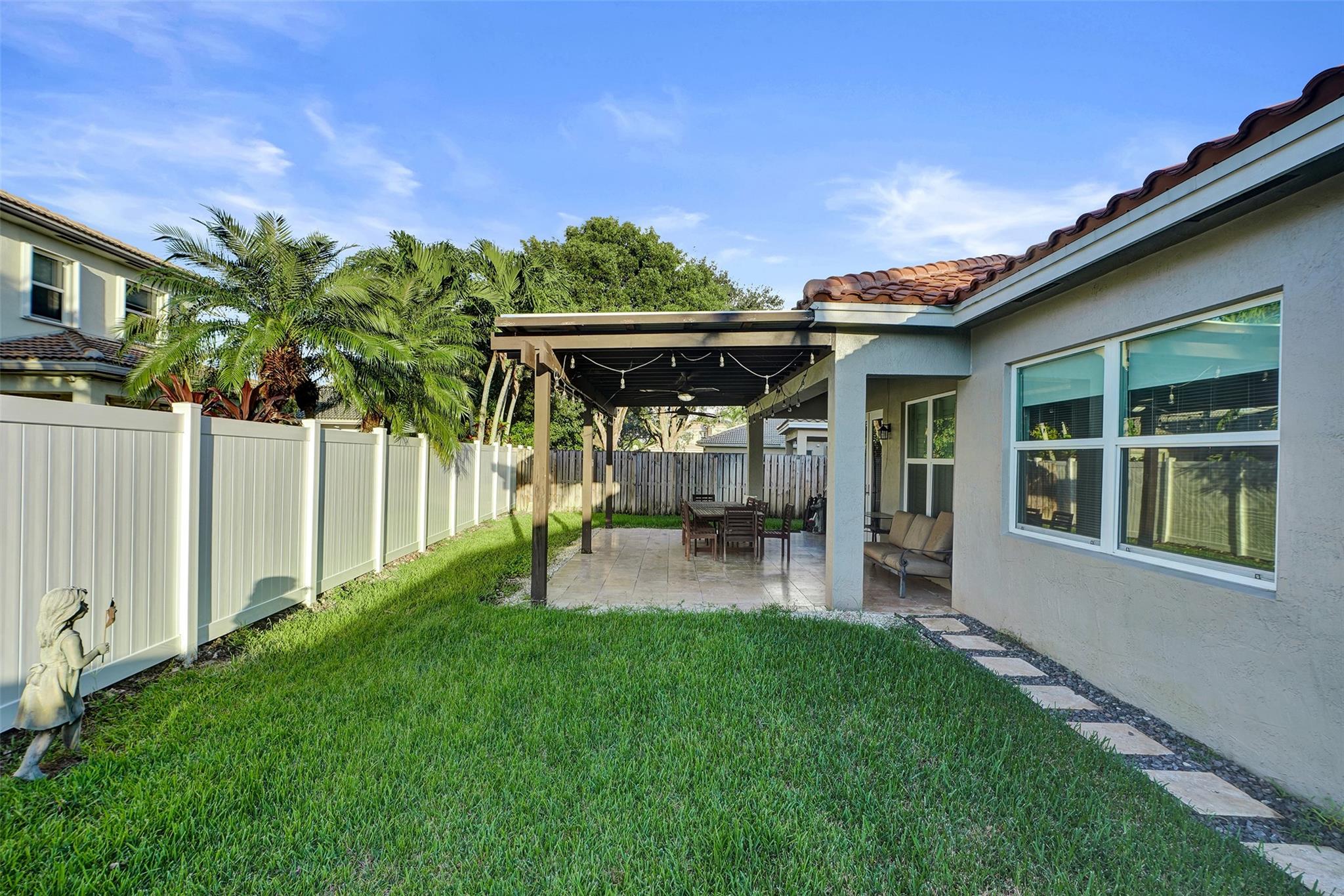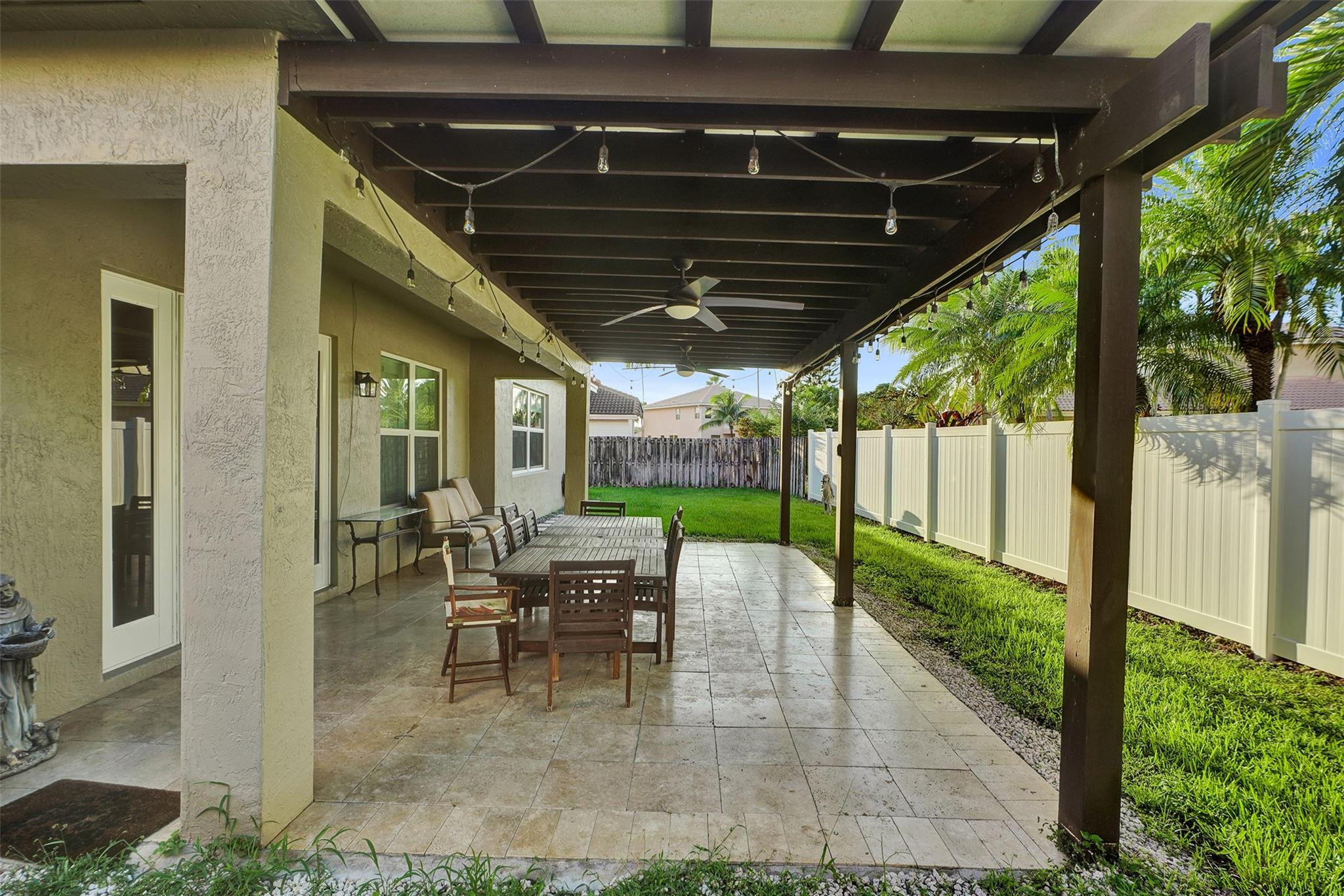 Introducing The Villa Medici model, a charming one story home, featuring 4 bedrooms, 2.5 bathrooms, and a 3-car garage, located in the highly sought-after community of The Point at Pembroke Isles. This well-maintained home offers a thoughtfully designed layout that flows seamlessly throughout, making it perfect for comfortable living and entertaining. Key features include a NEW roof (2020), impact windows and doors, and a NEW A/C unit (2021).Step outside to your private backyard and relax under the pergola. HOA includes: 24h security, internet, cable, maintenance, alarm monitoring, gym, tennis courts, pickleball courts, basketball court, soccer field, exercise room, sauna, 3 pools, playground, picnic area and more! Conveniently located near major highways, shopping and A+ Schools.