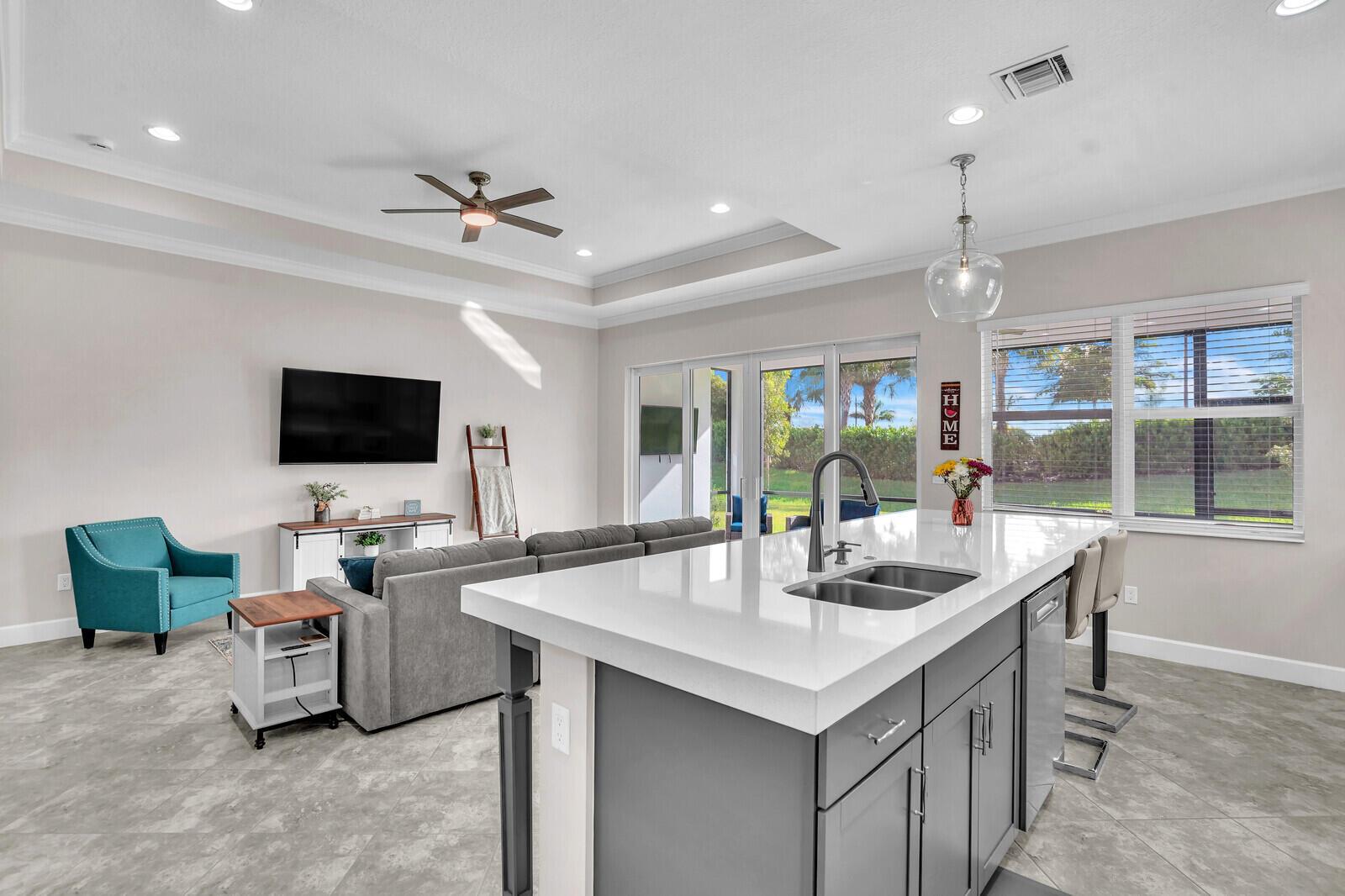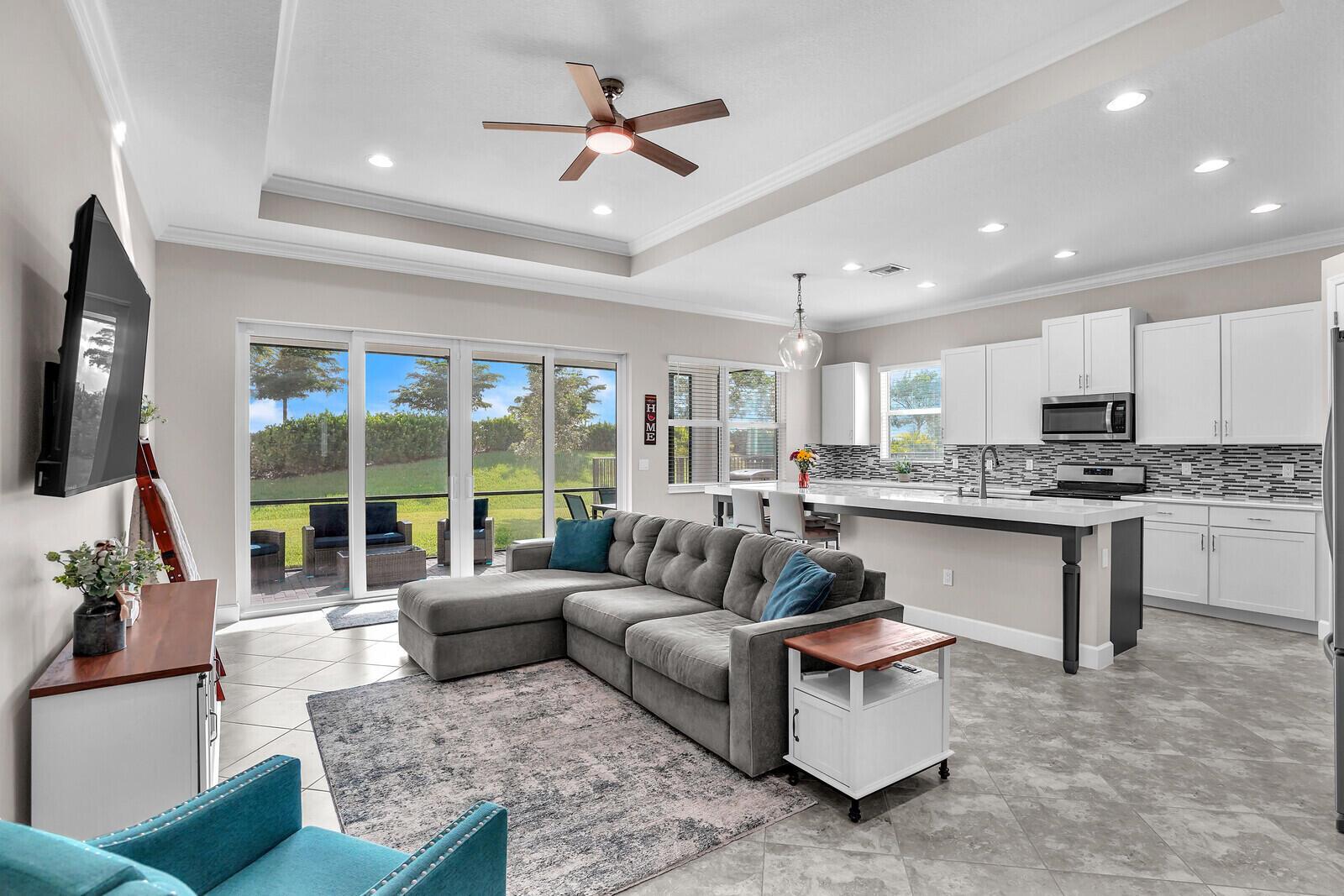 Welcome to this stunning Schefflera model in The Orchards of Westlake, offering 2,305 sqft of beautifully designed living space with 3 bedrooms plus a den, 2.5 bathrooms, and a 2-car garage. Every detail has been cared for with intention, creating a clean, comfortable space that feels like home the moment you step inside.Featuring full hurricane impact protection and extra added insulation for comfort and efficiency, this home also showcases ceramic tile flooring throughout. The bright kitchen offers white shaker cabinets, quartz countertops, stainless steel appliances, a gas range, and an extended island with a spacious corner pantry. The countertop is also extended for a convenient buffet-style setup--perfect for entertaining.