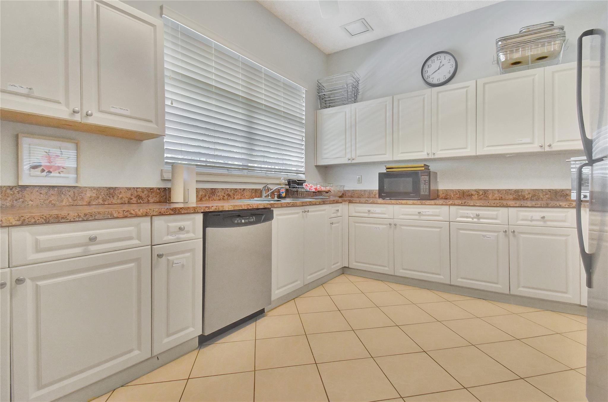 55+ Community - Discover this beautifully maintained 3-bedroom, 2-bath Lakeridge home, where comfort meets connection. Vaulted ceilings and a skylight fill the open layout with natural light, illuminating warm laminate floors throughout. The kitchen shines with sleek black lacquer countertops, double stainless sink, Frigidaire appliances, and abundant cabinetry. The spacious primary suite offers private patio access, dual vanities, and a generous walk-in closet. Relax on the screened, covered patio overlooking lush garden views. Additional features include a 1-car garage, 2022 A/C, 2018 roof, and low $295 HOA covering cable, lawn, and exterior care. Minutes to beaches, shopping, and dining — a serene retreat with timeless Florida charm.