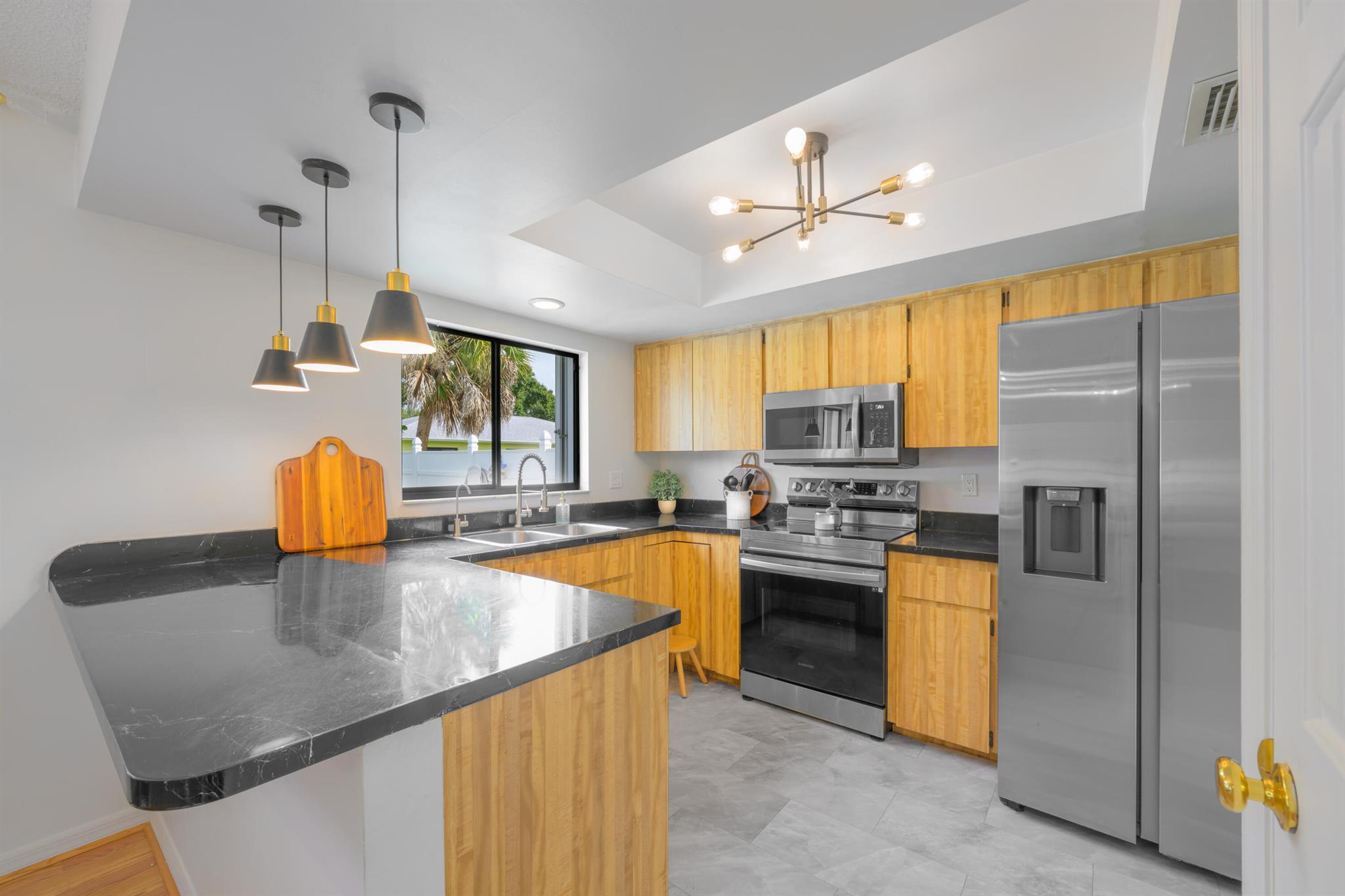 Beautifully updated 3-bedroom, 2-bath pool home on a spacious corner lot in the quiet and desirable Laurelwood community. This home features a fenced in yard and a large enclosed porch, Conveniently located near beaches, parks, schools, and shopping. Fully remodeled in 2022 with a new roof, new hot water heater, and premium Samsung appliances. All room measurements are approximate. Some of the items shown in the photos has been removed.