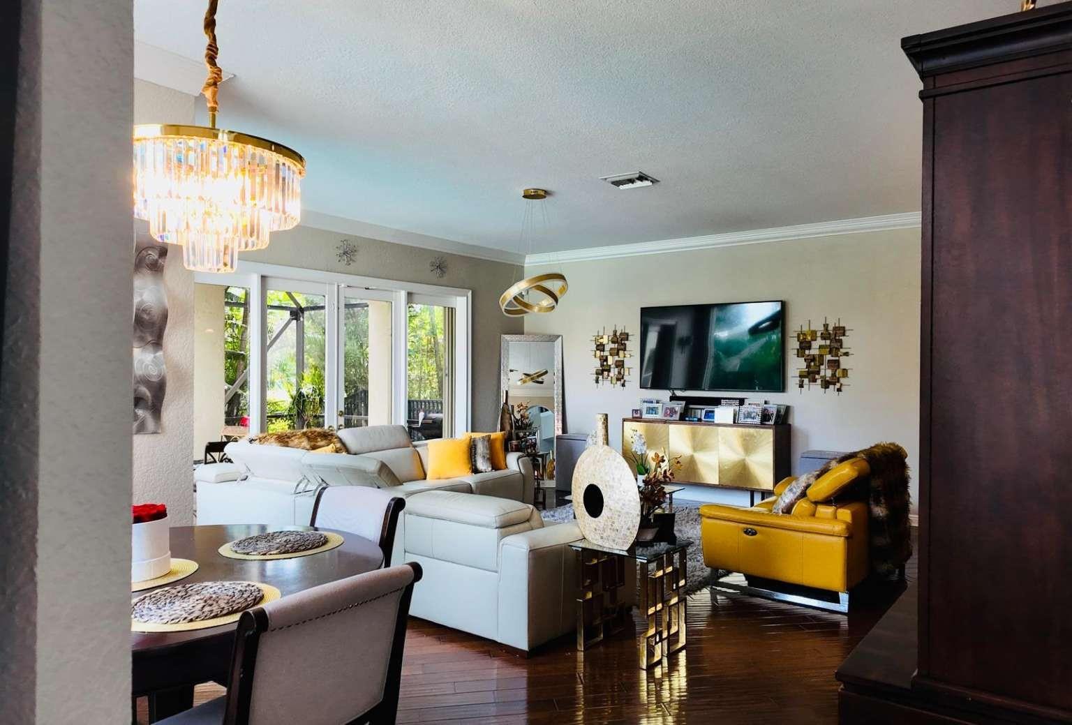 Luxury in San Messina Pool, Furnished, In-Law Suite & Home Gym Discover this move-in-ready estate in the sought-after San Messina community, offering approximately 4,500 sq ft of elegant living, including a screened pool, in-law suite, and private home gym. Step into a dramatic great room with 24-foot ceilings and floor-to-ceiling windows that fill the home with natural light and showcase the pool and tropical landscape. The open-concept design connects the kitchen, family room, and outdoor living space, creating seamless flow for entertaining and relaxation. The chef’s kitchen features granite countertops, custom cabinetry, built-in appliances, and a large island that opens to the family room. Just beyond, sliding doors lead to the screened patio and pool,