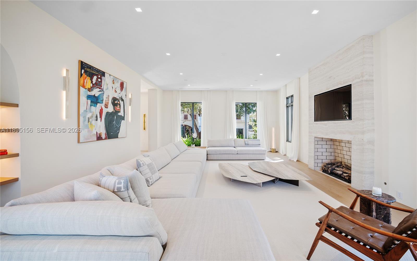Timeless Architecture Reimagined with Modern Elegance on Iconic N Bay Rd. Developed by Menin Homes & architecture by Zeb Jarosz, this waterfront estate showcases wide open bay & skyline views. Main house offers 4BD/4.5BA while a detached guest residence includes 3BD/3BA with garage. 12’ ceilings, Marmorino plaster walls & wood flooring throughout frames light-filled interiors anchored by a bamboo-flamed travertine fireplace. Bespoke ITALKRAFT kitchen with Sub-Zero & Wolf appliances complements marble-accented baths & custom millwork. Primary suite boasts a steam room, sauna, his & her toilets & terrace with a cold plunge. Enjoy a new pool, jacuzzi, Cocoon shower & custom BBQ. Fully automated Control4 smart home w/ generator, Apparatus lighting & ATRA furnishings complete this masterpiece.