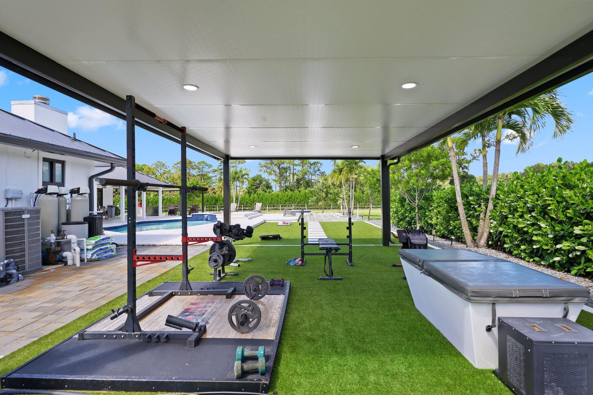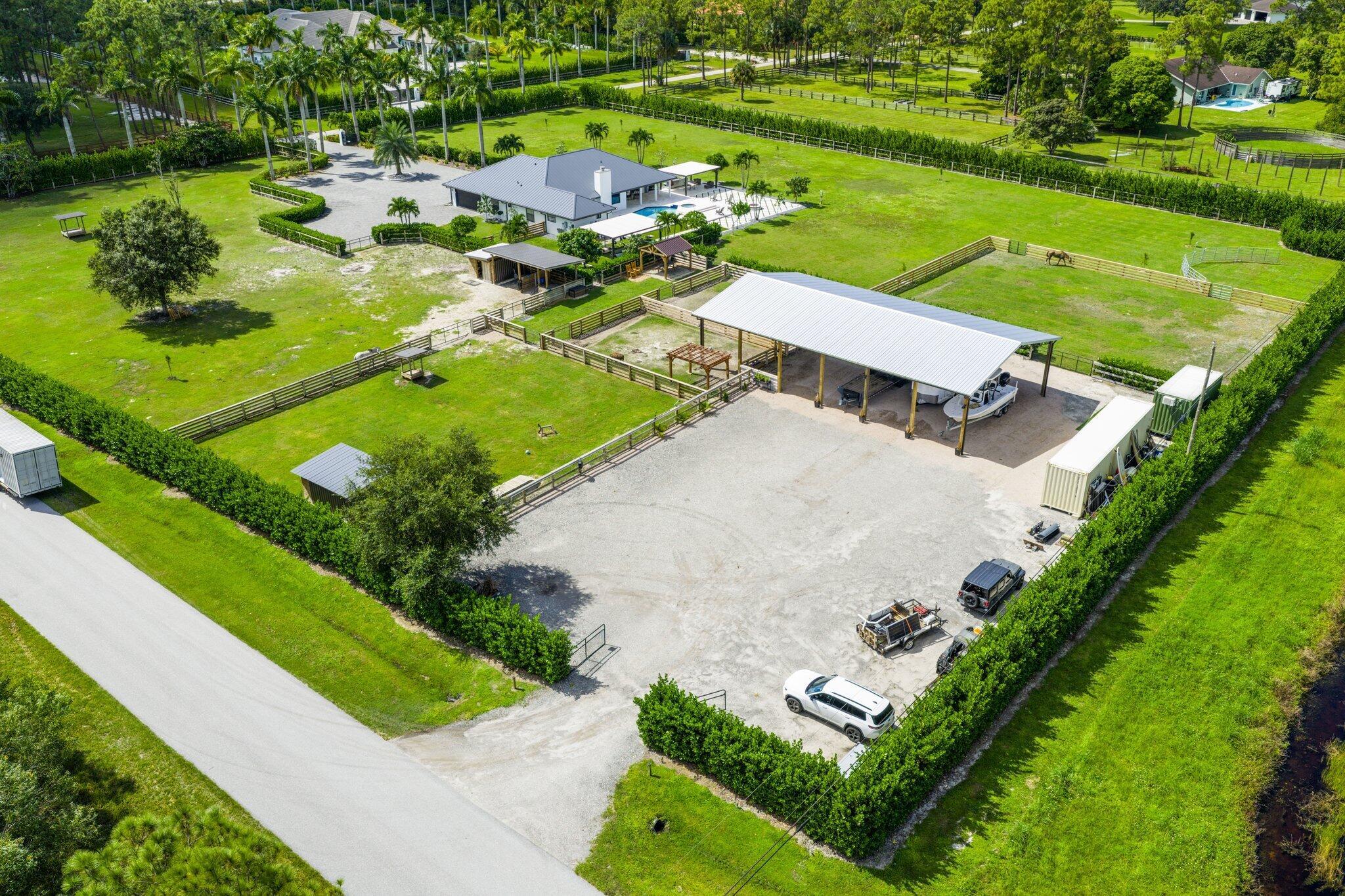 Welcome to your equestrian paradise in the prestigious community of Caloosa. This stunning property spans over 5 acres of serene landscape, which surround your 4 bed, 3 bath, completely renovated home. A brand new pool deck, summer kitchen, and outdoor fitness area highlight some of the many recent upgrades, and provide for an endless entertainment landscape.Outside, equestrians will delight in the brand-new barn, which can accommodate up to 10 horse stalls if desired. Currently, the property has 2 stalls already in place. The lush landscaping and majestic palm trees provide a picturesque setting for unmatched privacy.A newly installed roof and a grand, sweeping driveway add both practicality and charm to this exclusive retreat