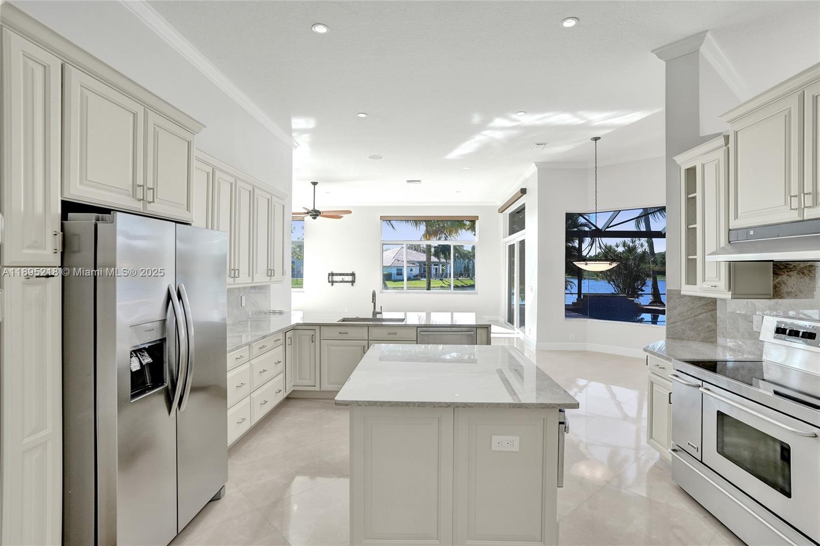 Spectacular one story completely remodeled home in the rarely available exclusive community of Edgewater at Weston Hills Country Club. This gorgeous home is situated on a peaceful cul-de-sac lot with a nearby community park. Breathtaking Panoramic Lakeview! Features include 4 Bedrooms plus office/den & 3.5 bathrooms. Beautifully remodeled kitchen with Taj Mahal quartzite. Spacious split bedroom floor plan with volume ceilings, luxury flooring throughout, redone and spacious family room, multi room high end audio system. New Screened POOL with water feature and Patio overlooking tranquil lake views! Newer Roof Impact Window and Doors, 3 car garage with built-in cabinetry, storage, epoxy flooring and 2 EV charging stations & A+ Schools. This is the home you have been waiting for!