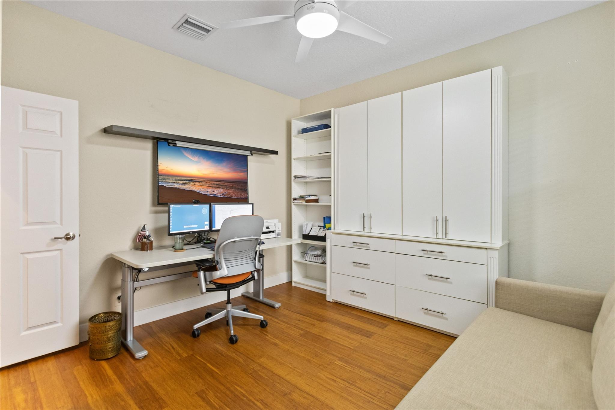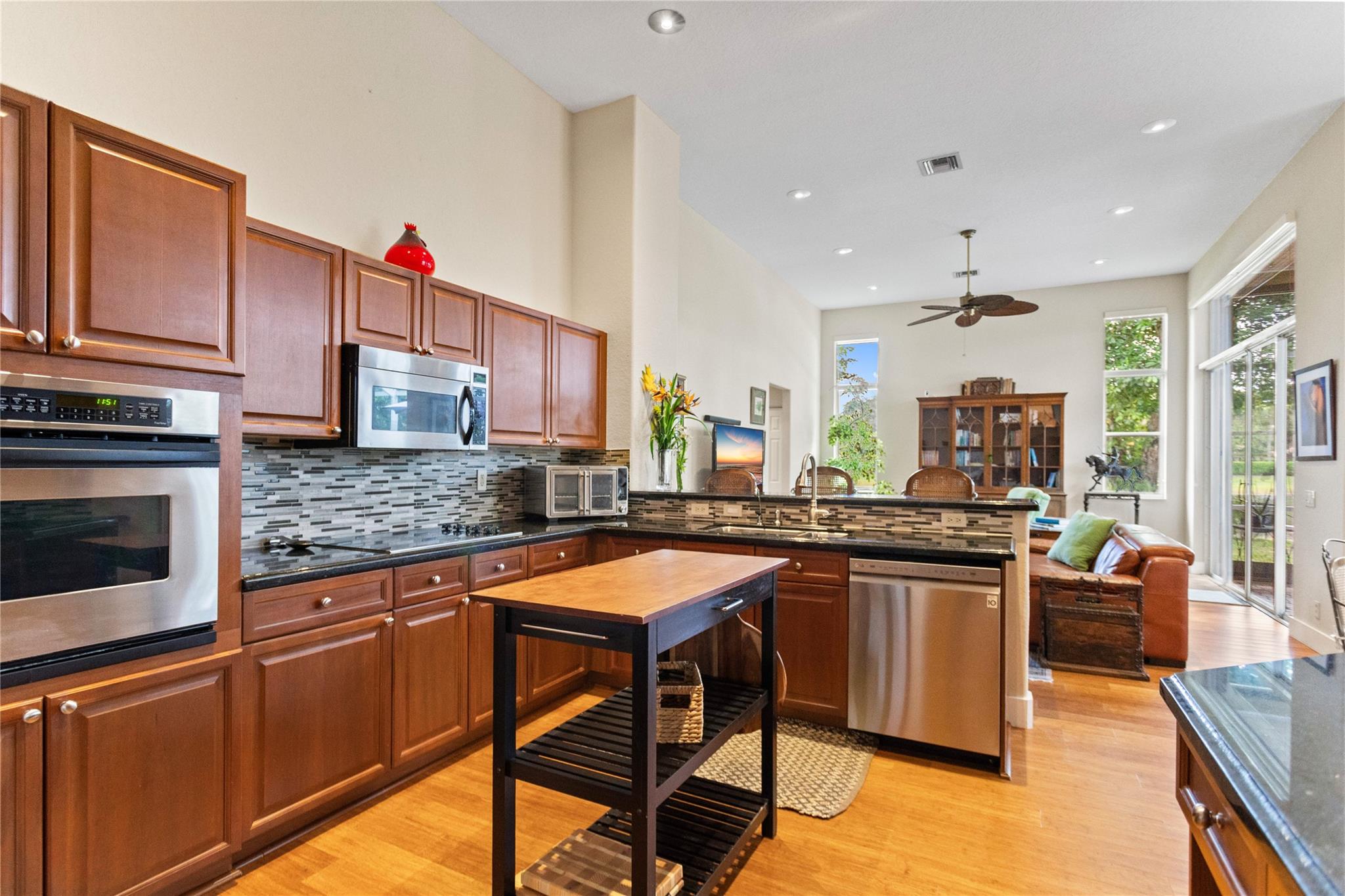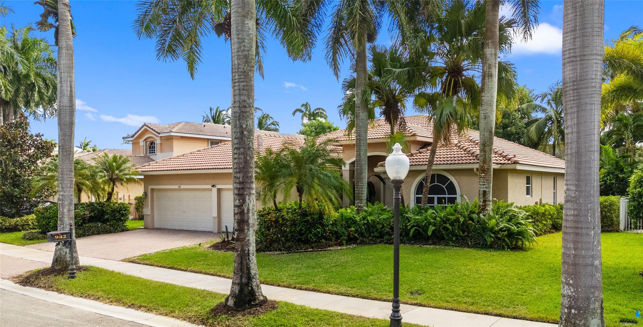 RARELY AVAILABLE IN COVE III – THE ONLY SINGLE STORY HOME CURRENTLY FOR SALE! This beautifully maintained 4-bed, 3-bath SINGLE- STORY home with a 3-car garage sits on a premium lakefront lot. The backyard faces SOUTH with serene lake views from your permitted screened enclosure (2019). Hot tub included (2019) Handmade antique primary bedroom door from South America. Custom Glass work, marble and bamboo flooring throughout. All three bathrooms were updated in 2019. The kitchen features granite counters, wood cabinets and a center island. A/C from 2019. Accordion shutters, sprinkler system runs from the lake. Triple split-bedroom floor plan for privacy. Resort-style community with lots of amenities and A+ schools. Don't miss this chance to live in one of Weston’s most desirable neighborhoods