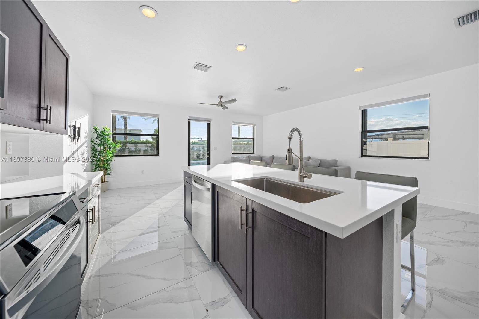 Experience modern luxury and resort-style living in this beautifully remodeled home in Aquabella! Step into your private backyard oasis featuring a sparkling saltwater pool, travertine deck, and lush artificial turf—perfect for relaxation and entertaining. Inside, you’ll find a fully renovated kitchen, updated flooring, and stylishly redesigned bathrooms. A Tesla home charger adds convenience and sustainability. Situated on one of the largest lots in the community, this home offers both space and privacy. Ideally located between Miami Lakes and Hialeah Gardens, you’re just minutes from premier dining, shopping, and entertainment. Residents enjoy access to two clubhouses, state-of-the-art gyms, resort-style pool, and kids’ waterpark—the ultimate family-friendly retreat.