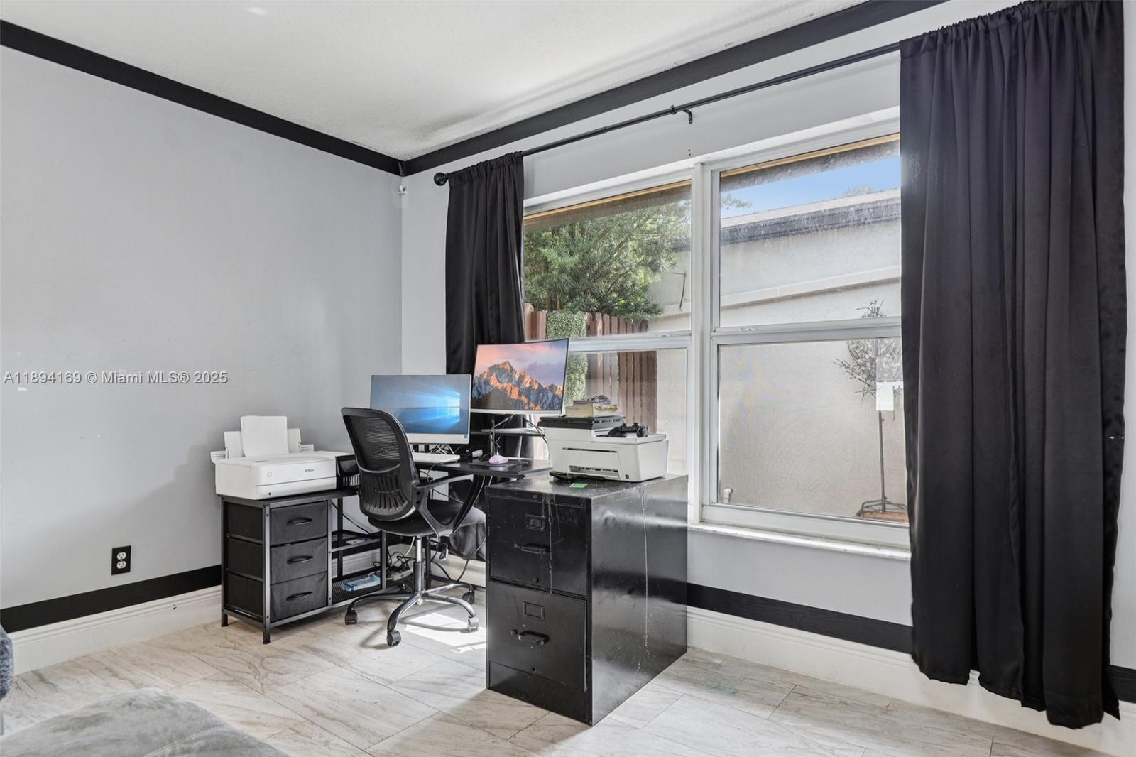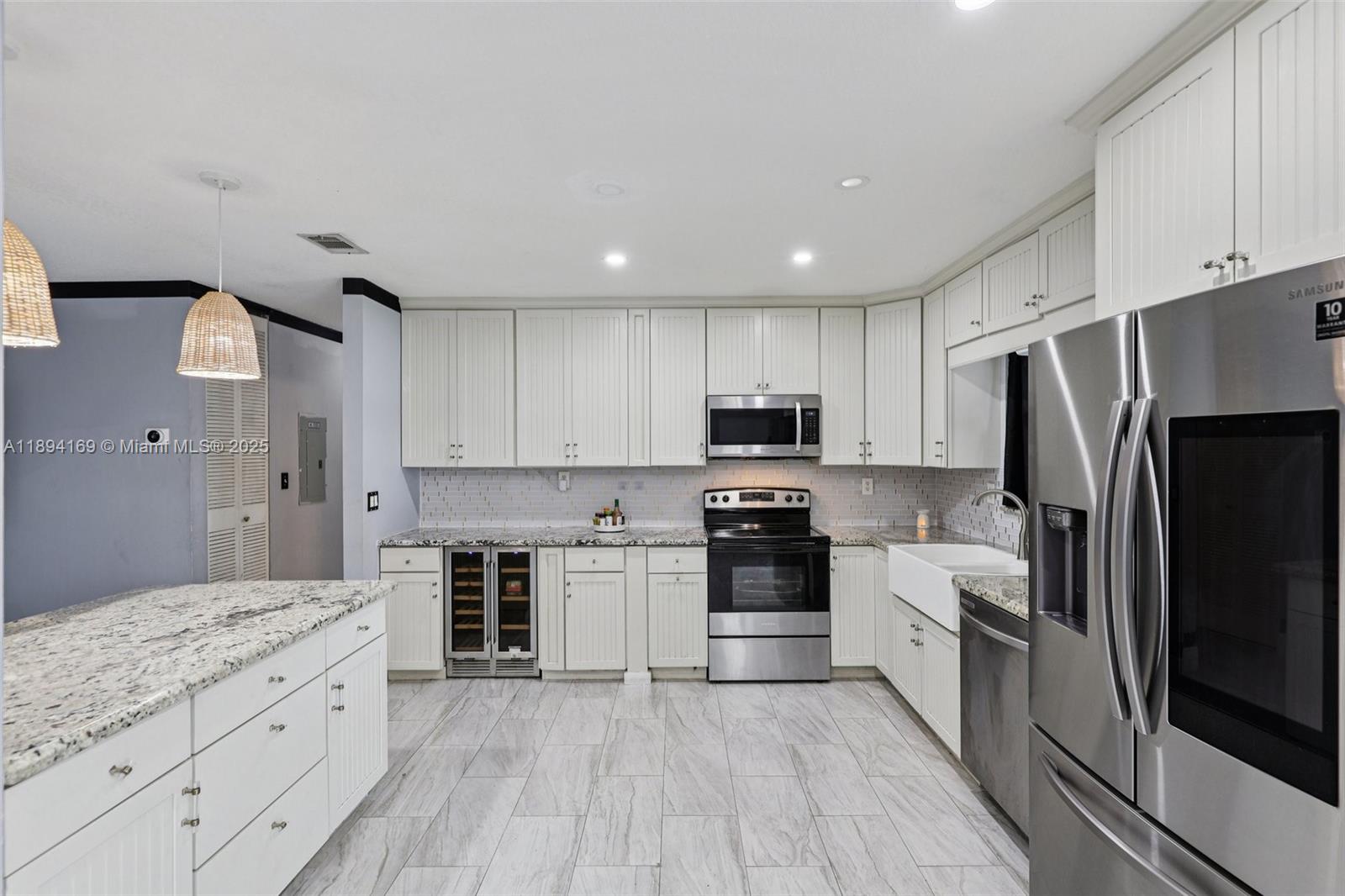Experience this beautifully updated pool home in Welleby South, featuring a circular driveway and tropical curb appeal. Step into the foyer leading to a bright courtyard and an airy atrium filled with natural light from skylights in the new roof (under 1 year old). The open layout flows to a modern kitchen with custom white shaker cabinets, granite counters, farmhouse sink, smart refrigerator, and wine cooler. Tile floors throughout complement impact windows and doors with plantation shutters. Enjoy lush landscaping, a screened patio, oversized hot tub, and sparkling pool—perfect for relaxing or entertaining. Ideally located near Sawgrass Mills, Markham Park, I-595, I-75, and the Sawgrass Expressway, medical centers and schools.