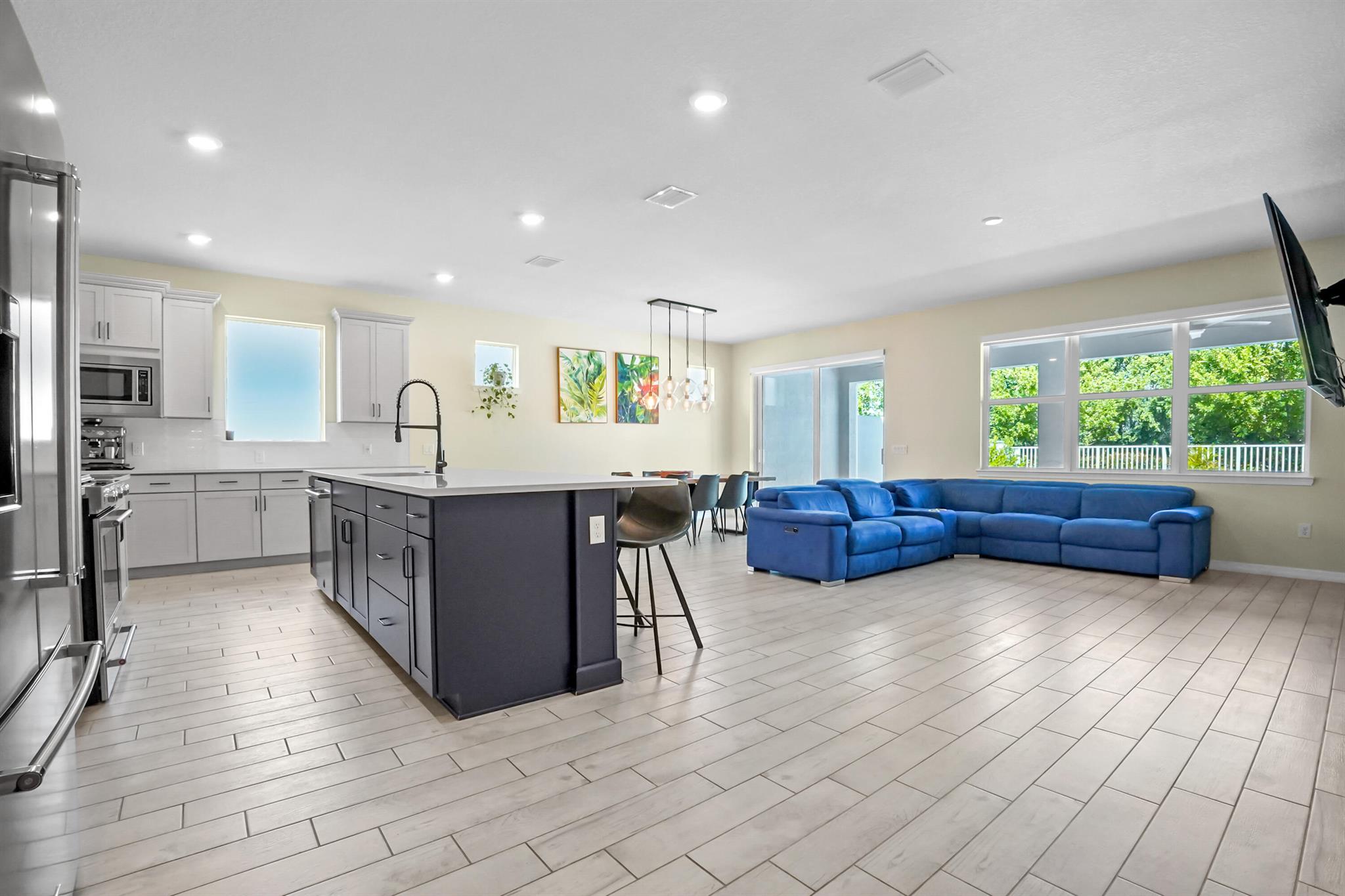 Prepare to be impressed by this absolutely stunning and meticulously upgraded single-family pool home, perfectly situated in the desirable, lake-focused community of Windsong Estates in Lake Worth. The residence boasts exceptional curb appeal, featuring a modern flat-tile roof, a beautiful multi-toned paver driveway, and a charming light blue stucco exterior framed by tropical landscaping. From the moment you arrive, the home's contemporary style is evident, promising a tranquil and luxurious lifestyle.