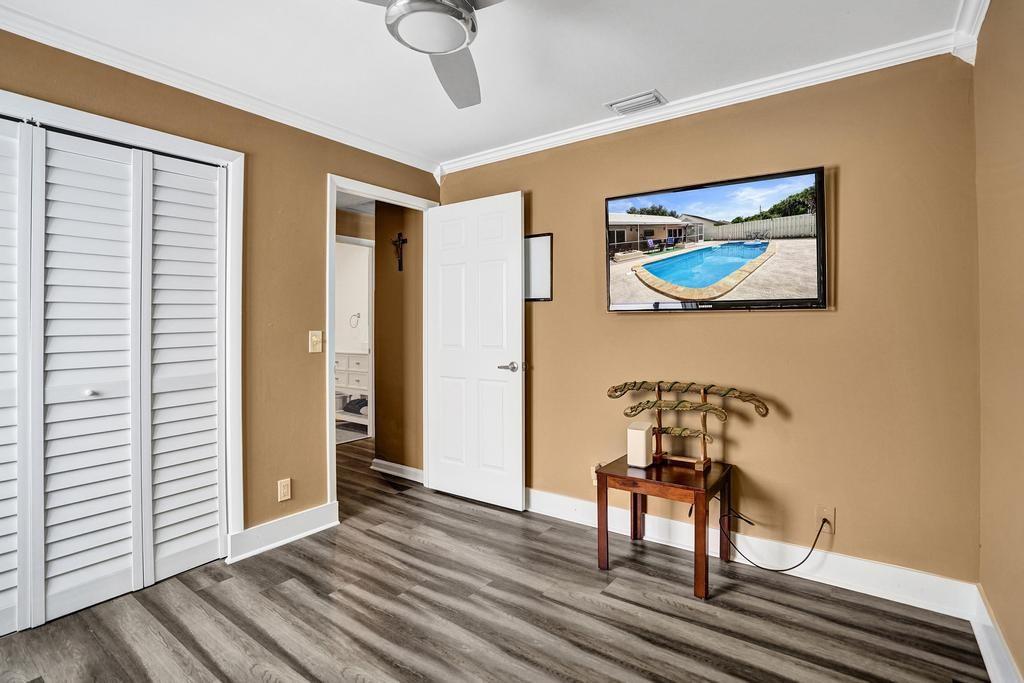 Welcome to your private paradise in Strawberry Lakes! This 3-bed, 2-bath, 2 car garage pool home is designed for entertaining. The backyard is the star, 1 of only 7 in the community with a sparkling pool, tiki hut, & plenty of space to host unforgettable gatherings. Enjoy a covered, screened patio, lush landscaping, & one of the largest lots in the neighborhood. Inside, you’ll find vaulted ceilings with crown molding, recessed lighting, luxury vinyl plank flooring, a modern kitchen & white granite counters, a skylight, & stainless appliances. All windows, doors & sliders are hurricane impact. The primary suite features a double door entrance, an upgraded bathroom with white and blue subway tile, a rain shower, & dual vanities. This home is move-in-ready, ready to host your first party!