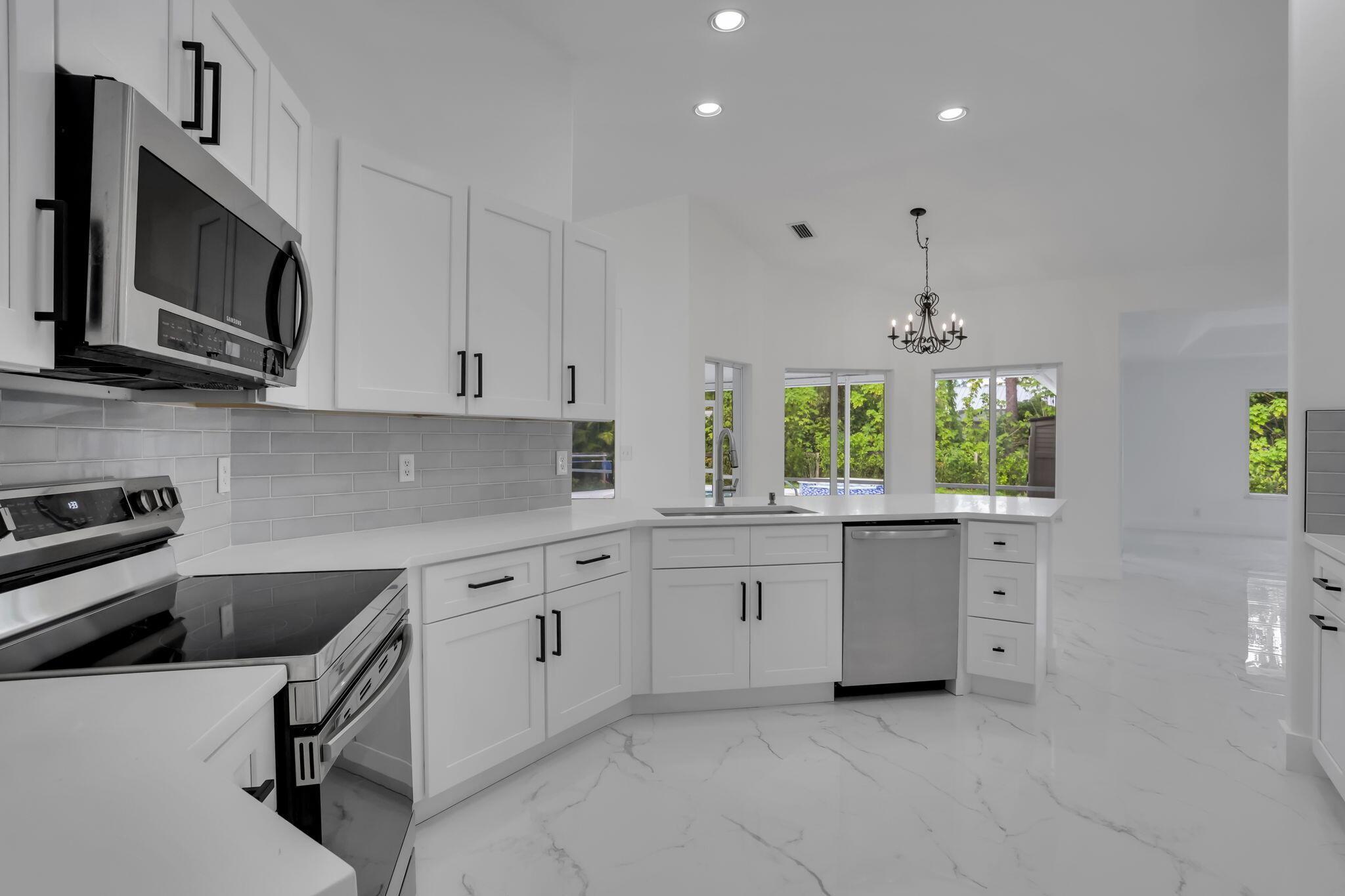 Step into this beautifully remodeled home, showcasing over $100,000 in high-end renovations and set on a spacious 1.3-acre lot. Every detail has been thoughtfully updated, starting with a brand-new roof (2023), imported 32x32 tile flooring throughout the main living areas, complemented by luxury vinyl plank in the bedrooms. This gorgeously updated kitchen features shaker cabinets, quartz countertops updated appliances, sleek finishes, and ample space for entertaining, while the fully updated bathrooms offer a fresh, rejuvenated feel. Additional upgrades include a solar battery backup system with generator hookup, newly resurfaced pool (2024) perfect for outdoor relaxation, newer water system (2021), new hot water heater (2023) and completely repainted inside and out