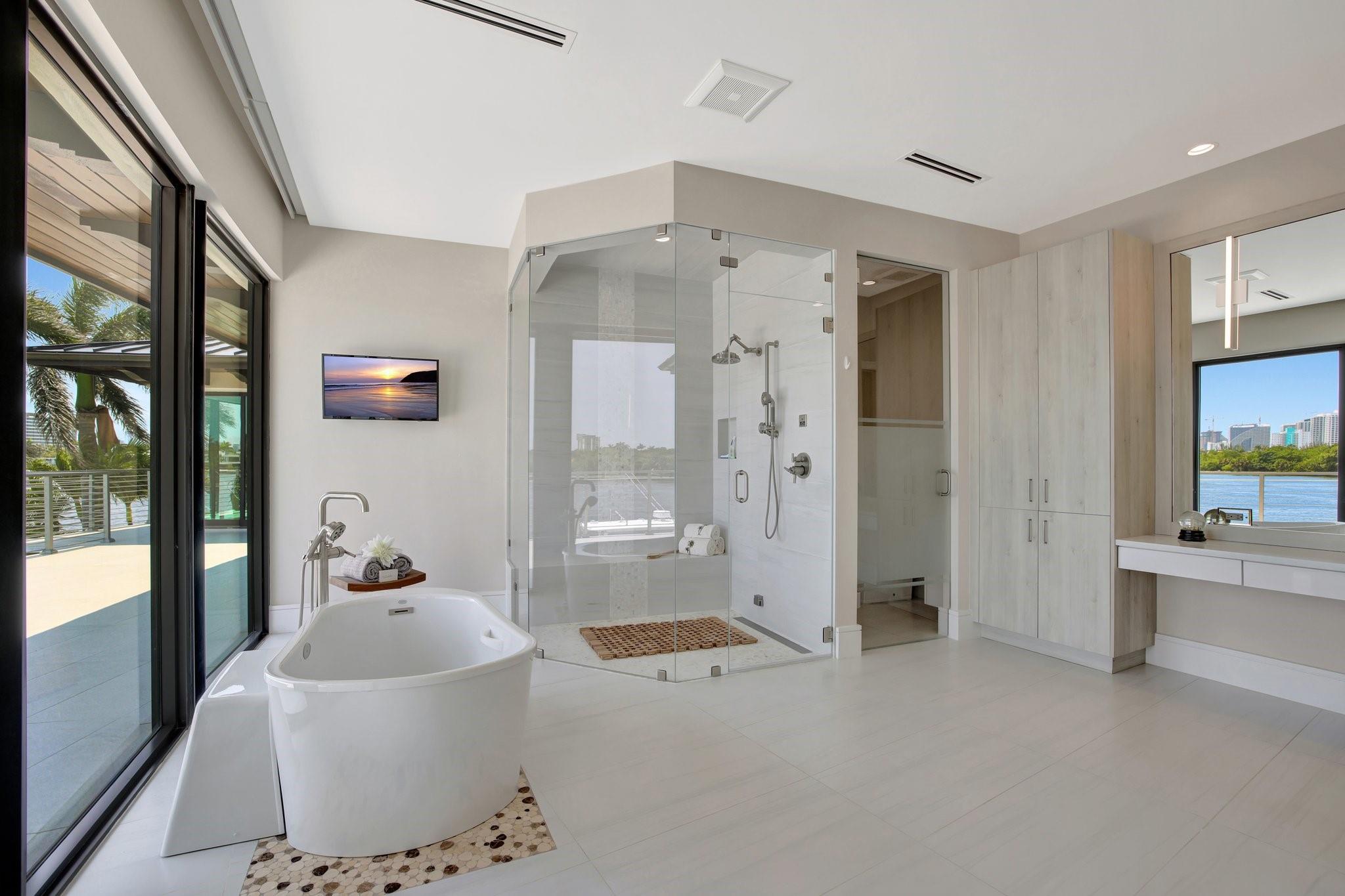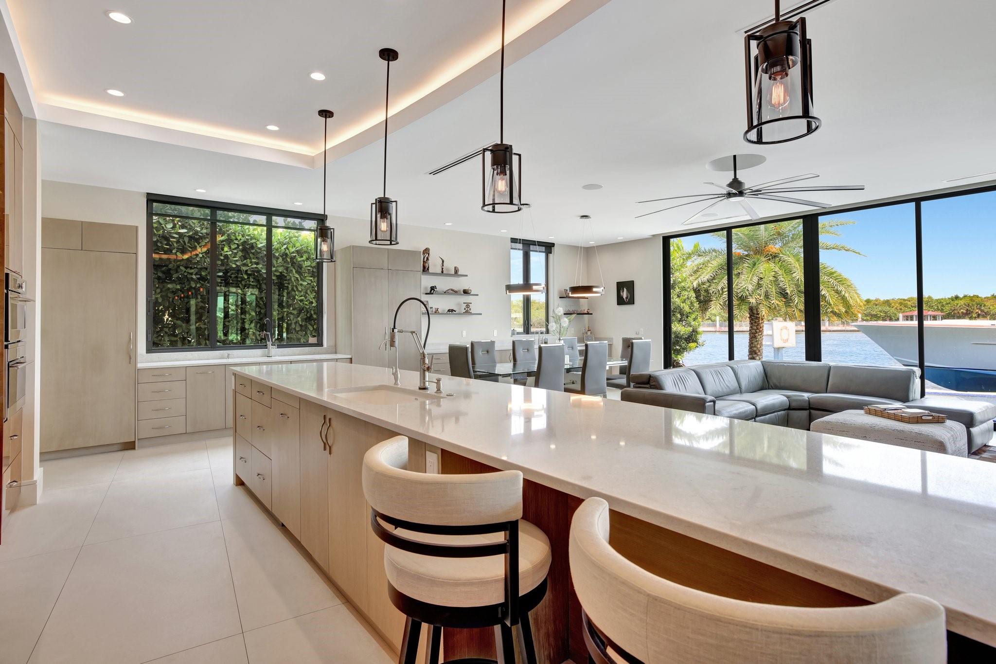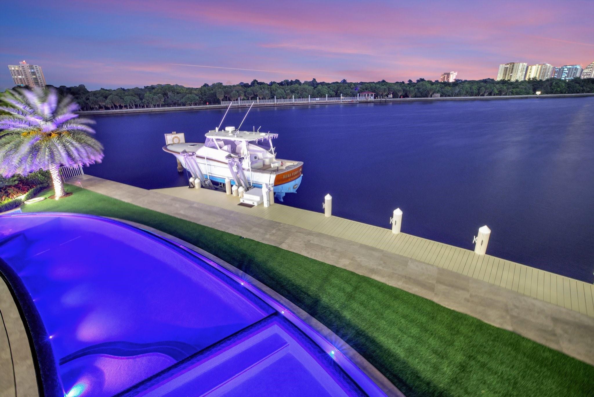 Wide open intracoastal to bay views comparable to a point residence overlooking Birth State Park! Stunning custom deepwater Estate located on desirable, quiet & private Isle. Furniture negotiable. Coastal contemporary architecture, smart technology, full solar power, superior floorplan total 8,350sf +/-. "Wow" factor views immediately on entry! Dramatic open-concept great room, iron beams & fireplace. Ultimate Chef's kitchen, oversized island & extensive dining/entertaining areas, all access covered terrace. Impressive large corner office overlooks waterways & resort-style custom pool, VIP guest suite. 2nd level: secondary primary suite, 2 bedroom suites (1 currently gym). Ultra-luxurious primary suite, separate spa baths/closets, plus large flexible bonus room. Expansive upstairs balcony.