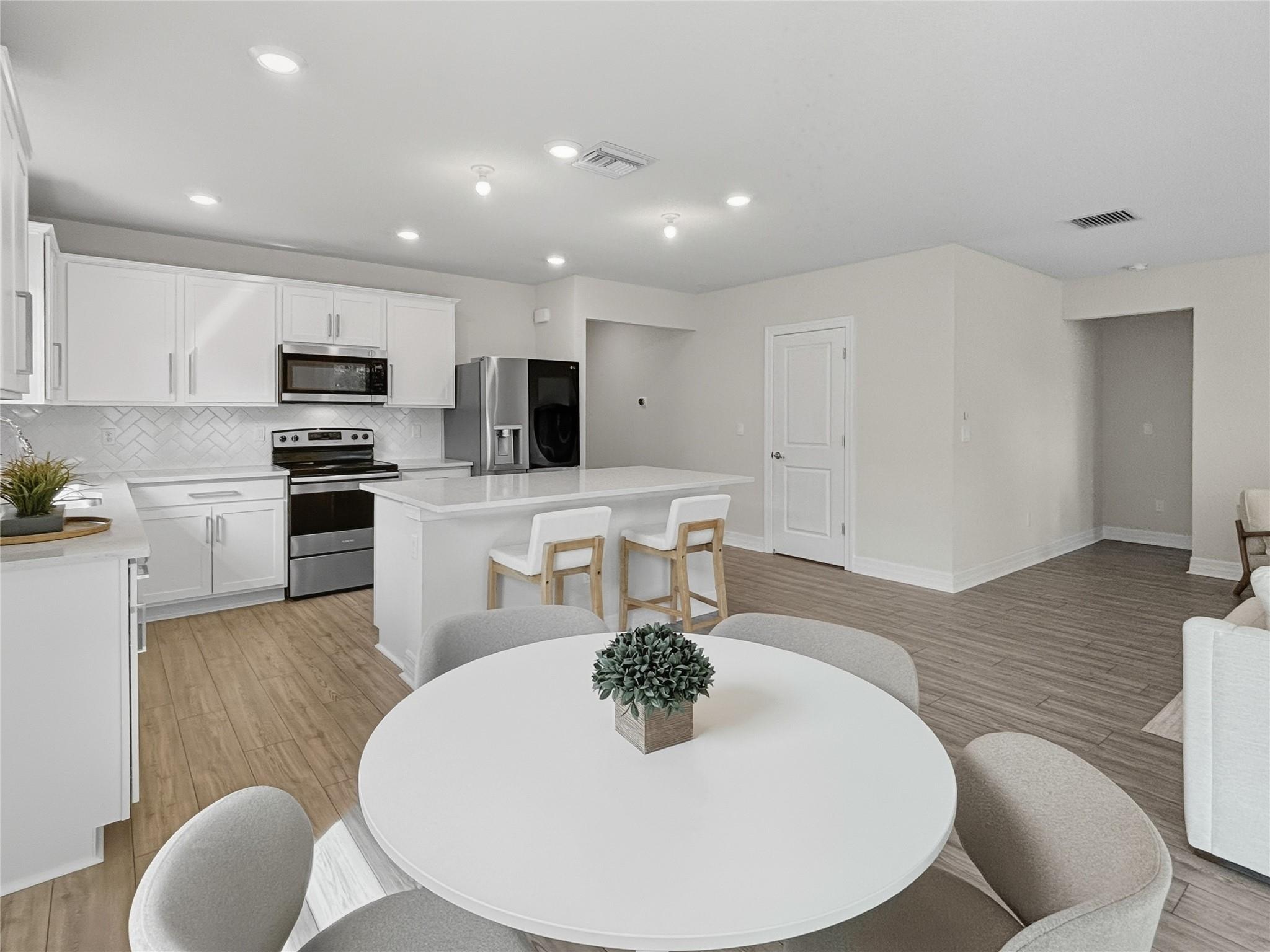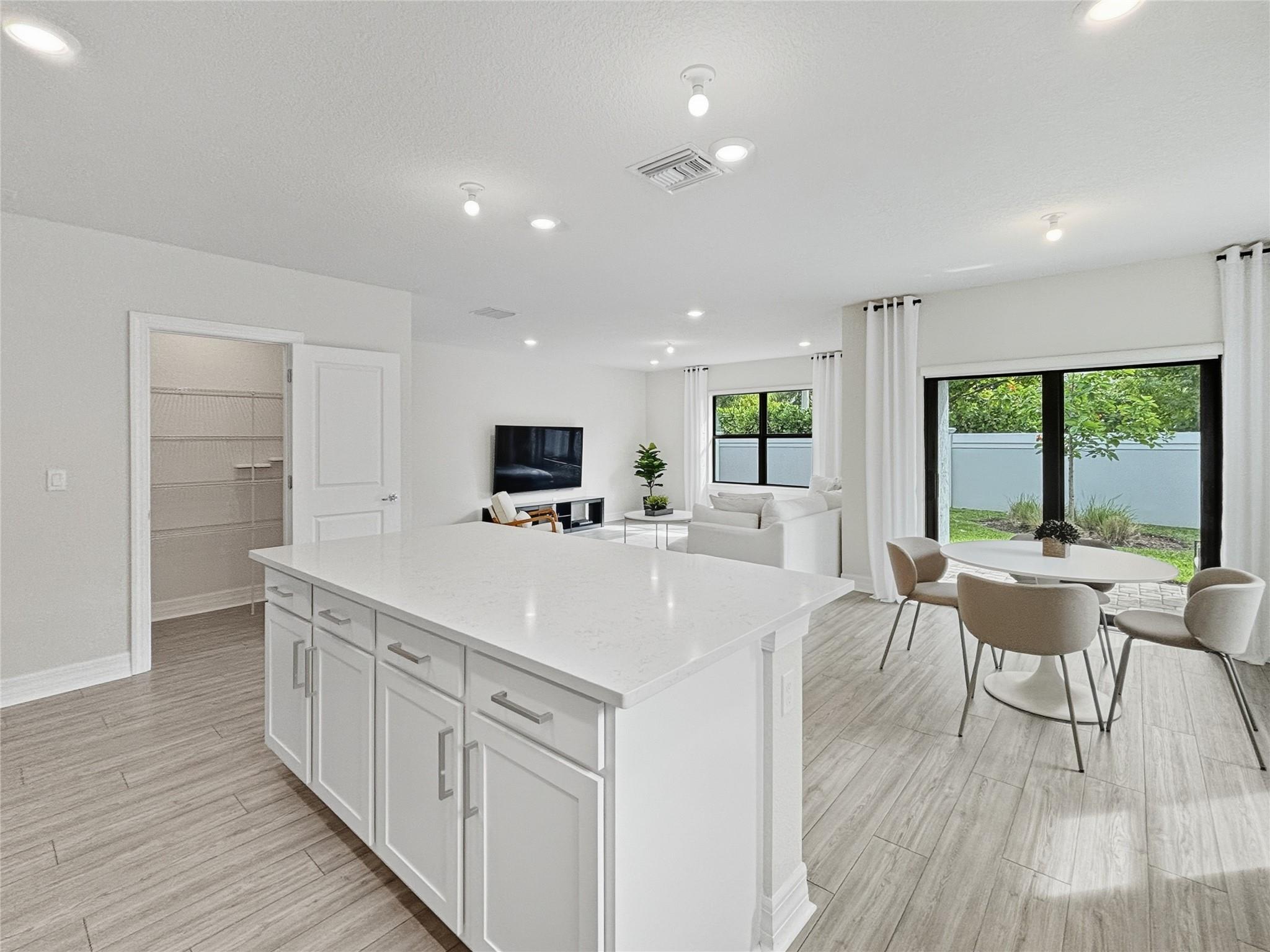 • Интерьер:BedroomOnMainLevel, ClosetCabinetry, DualSinks, EatInKitchen, FamilyDiningRoom, FirstFloorEntry, KitchenIsland, MainLevelPrimary, WalkInClosets