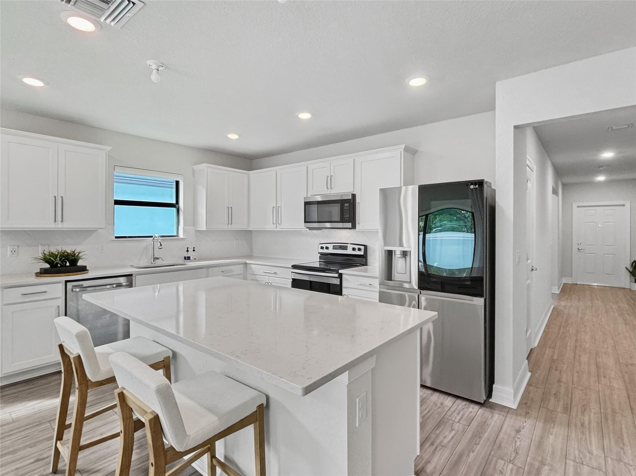 Move-In Ready Home in Cassia Estates Gated Community – Seller Offering $10,000 In Closing Costs! Built in 2022, it offers low ongoing expenses w/ recent $2,704/year insurance premium & no flood coverage required. Enjoy added assurance with AC & structural warranties. The bright kitchen features quartz counters, stainless steel appliances, & a large island that opens to the family room - ideal daily living or entertaining. A thoughtful split floor plan enhances privacy in the primary suite, highlighted by dual vanities & a custom walk-in closet. Residents appreciate the quiet setting & low-maintenance lifestyle w/ HOA-provided landscaping, lawn care, & high-speed fiber internet. Additional features include impact windows, covered patio, & laundry room. Ring in the New Year in Your New Home!