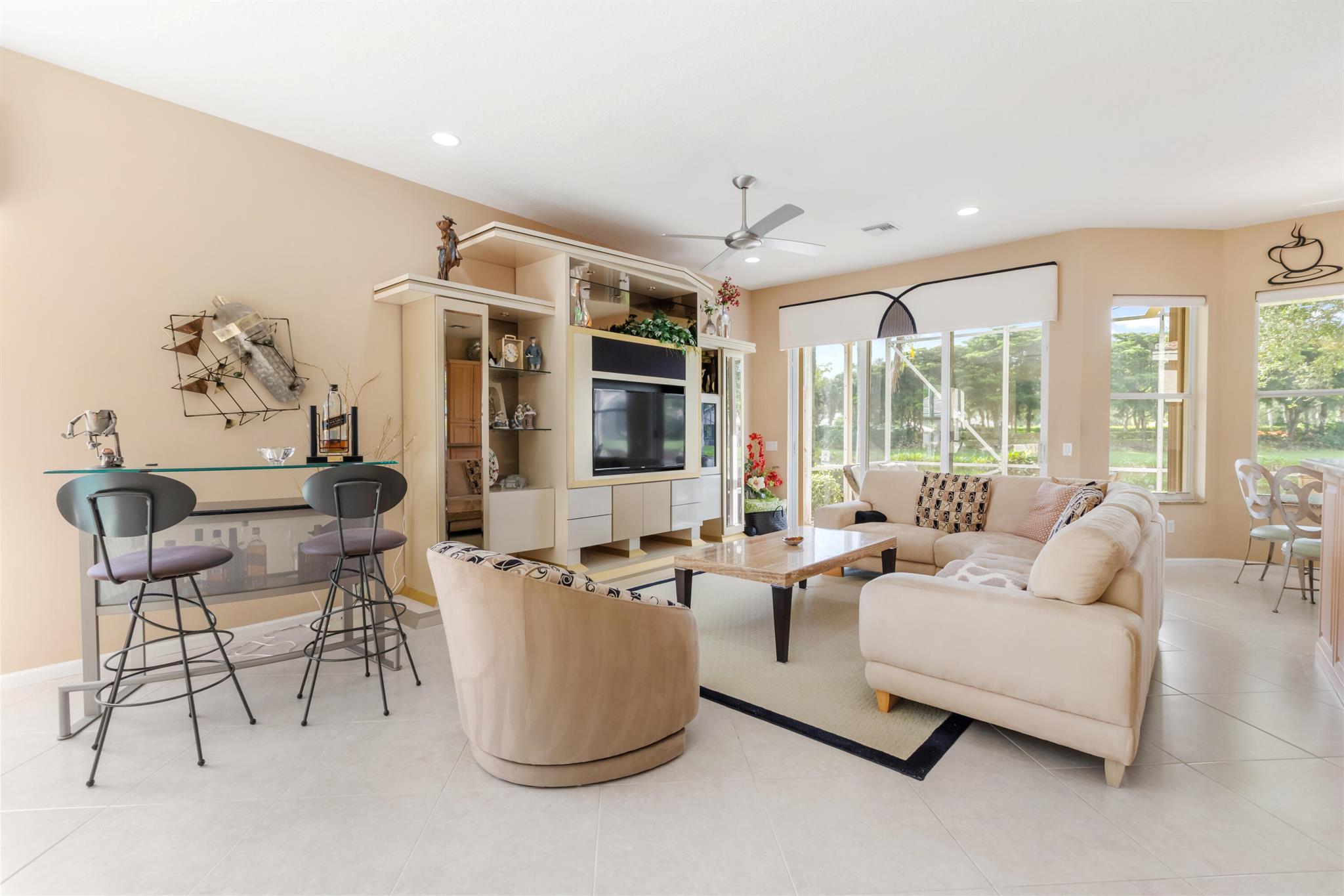 Welcome to this meticulously maintained 3-bedroom, 2-bathroom home with a spacious 2-car garage, located in the highly sought-after Valencia Shores community of Lake Worth. This one-owner home offers comfort, style, and peace of mind, featuring newer HVAC (2019) and new water heater (2024).Step inside to discover a bright and open layout that flows effortlessly into a large, screened-in patio--perfect for relaxing or entertaining--while enjoying tranquil lake views. Offered furnished, this home is move-in ready with tasteful finishes throughout.Valencia Shores is a premier active adult community offering resort-style amenities, including pools, tennis, pickleball, fitness center, cafe, and more.