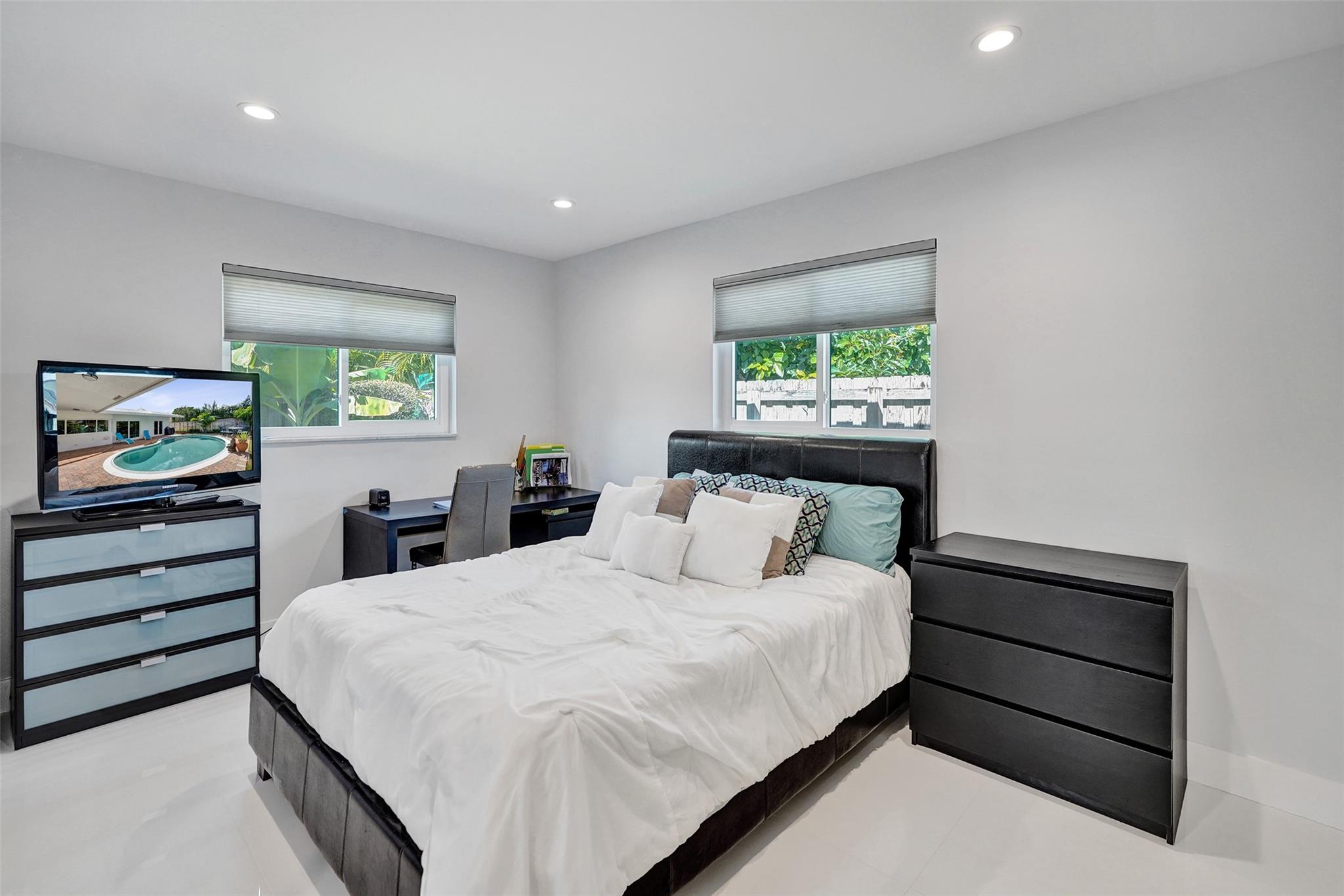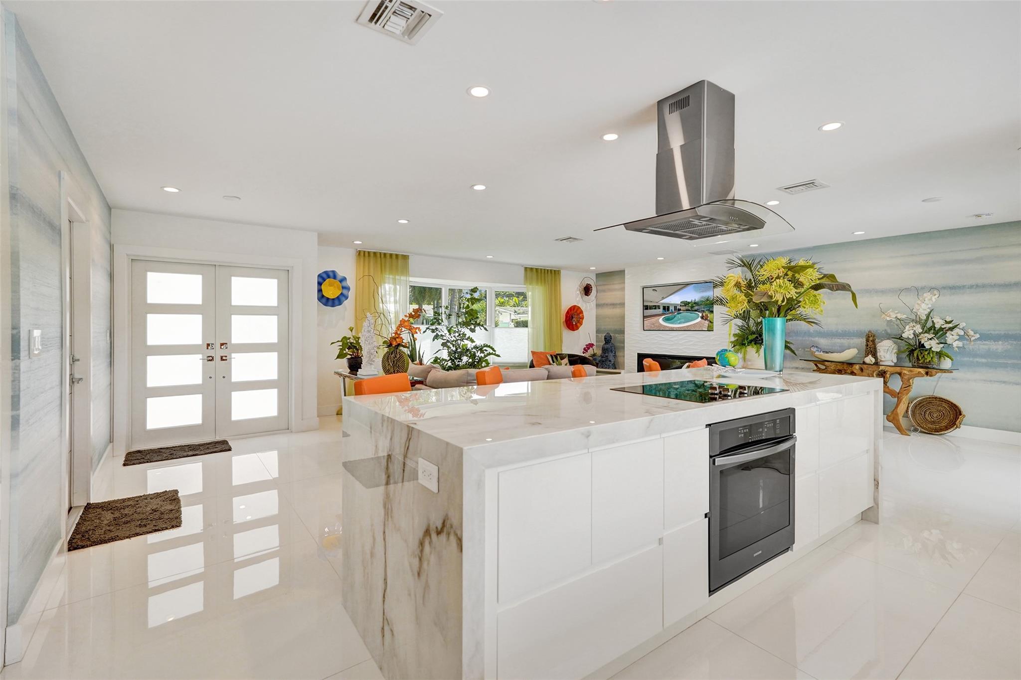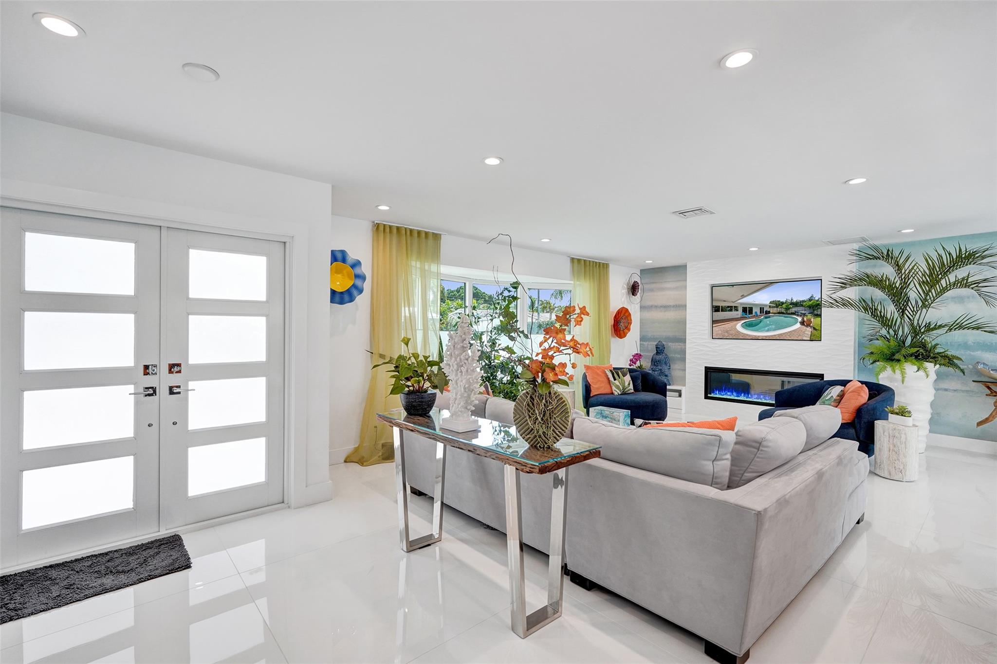 Gorgeous Imperial Point Renovation! This expansive estate home features 4 spacious bedrooms & 3 beautifully appointed bathrooms, including a versatile In-Law/Teen/Rental Suite with private exterior access & kitchenette. Complete interior update in 2021 included open living/kitchen layout with huge island, porcelain waterfall countertops, all bathrooms, white porcelain floors, Philip Jeffrey custom textured wallpaper, custom lighting, AC, electrical, & PVC drainage plumbing. California Closets & custom storage throughout. All impact windows/doors, roof was just professionally cleaned, sealed, & painted. Fresh landscaping front & back, mature Mango tree, auto well irrigation! Large garage with epoxy flooring + even more storage. Sonos, FRAME TV, and portable generator included in sale.