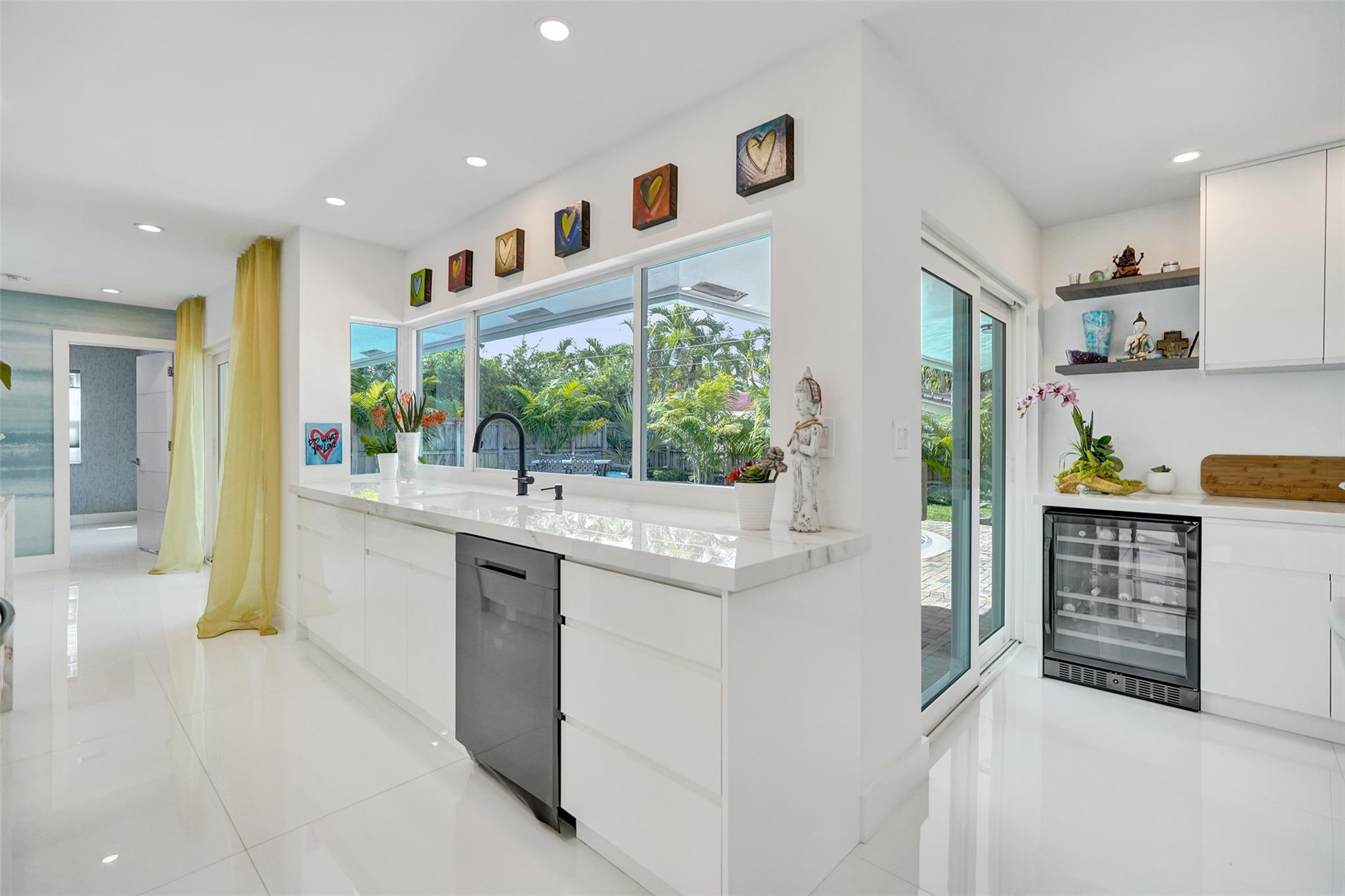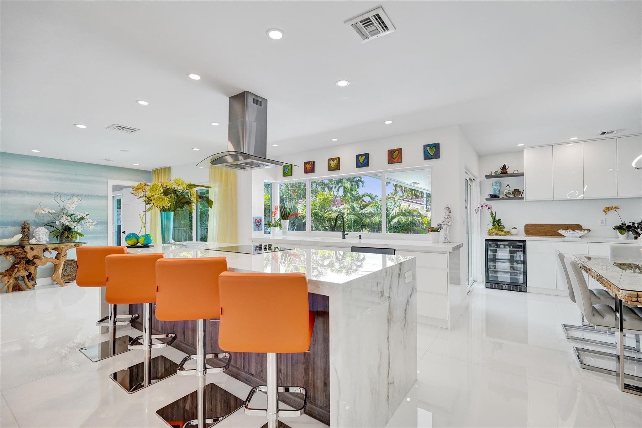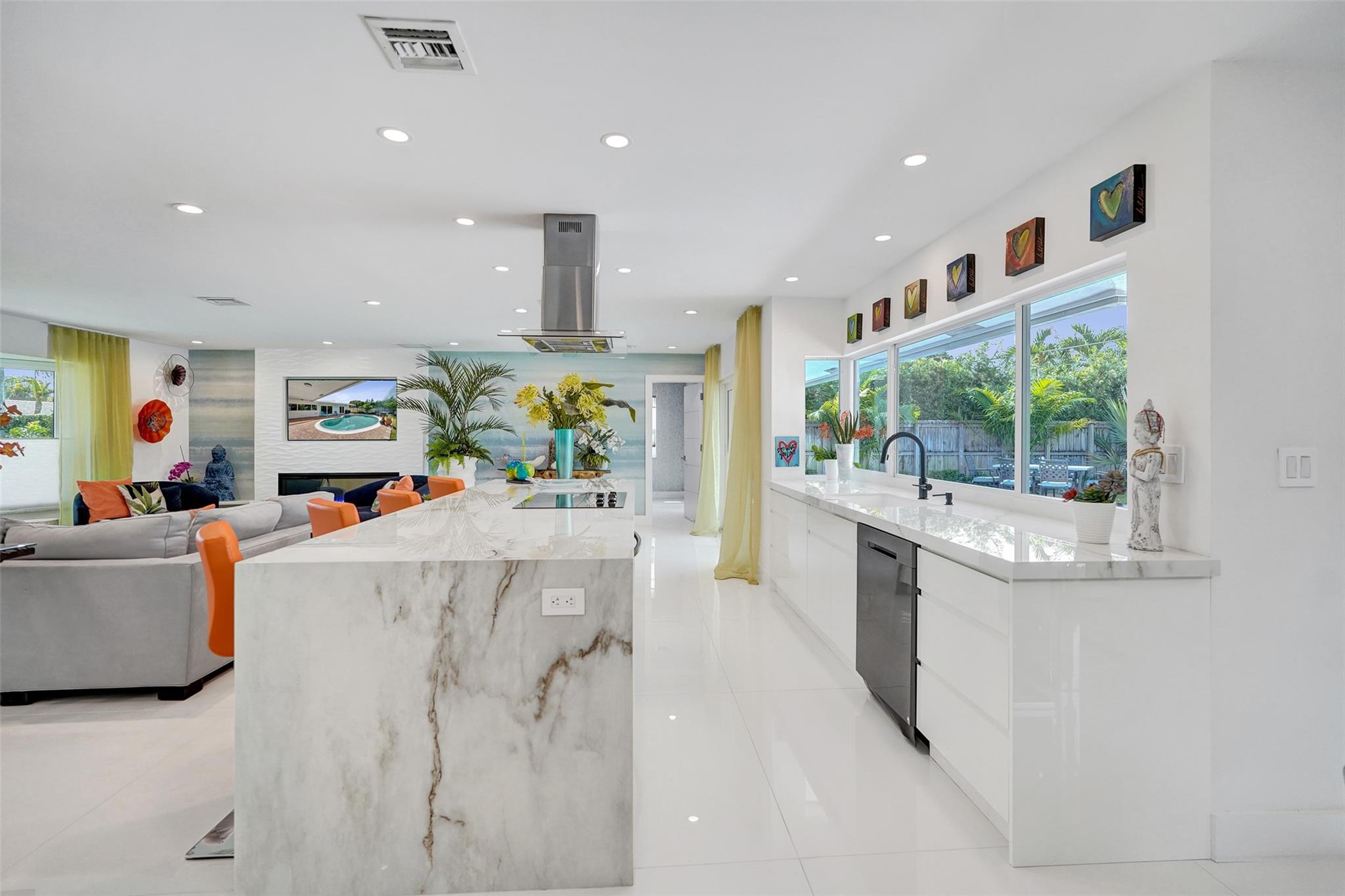 Gorgeous Imperial Point Renovation! This expansive estate home features 4 spacious bedrooms & 3 beautifully appointed bathrooms, including a versatile In-Law/Teen/Rental Suite with private exterior access & kitchenette. Complete interior update in 2021 included open living/kitchen layout with huge island, porcelain waterfall countertops, all bathrooms, white porcelain floors, Philip Jeffrey custom textured wallpaper, custom lighting, AC, electrical, & PVC drainage plumbing. California Closets & custom storage throughout. All impact windows/doors, roof was just professionally cleaned, sealed, & painted. Fresh landscaping front & back, mature Mango tree, auto well irrigation! Large garage with epoxy flooring + even more storage. Sonos, FRAME TV, and portable generator included in sale.