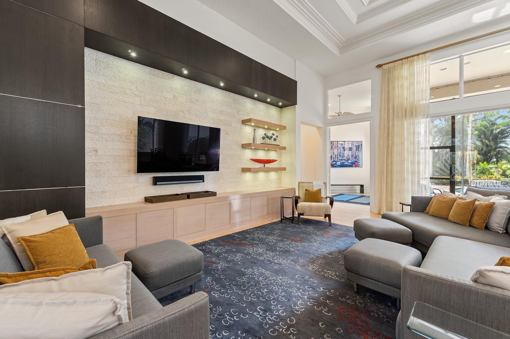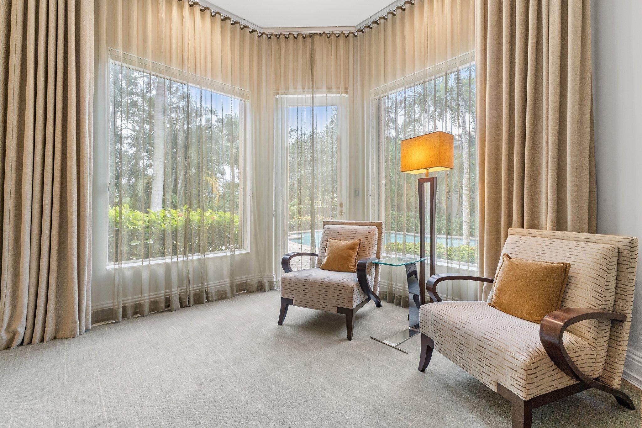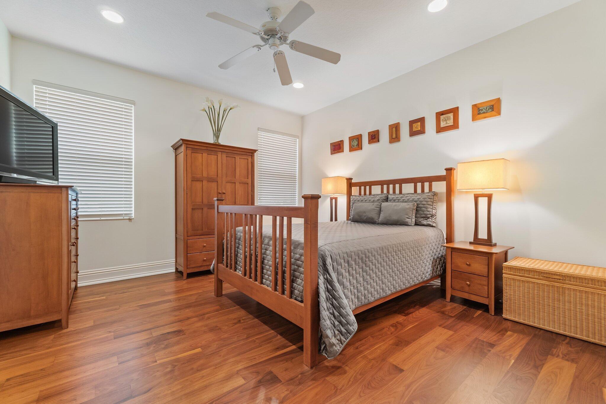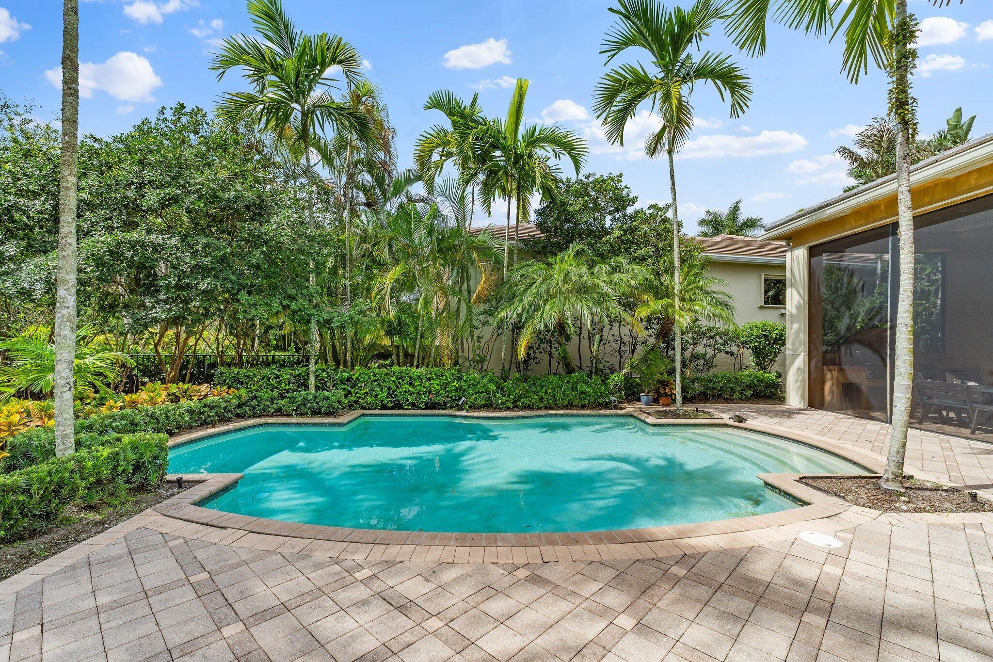 Beautiful single-story home on desirable Via Paradisio in Mirasol Country Club, a short walk to all of the club's amenities (including soon-to-open indoor pickleball facility) and a quick drive to the community entrance/exit. This immaculate Bernini II floorplan has over 3,000 SF of living space boasting a light-filled great room, 3 bedrooms plus an office, 4.5 bathrooms, formal dining/bonus room, a 2.5 car garage, and a new roof (2024). Upon entry, you'll be greeted by an expansive foyer with beautiful architectural archways, custom stained glass impact door, a 24-foot ceiling, and garden views on display through the wall of windows on the back of the house. The entertaining space features an open-concept kitchen with island bar seating, eat-in kitchen area, and seamless