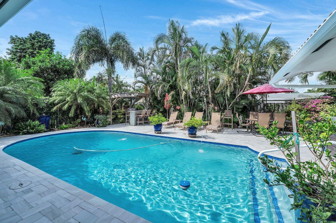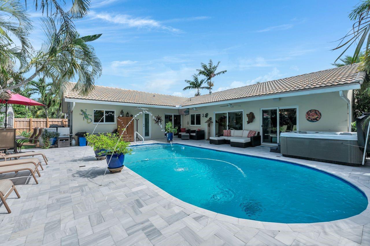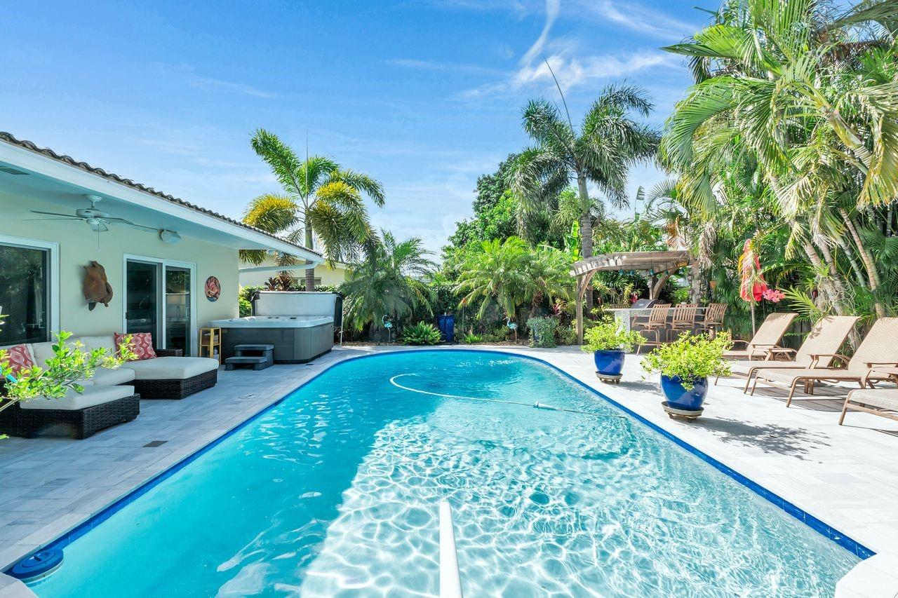 Experience resort-style living in this stunning 4-bedroom, 2-bath home perfectly located in vibrant Fort Lauderdale. Designed for comfort and entertainment, this residence features 1,894 sf with separate living and dining area, a gorgeous Chef Galli kitchen with premium finishes ideally for cooking, complemented by high-impact windows and sliding doors that enhance both style and security. Enjoy the ultimate outdoor retreat with a Diamond Brite finished and heated pool, relaxing hot tub, outdoor shower, and a stylish bar and BBQ area ideal for entertaining. Surrounded by lush tropical landscaping, this home offers a perfect blend of luxury, privacy, and relaxation. Also, a double car garage, large utility laundry room, generator hook up, completely fenced your private paradise awaits.