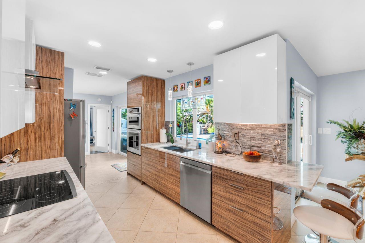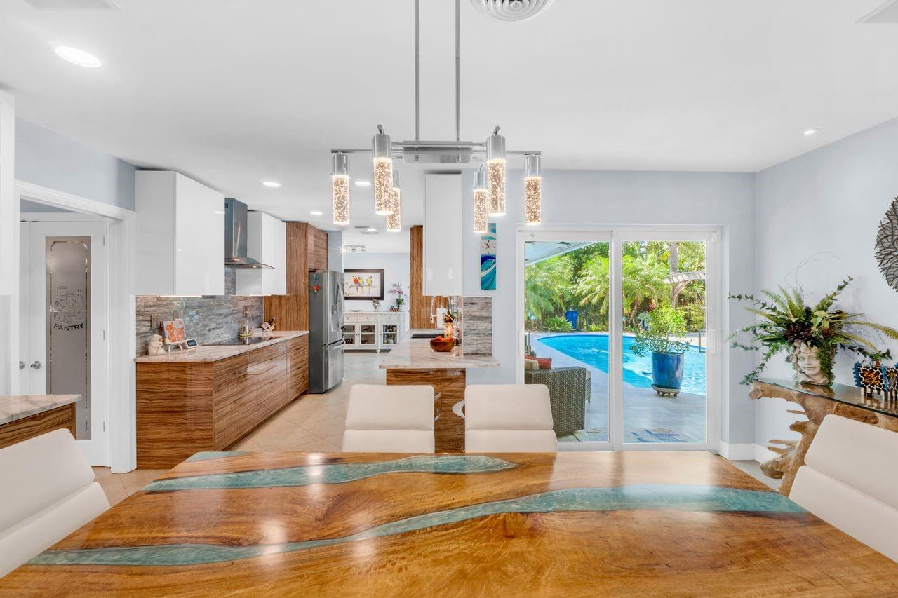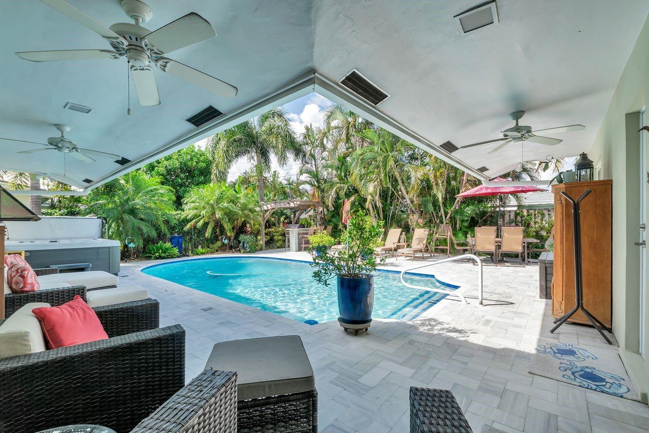 Experience resort-style living in this stunning 4-bedroom, 2-bath home perfectly located in vibrant Fort Lauderdale. Designed for comfort and entertainment, this residence features 1,894 sf with separate living and dining area, a gorgeous Chef Galli kitchen with premium finishes ideally for cooking, complemented by high-impact windows and sliding doors that enhance both style and security. Enjoy the ultimate outdoor retreat with a Diamond Brite finished and heated pool, relaxing hot tub, outdoor shower, and a stylish bar and BBQ area ideal for entertaining. Surrounded by lush tropical landscaping, this home offers a perfect blend of luxury, privacy, and relaxation. Also, a double car garage, large utility laundry room, generator hook up, completely fenced your private paradise awaits.
