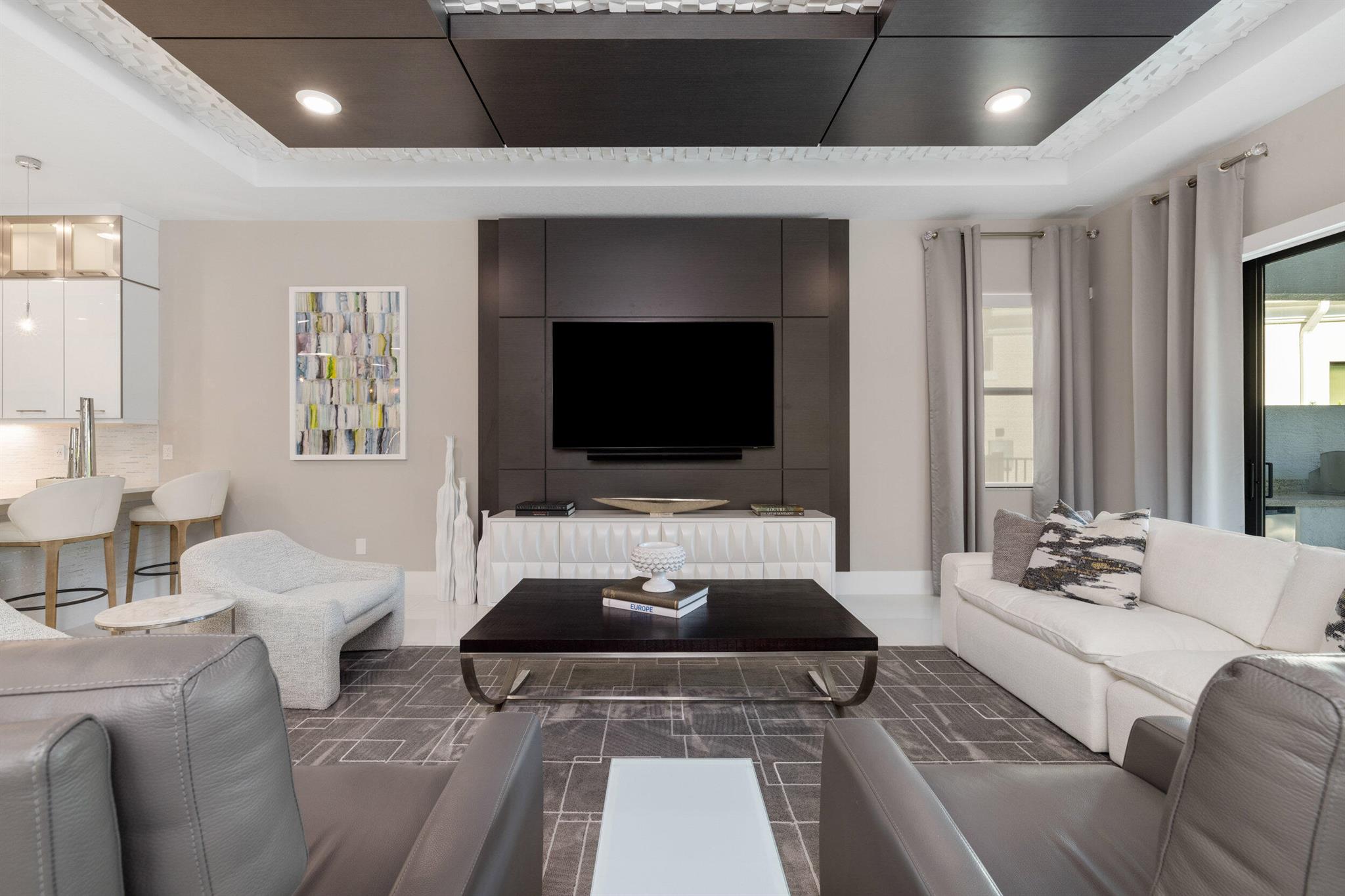 Artistry is a gated, newly built luxury single-family community offering contemporary styled homes, high end finishes and resort-style amenities. It provides a clubhouse, resort pool & cabanas, fitness centre, playground, walking trails, and sports areas. This move-in ready 3-Bed/3/5 bath + lakeview home is located just minutes from top schools, fantastic beaches and shopping. Upscale dining nearby and easy airport access. Spend winters golfing, summers by the pool, and enjoy a lock-and leave lifestyle. Furnished and flooded with light, modern updates, open living room with gorgeous white porcelain tile floors and an amazing backyard not many others feature in the community.