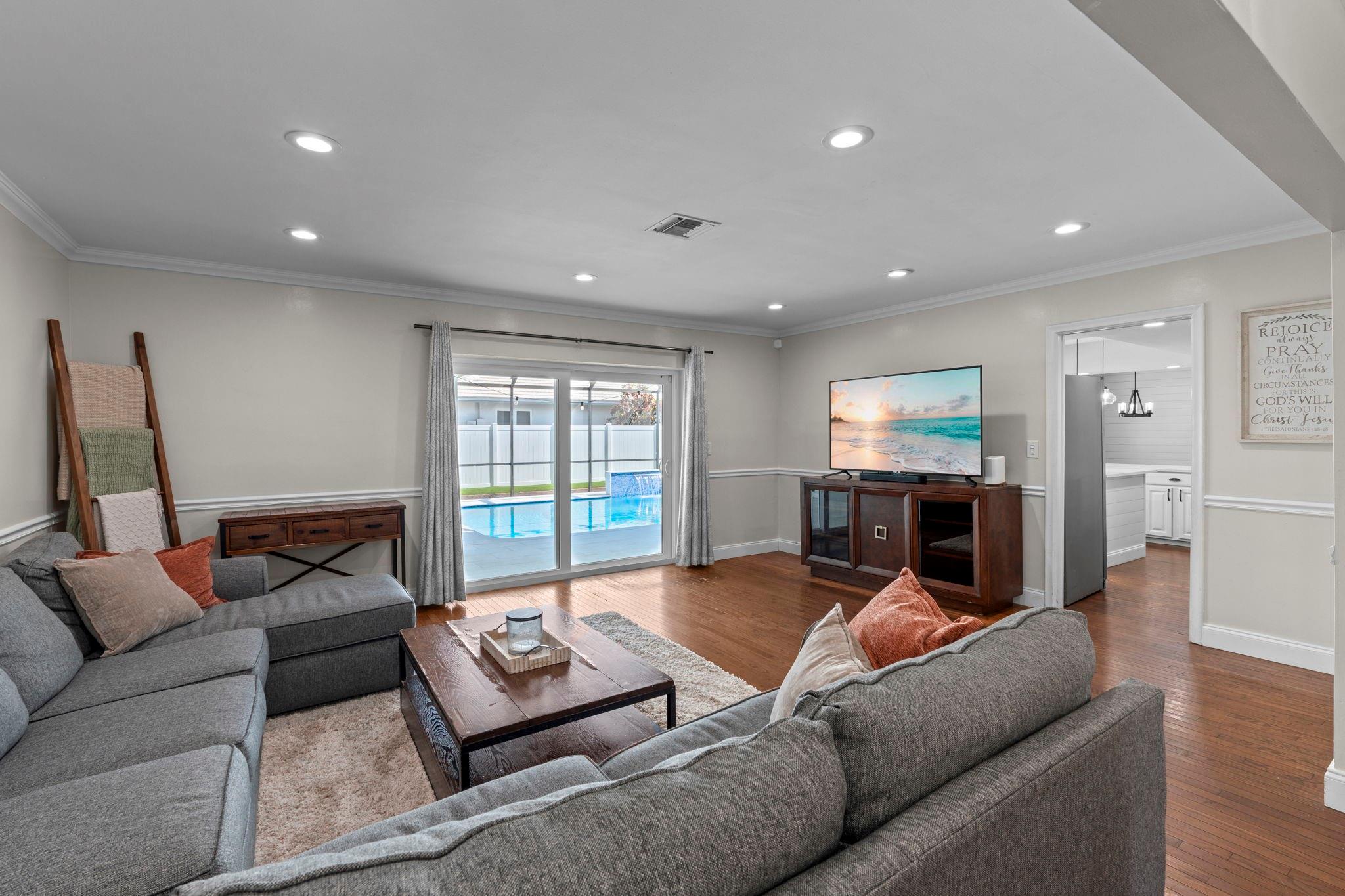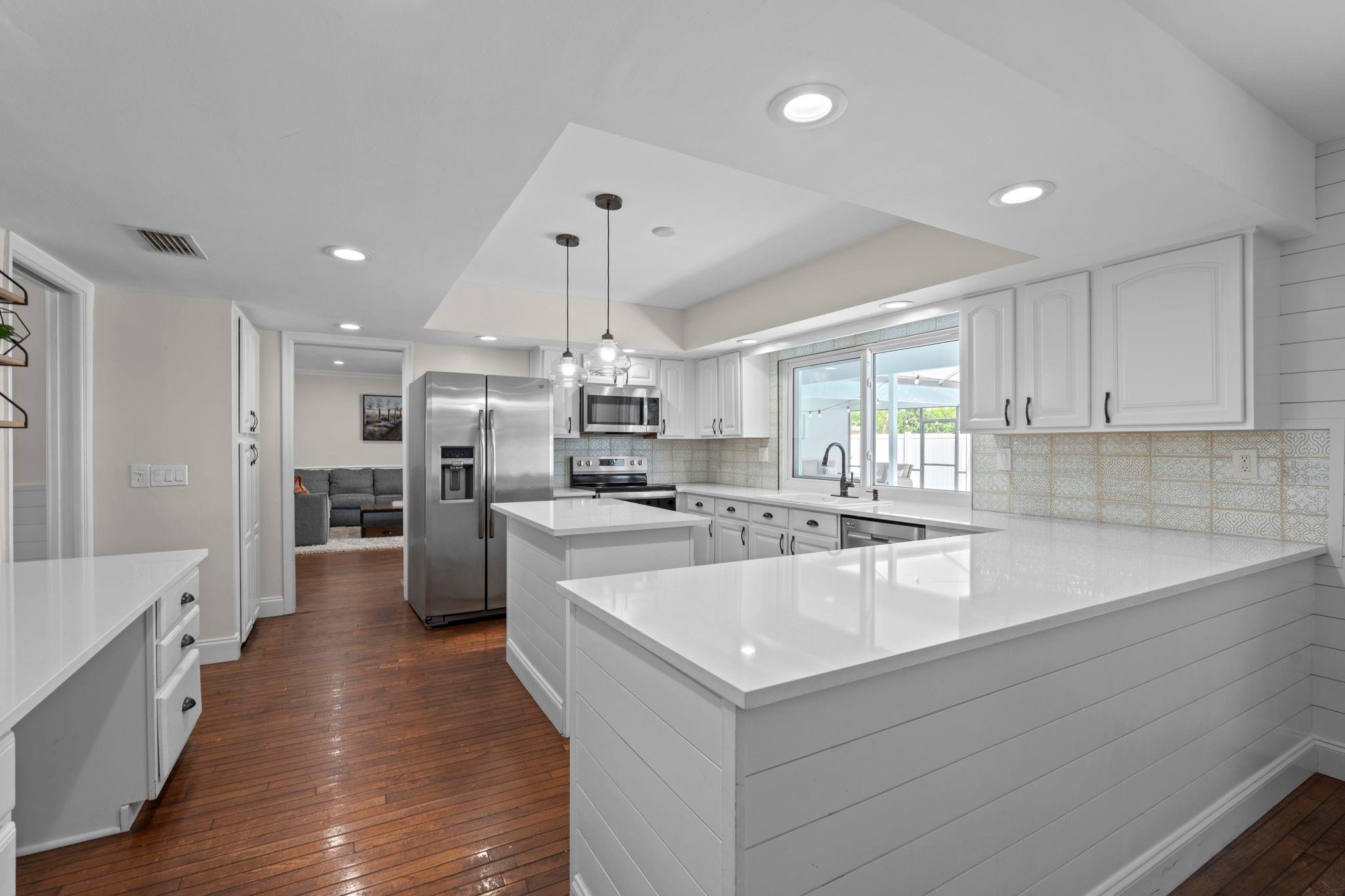 Updated Corner Lot 5 Bed 2.5 Bath Pool Home with an Oversized 2 Car Garage and Two Driveways in the Prestigious Gated Community of El Dorado Estates. Features a 2018 Tile Roof, Complete Impact Windows/Doors (2020), Full PVC Plumbing Throughout (2021), Newer AC (2020), Remodeled Bathroom, Plantation Shutters, New Sprinkler System with WiFi Timer, Hardwood Flooring throughout the Spacious Living Areas and an Updated Kitchen with Quartz Countertops, Stainless Steel Appliances, Center Island and Pantry. Enjoy Tropical Outdoor Living with a Recently Resurfaced and Heated Pool, New Surrounding Pavers and a Screened Patio Enclosure. El Dorado offers a Clubhouse, Playground, Community Park, Pickleball and Tennis Courts. Ideally Located near Top-Rated Schools, Plantation Walk and Major Highways.