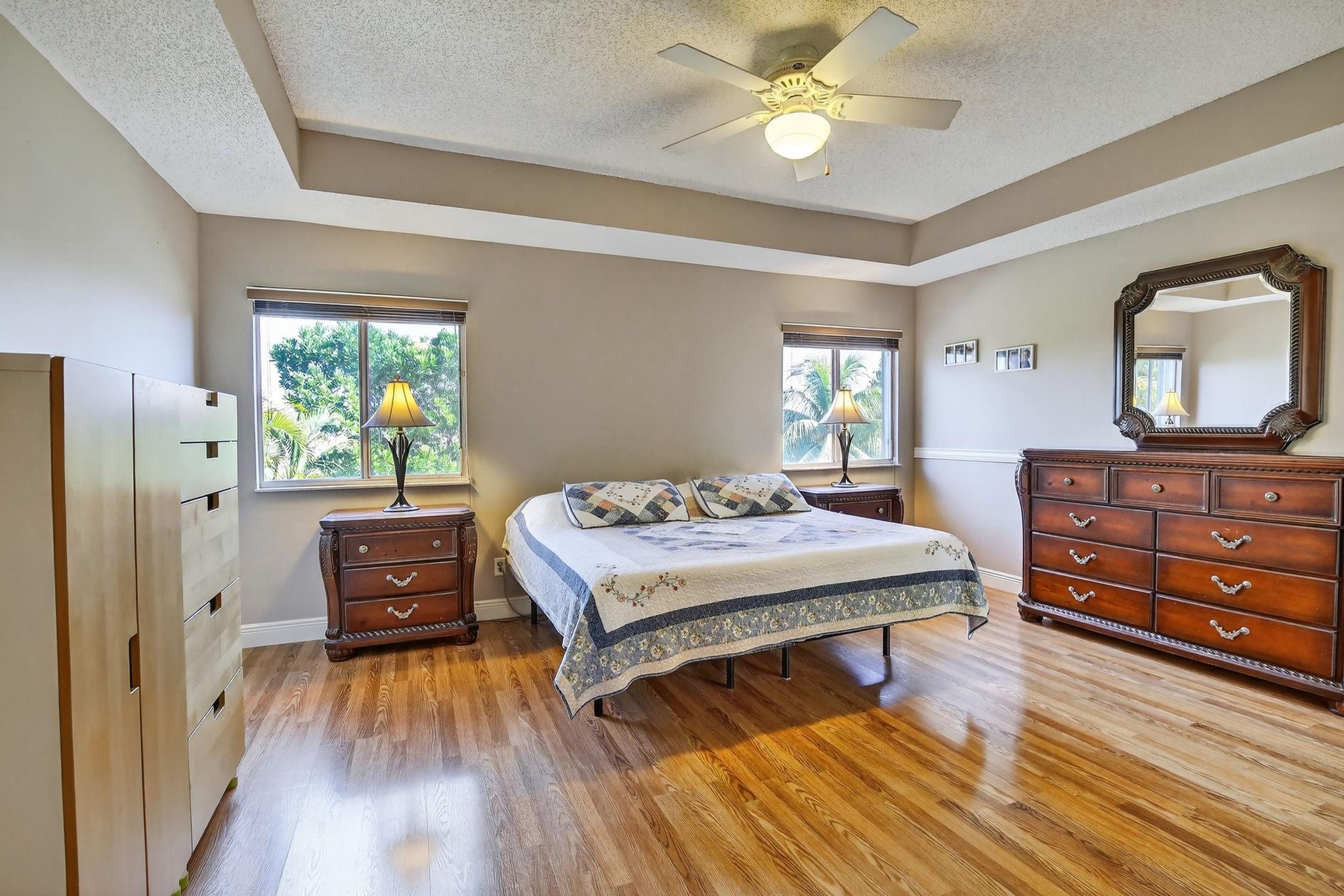 Rare DelMar Model in Laguna Isles! Beautifully updated 5 bed 3.5 bath, 2-sty home with over 2,500 sqft in sought-after Laguna Isles. This unique model offers a side-load garage and a builder-optioned addition, adding 2 extra bedrooms and a full bath for a spacious, flexible layout. The upgraded kitchen features crowned wood cabinets, granite counters, stainless appliances, and natural gas cooking and water heater. The dining room and primary bedroom showcase tray ceilings, and large windows fill the home with natural light. Enjoy wood and tile floors throughout, updated baths, and a freshly painted interior. Outdoor highlights include a screened, covered patio, paver brick driveway and patio, plus accordion shutters. A rare opportunity to own one of Laguna Isles’ most desirable floor plans