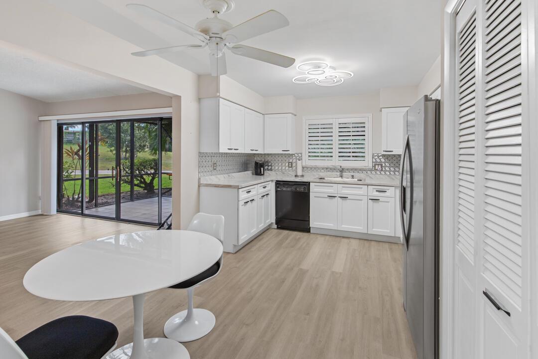 Welcome to this beautifully maintained 3-bed, 2-bath CBS home in the desirable Osprey Creek community of MDCC/West Villages. Features include cathedral ceilings, plantation shutters, and an open layout perfect for relaxed living and entertaining. The kitchen offers upgraded appliances, new cabinetry, and a designer backsplash, flowing into a bright dining area and wet bar. The spacious primary suite includes a walk-in closet and a modern, updated bath. Enjoy year-round outdoor living from the screened porch, surrounded by lush landscaping. Extras include accordion shutters, a 1-car garage, and an extended driveway fitting 5-6 vehicles. Close to A-rated schools, golf, shopping, dining, I-95, and the Turnpike. Leases allowed 2X a year. no waiting period