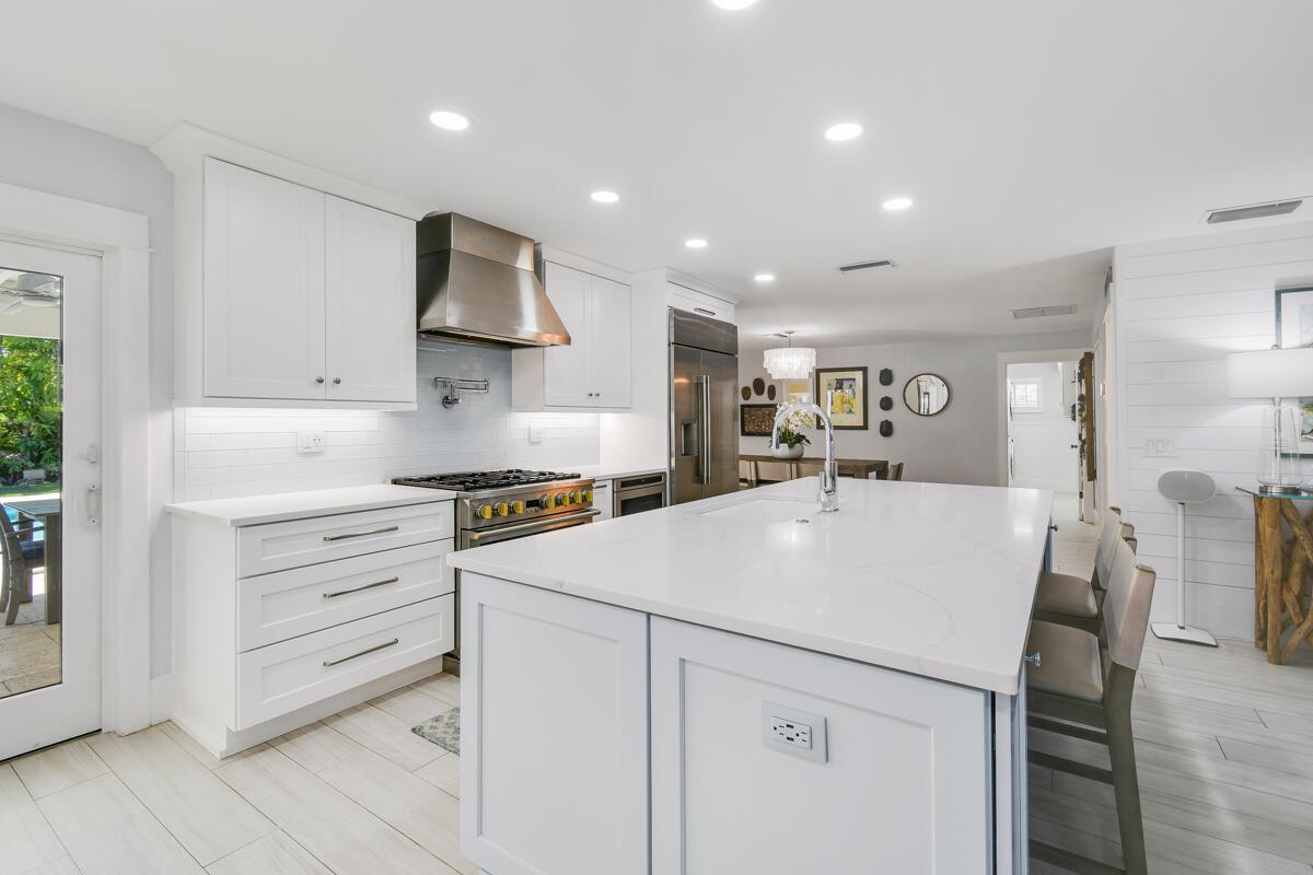 Here's a quick peek at this stunning home in the highly sought-after Bermuda Terrace boating community: 4 BR, 2.5 BA, 2-car garage. Built with solid CBS construction and a durable metal roof, this 2,289 sq ft under air (3,417 total sq ft) home is light, bright, and island-inspired, featuring high-end finishes throughout. The expansive 40x20 lanai overlooks a resurfaced Bahamian blue pool and an ultra-private turf backyard with putting and chipping greens--perfect for relaxing or entertaining. The custom gourmet kitchen boasts Monogram appliances, including a 36'' dual fuel range, 42'' built-in refrigerator, microwave drawer, butler's pantry, pot filler, and large island with seating and tons of storage. Additional highlights include a whole-house generator, impact windows, & lush tropical