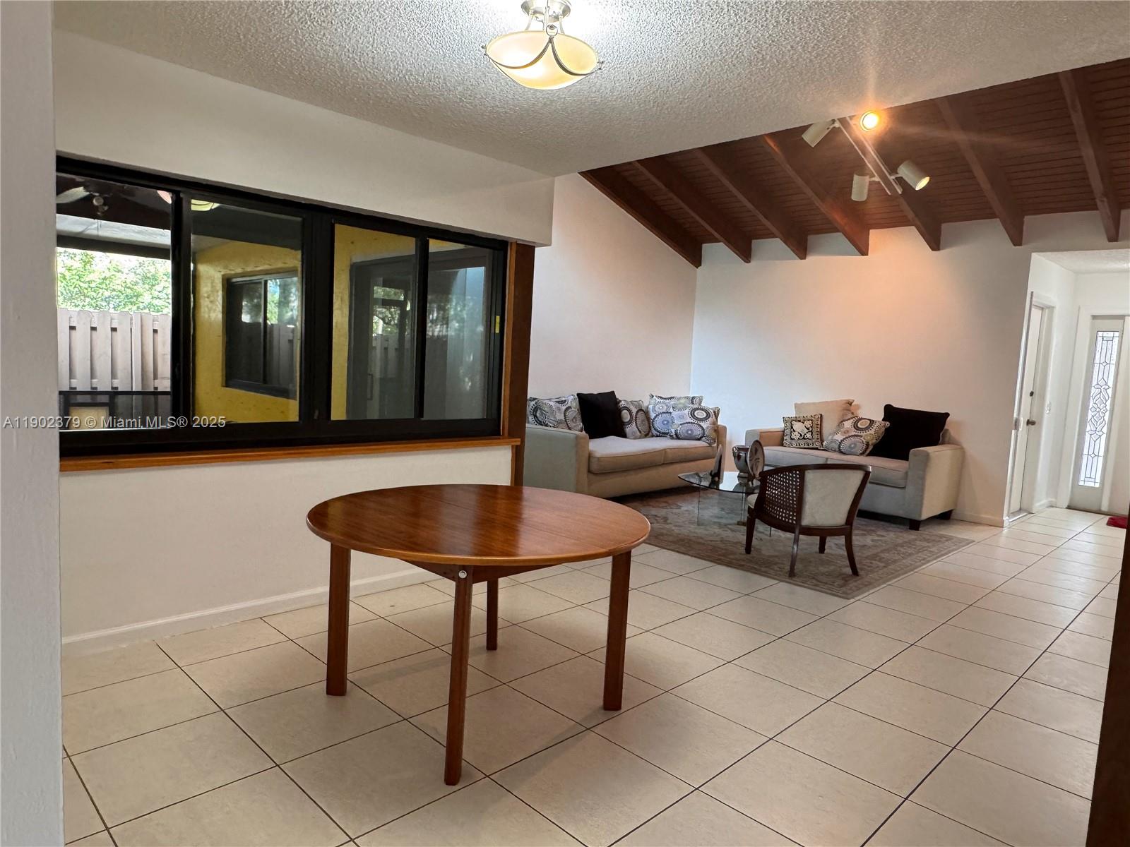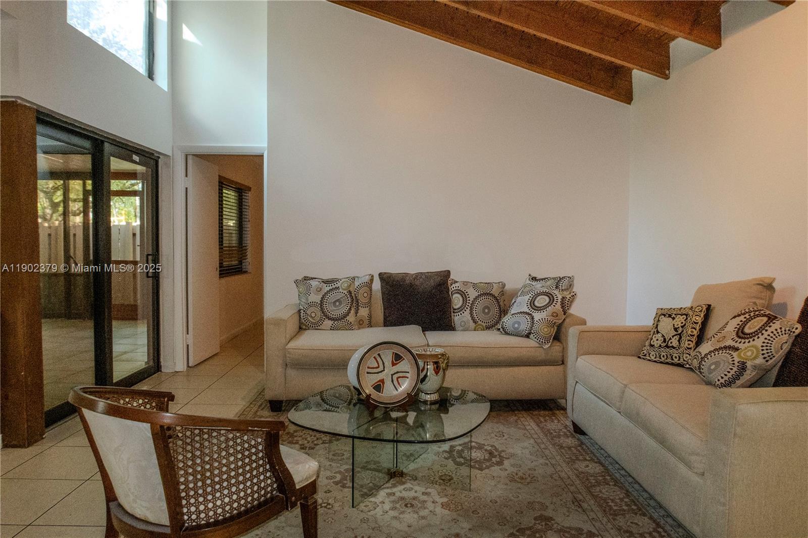Estate sale! Gorgeous 3-bedroom Crossings 1-story that is currently 2 bedrooms/2 baths w/the 3rd bedroom used as a den/family room w/fireplace off the enlarged beautiful upgraded kitchen. High wood-beamed ceilings. New roof - only a few weeks old. Split exquisite master suite for privacy. Remodeled with all impact glass windows & doors that bring the beauty of the outside in. Freshly painted. All white & bright. Fantastic large screened covered patio for entertaining. All tiled throughout. 1 car garage. Inspections have been completed & this home is move-in ready. Large greenbelt behind. Walk to satellite pool & playground. Enjoy the Crossings Country Club amenities w/ Olympic heated pool, pickleball/tennis, huge park. Publix/CVS shopping center within complex. Priced right to sell fast!