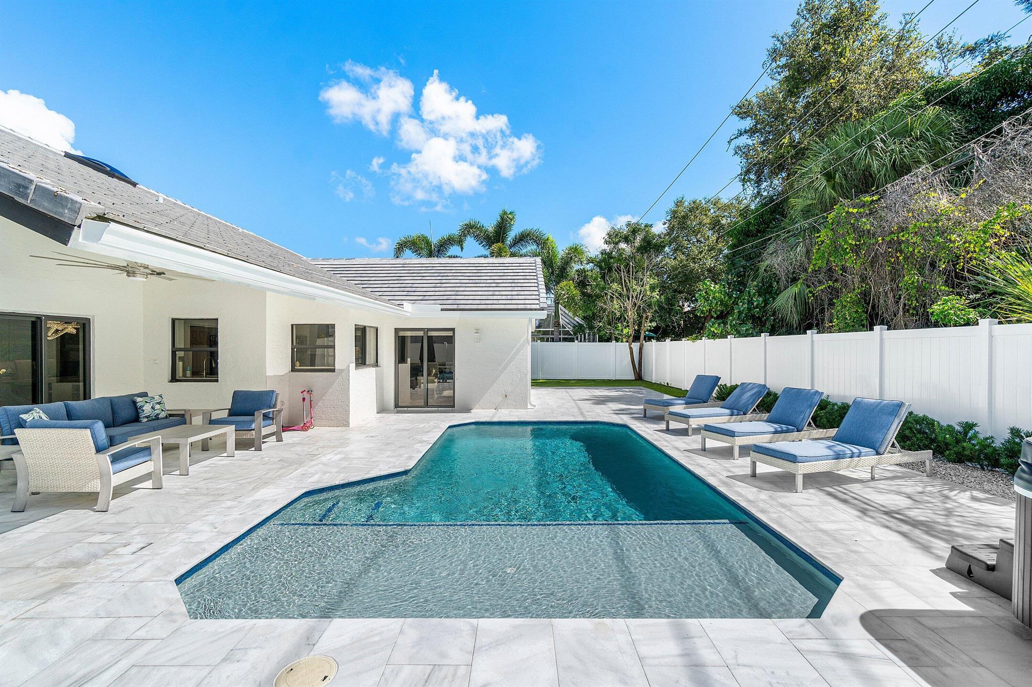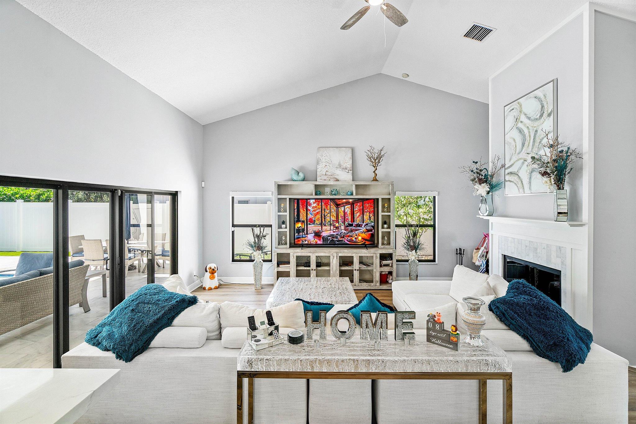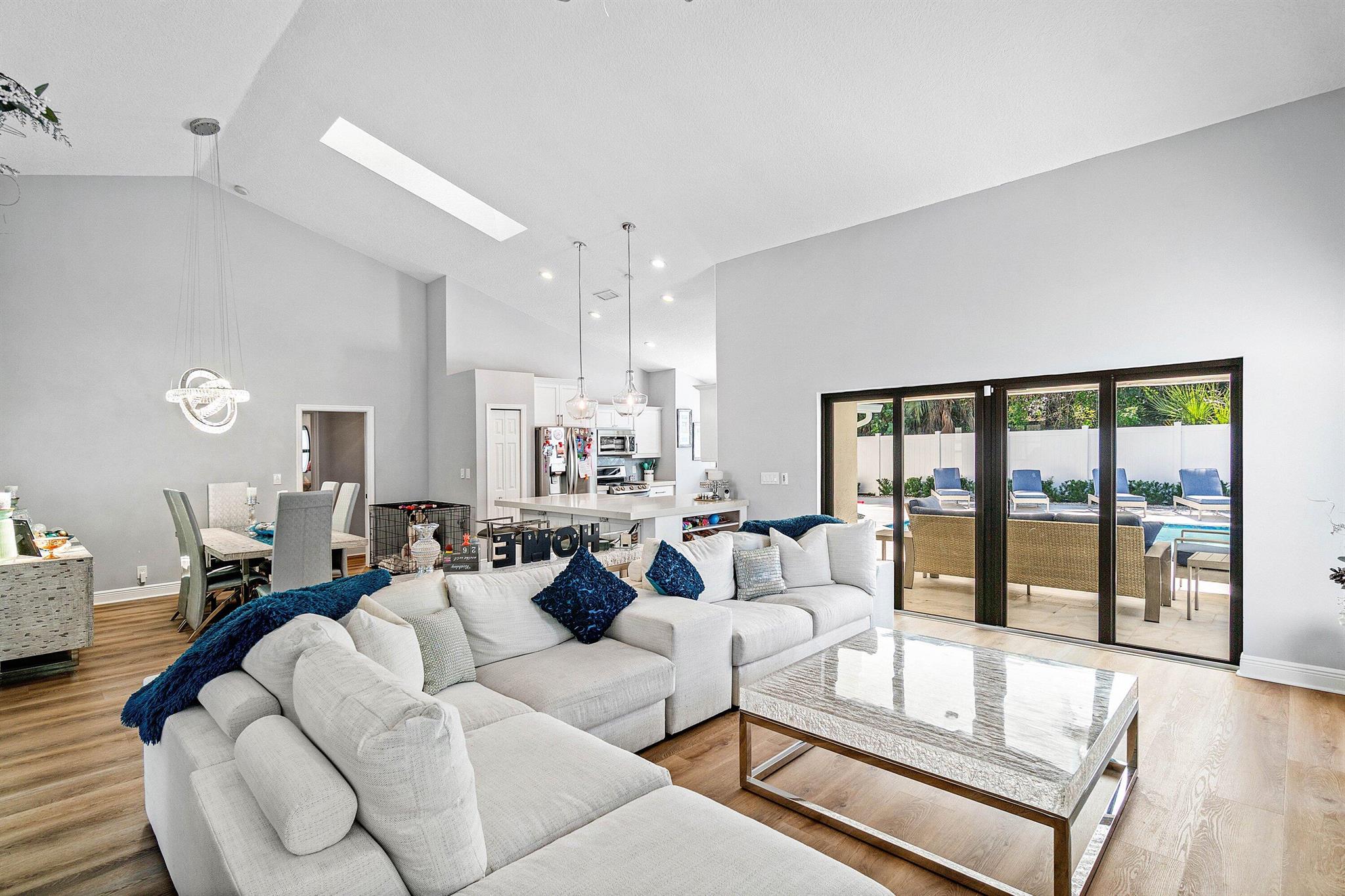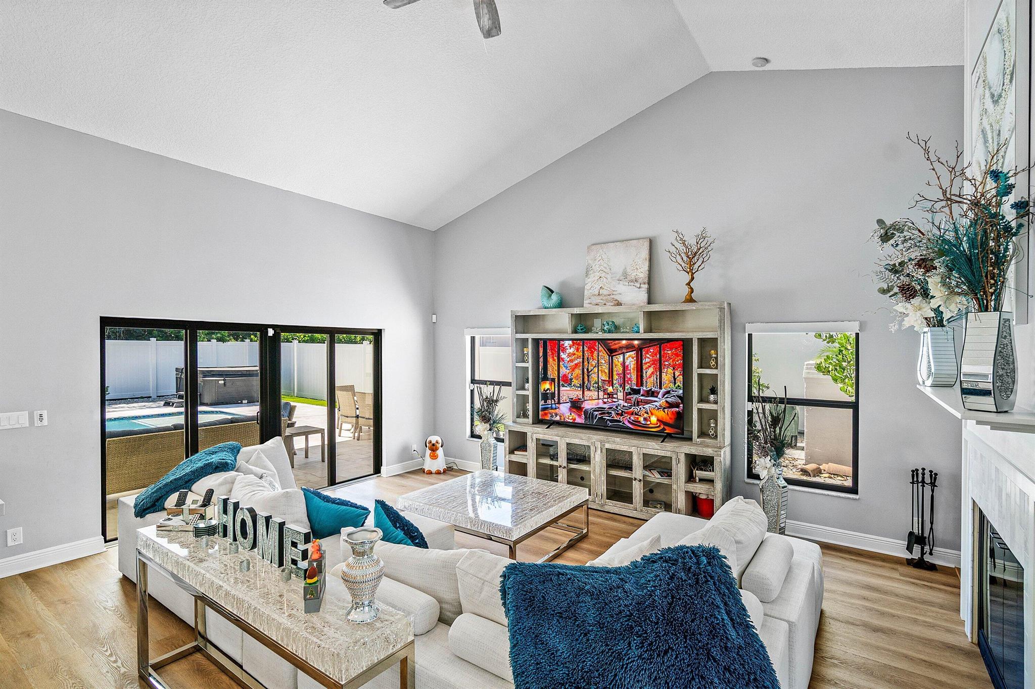 Boca Raton Square Perfection! Completely updated and loaded with upgrades, this immaculate 4-bedroom, 2.5-bath home perfectly combines style, comfort, and functionality. Featuring a bright open floor plan with vaulted ceilings in the living, dining, family, and primary bedroom areas, the home is designed for both everyday living and entertaining. The all-white kitchen is the heart of the home -- equipped with high-end stainless steel appliances, ample cabinetry, and a large island ideal for meal prep and gathering. Thoughtfully selected flooring adds warmth and character, while the spacious bathrooms offer a refined, spa-like experience. Step outside to your private backyard oasis, complete with a sparkling pool with large swim shelf, hot tub, and lush landscaping with new astroturf
