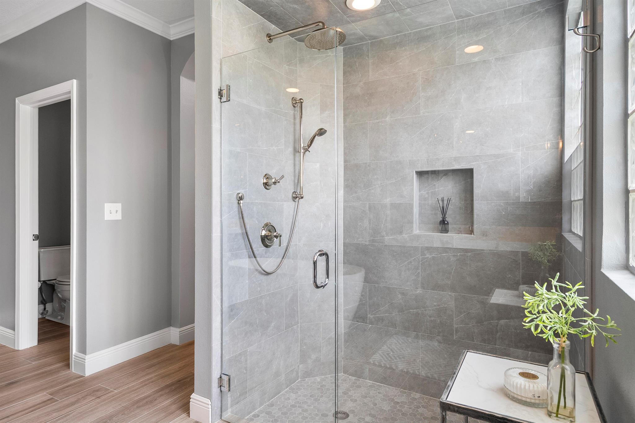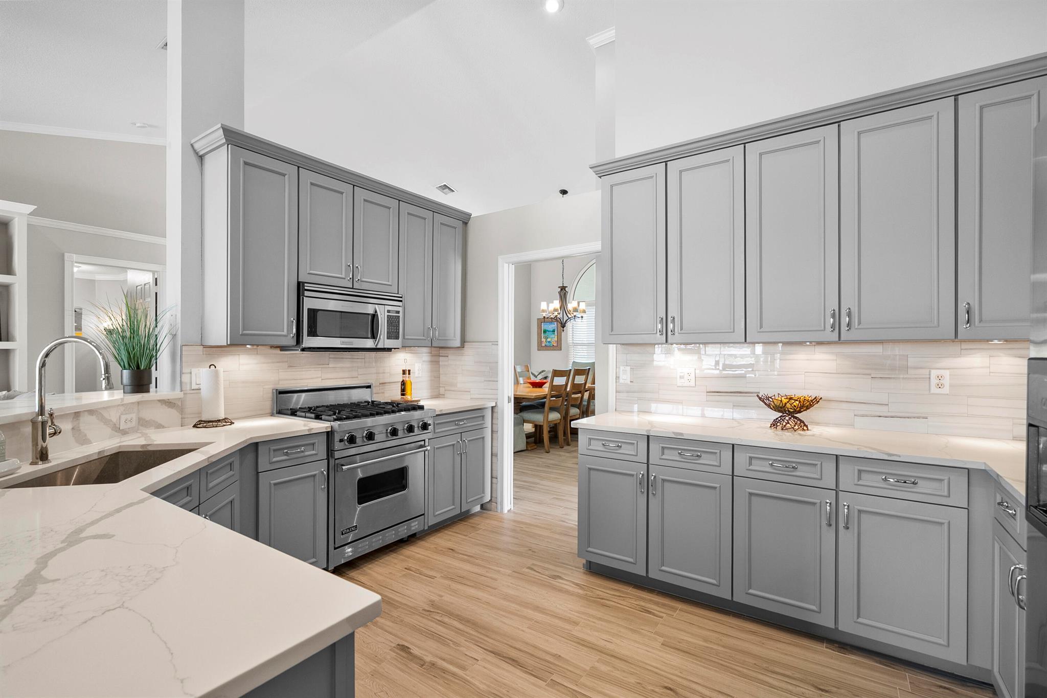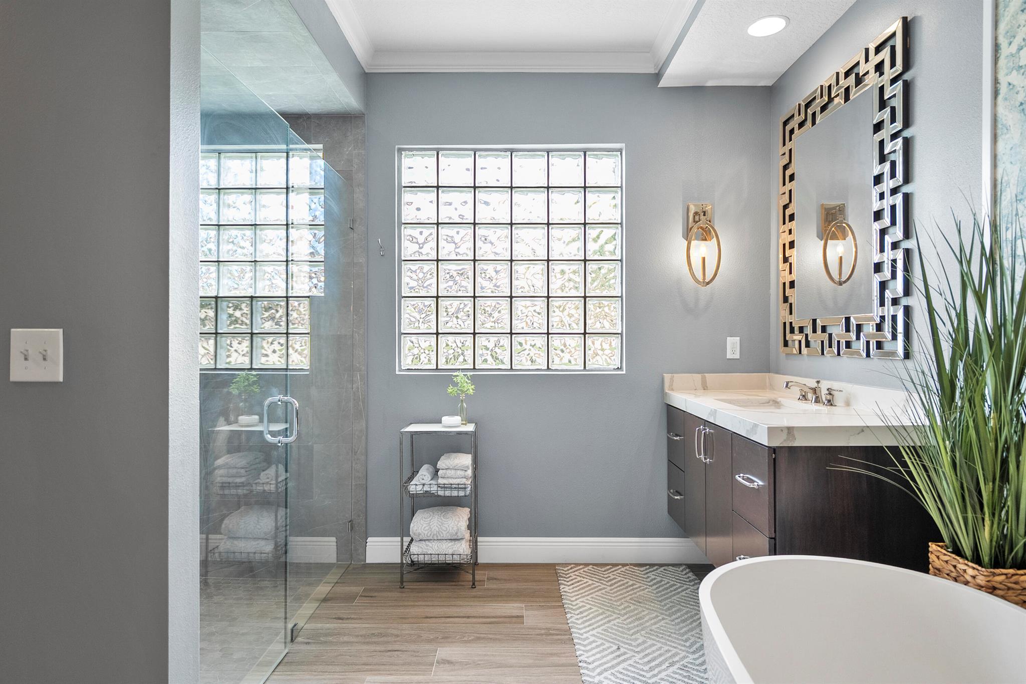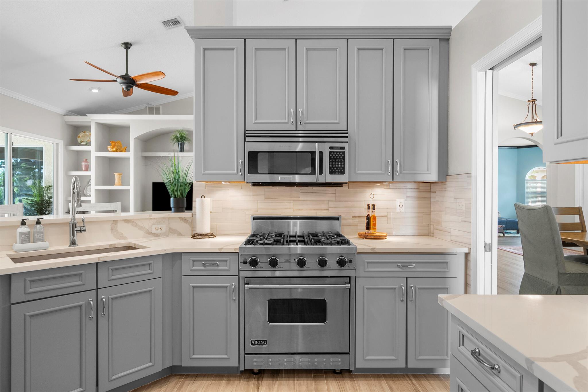 EXQUISITE 4-Bed/3-Bath + DEN Estate POOL HOME with Panoramic LAKE VIEWS and Breathtaking Sunsets. Experience RESORT-STYLE LIVING in this stunning, fully updated home that perfectly blends modern elegance with comfort. Step through the GRAND ENTRANCE into a space defined by SOARING CEILINGS, 8-FOOT DOORS, and freshly TILED FLOORS throughout. Your PRIVATE BACKYARD OASIS awaits--lush tropical landscaping, multiple gathering areas, an outdoor dining space, BUILT-IN GRILL and BAR, and a HEATED SALTWATER POOL--all overlooking the serene beauty of the lake. Inside, the GOURMET CHEF'S KITCHEN impresses with QUARTZ countertops, a professional-grade VIKING GAS RANGE, a butler's pantry, and a BEVERAGE FRIDGE. The SPA-INSPIRIED primary suite features a luxurious bathroom; SOAKING TUB, RAIN SHOWER...