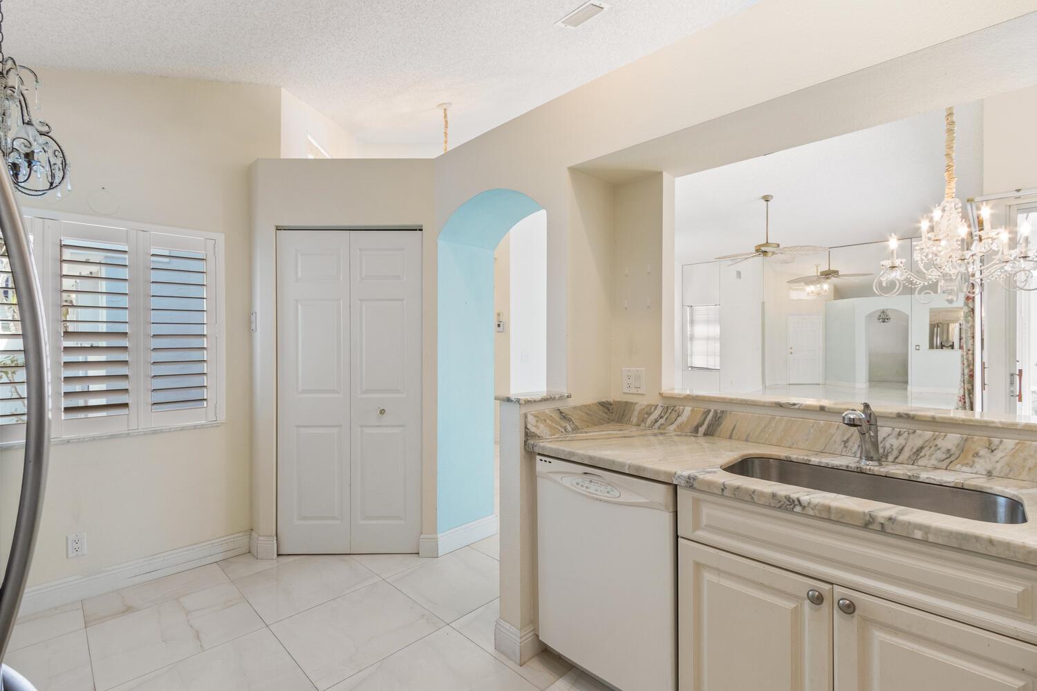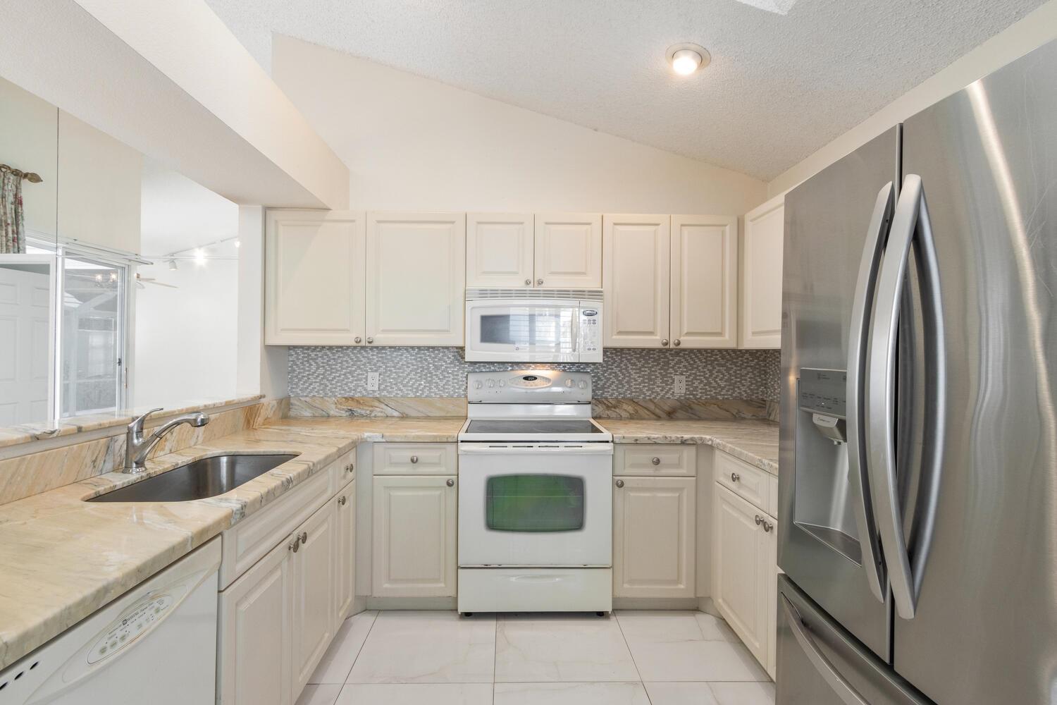 Discover the beauty of Barclay Club, nestled by a tranquil lake in PGA National Golf & Resort Community. This charming home features 3 bedrooms, 2 baths, and a 2-car garage, with access to a private community pool for residents. Upgrades from 2012-2013 include impact glass, hurricane shutters and elegant 20x20 ceramic tile floors in the living areas. Enjoy the extended, screened back patio with serene lake views, complemented by abundant natural light from windows, doors and skylights. With a low HOA fee and no mandatory golf membership, this home is ideal for both seasonal and year-round living.