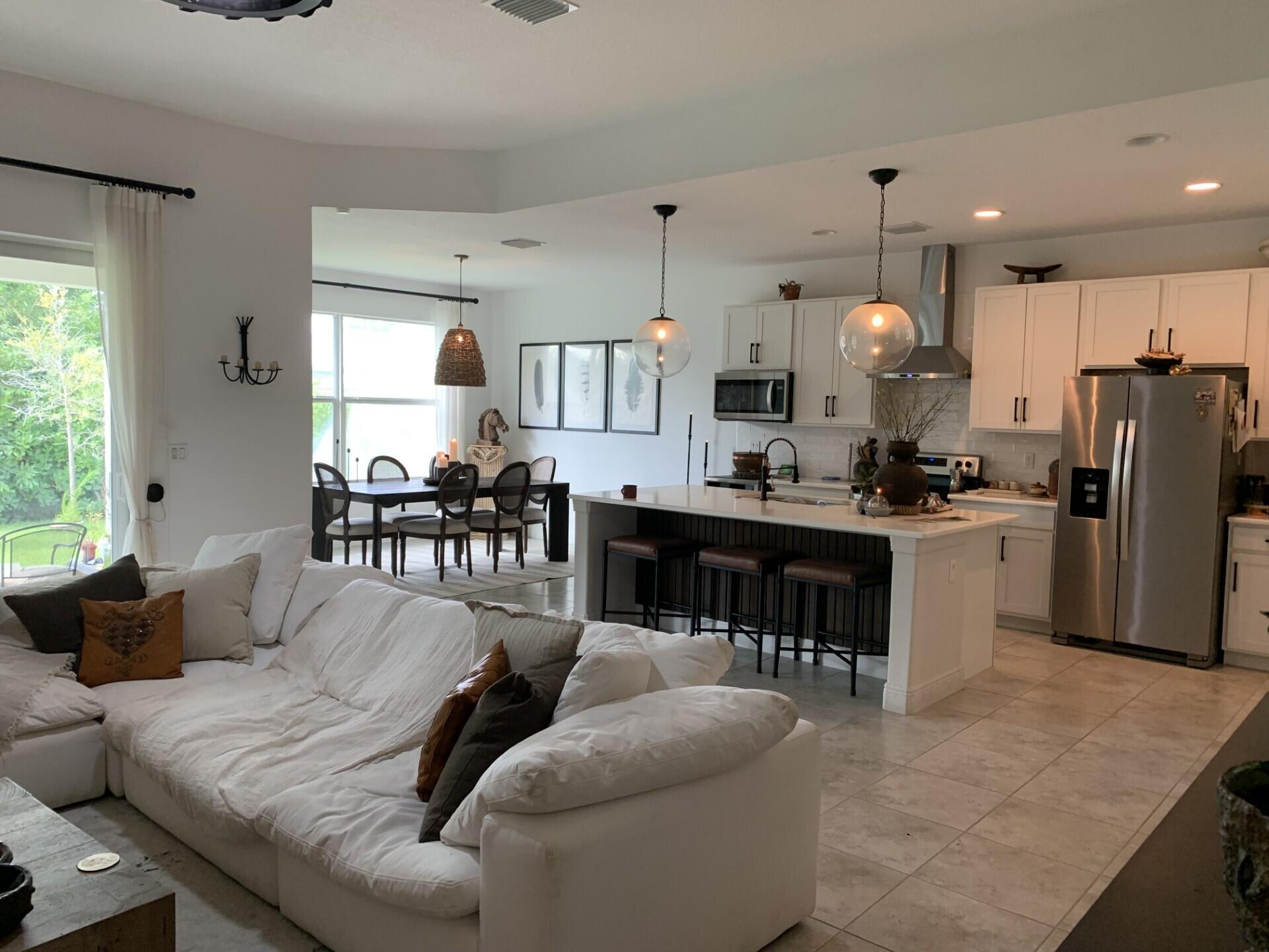 4/3/2 CBS home located in a desirable location close to schools, shopping, I95, turnpike, hospitals, Traditions, and local beaches. The home features tile throughout the main living areas, 12'' ceilings, hurricane impact windows, quartz countertops, s/s appliances, security system, sprinkler system on a separate well, gutters, paved driveway and patio, and the solar panels will be paid by the seller at closing. All of the appliances and the living room and master bedroom tv's convey. Don't miss this one!!