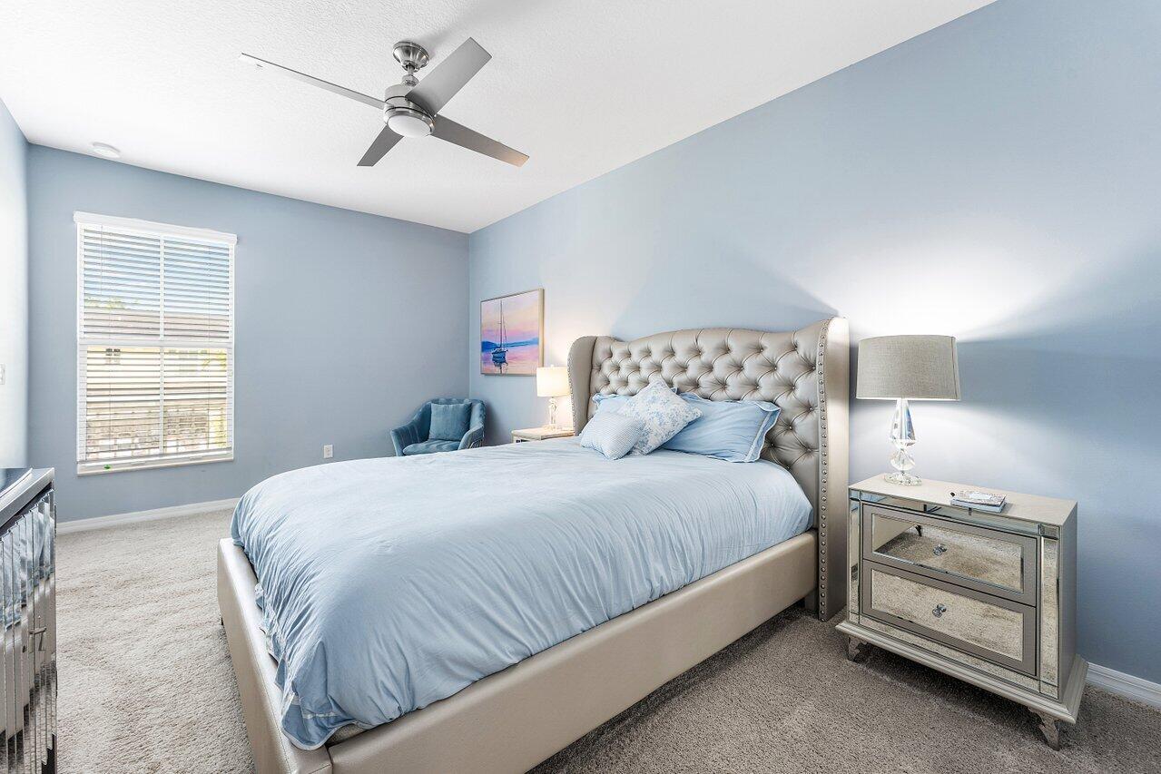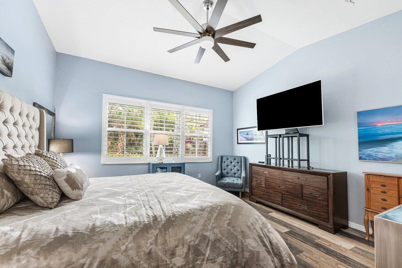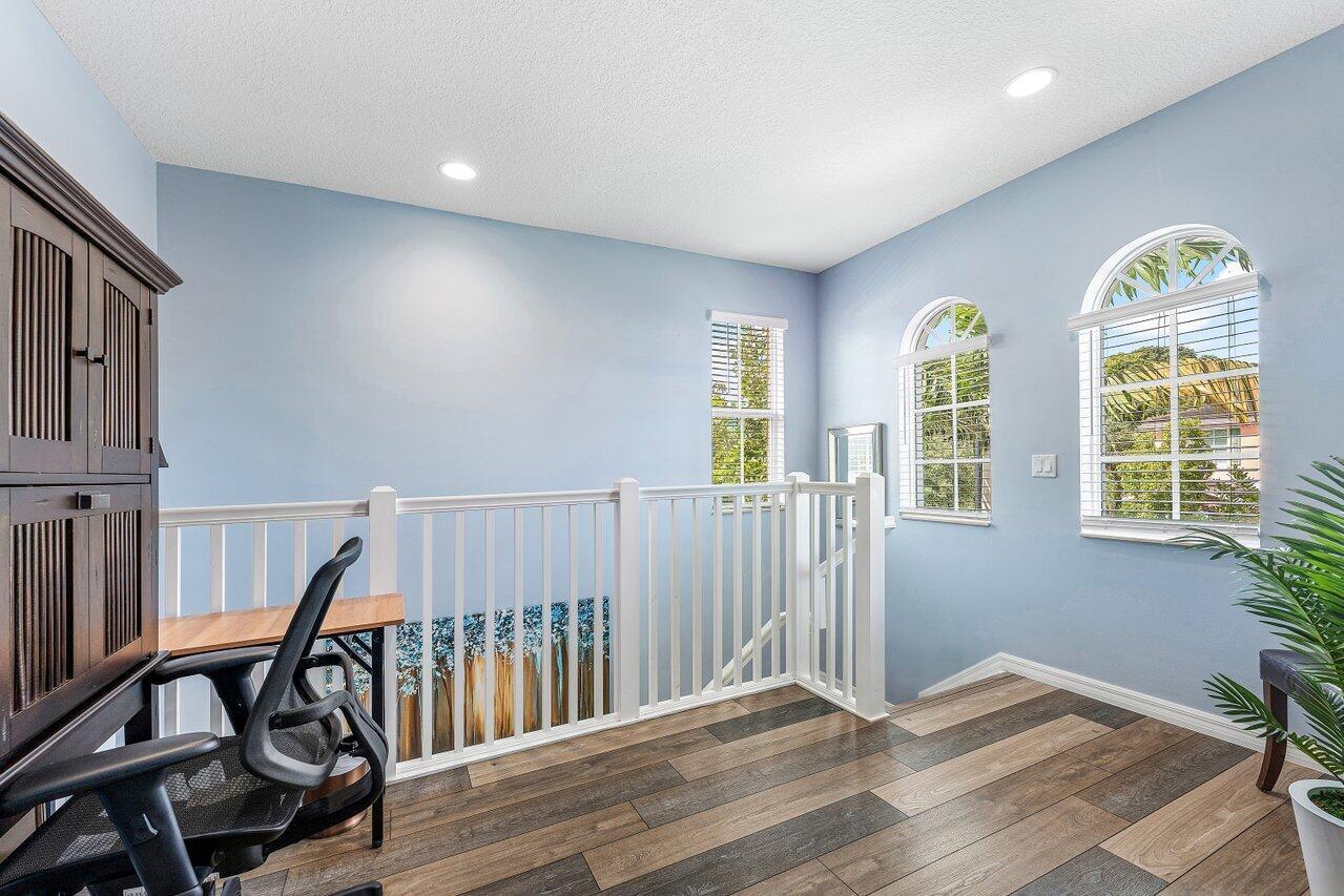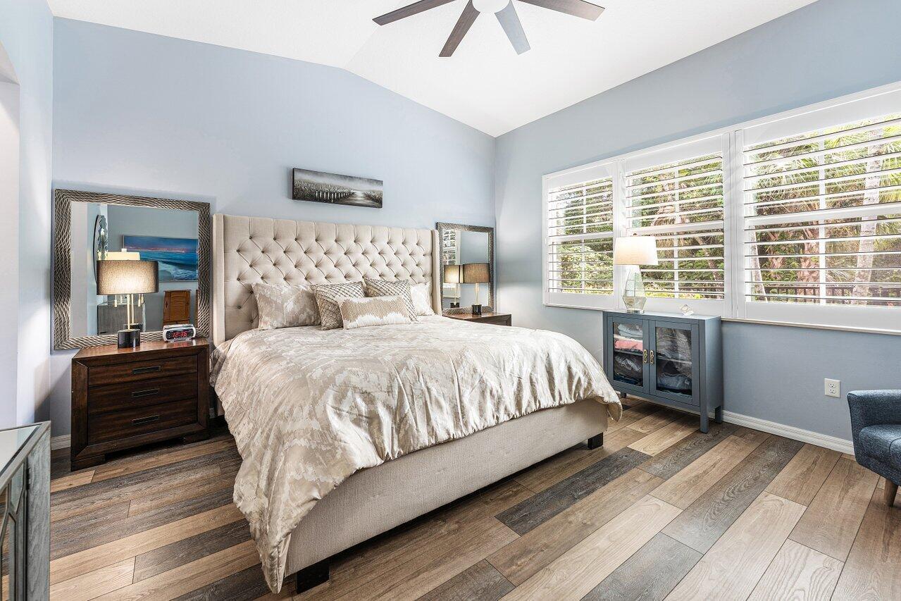 Stunning corner townhome in Trevi Isle with private preserve views located in the heart of Palm Beach Gardens! Enjoy luxury living in this beautifully upgraded end-unit townhome, perfectly positioned on a serene private preserve. This two-story, 3-bedroom, 2.5-bath home features a desirable first-floor primary suite and a versatile loft--ideal for a home office or media space.The open-concept layout showcases an upgraded kitchen with granite countertops, premium cabinetry, and GE stainless steel appliances, all overlooking a bright and inviting living area. Elegant porcelain tile laid on the diagonal spans the main living spaces, while the stairs, loft, and hallways feature stylish wood-look vinyl flooring for a modern touch.