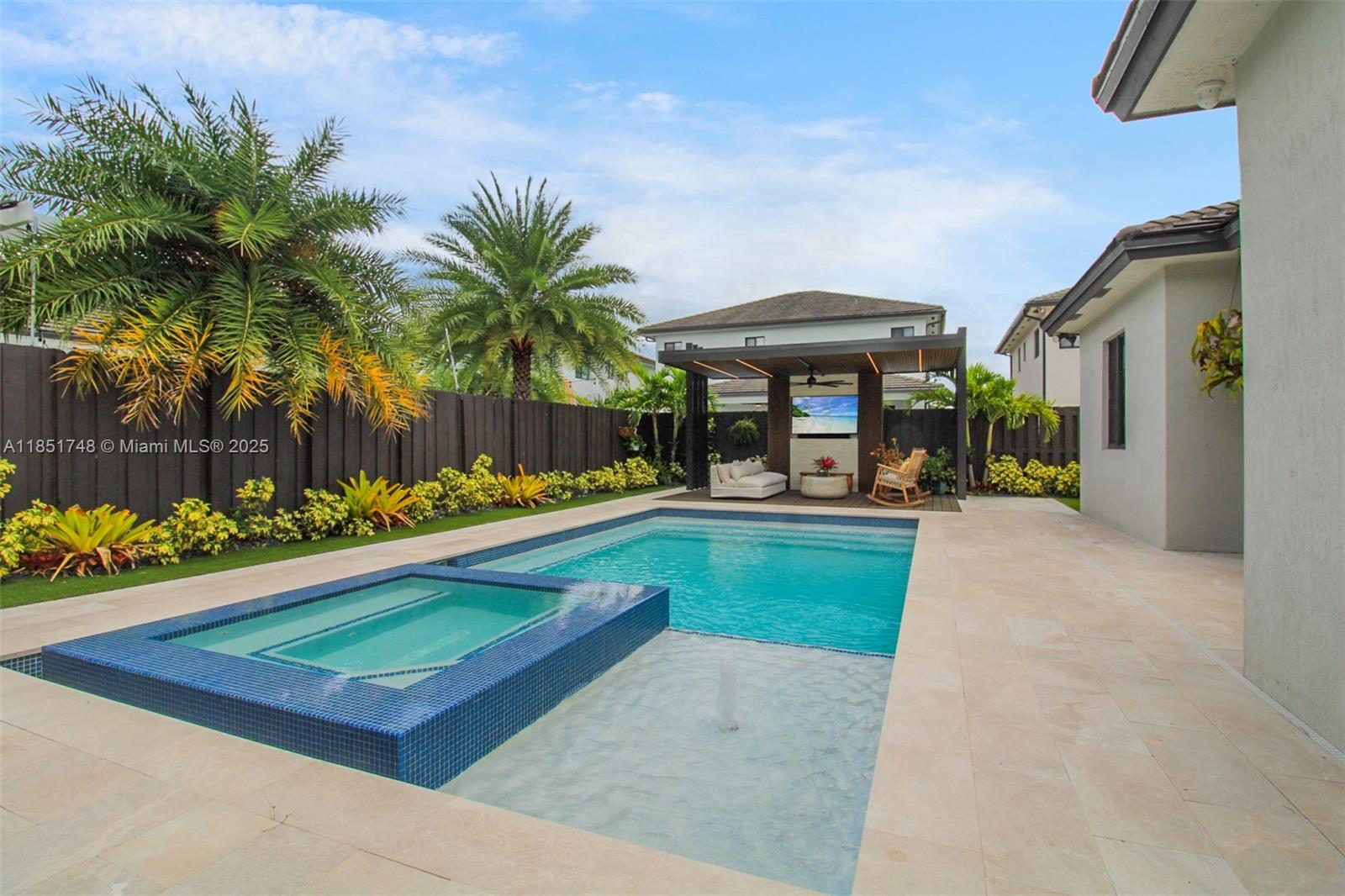 Most Beautiful 1 Story Property 5 Bedrooms, 3 Baths, 2 Car garage. Split Open floor plan Custom Built Home. 24 X 48 Tiles Throughout. 4 ft X 8 ft Bathroom Tiles, Impact Windows and Doors. Stainless Steel Appliances, Quartz Counter tops, 4 ft X 8 ft Kitchen Island, High Volume Ceilings, Covered Terrace with Concrete wall. Fenced Yard, Surveillance Cameras, Alarm. Backyard Has a New Pool With Infinity Jacuzzi. Cantilevered Aluminum Pergola Custom Design That Allows more unobstructed area to walk freely.. Pergola Comes with Led Lighting, Backdrop Dekton Marble Slab With Tv. Sonos Surround Sound System. Lot Size (55 X 140 7800 Sqft) 5 ft one side and 10 ft on the other side, Aluminum Gates. Room for Boat, Rv and Work Trailer. Won’t Last Must Come See… No Association!